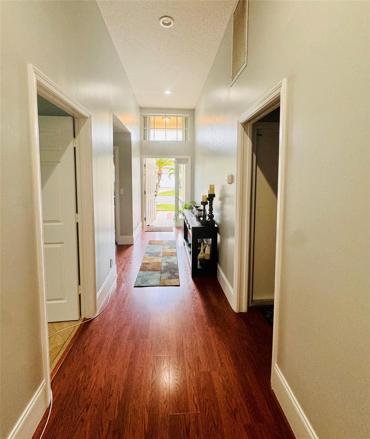 LOW HOA! Excellent home!! Guard gated neighborhood. 2017 Roof. 2019 AC. Open Design floor plan with vaulted ceilings. Foyer entry hallway that opens to kitchen and family room. Large master suite with beautiful master bath with travertine floor. Guest bath with travertine floor. Large screened and tiled back patio with a manicured back yard with peaceful lakeview and room for a pool. Tiled 2 car garage. Sprinkler system supplied from the lake. Permitted Accordion Shutters. Pet and kid friendly neighborhood. Near shops and schools.