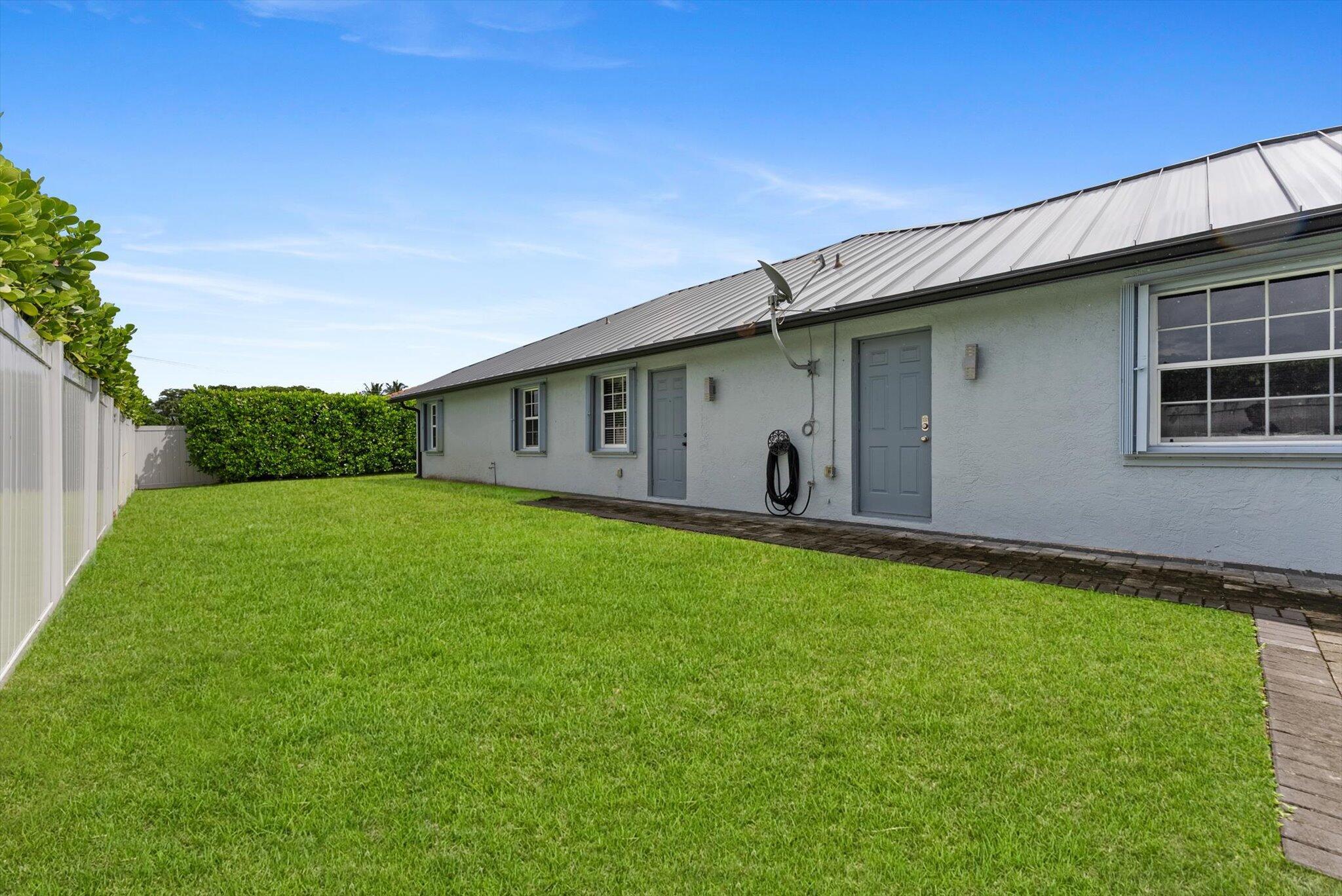 Claim your piece of paradise with this Wellington Charmer. No HOA. New Luxury Metal Roof in 2022. Renovated with 4 main bedrooms and 3.5 bathrooms + a bonus room/den with side entry door. The fully fenced-in backyard is a private oasis with mature clusia hedges, renovated stone pavered deck, crisp aqua blue pool, fully equipped custom patio bar. Large covered lanai with LED lights to brighten up your evening entertaining. 2 car garage with rubber flooring, and custom storage. Extended circular driveway the maximize guest parking spots. Open split floor plan. Offering an open kitchen to the family room and a formal living room connected to a formal dining room. Accordion storm shutters. Private corner lot with spacious back & side yard.