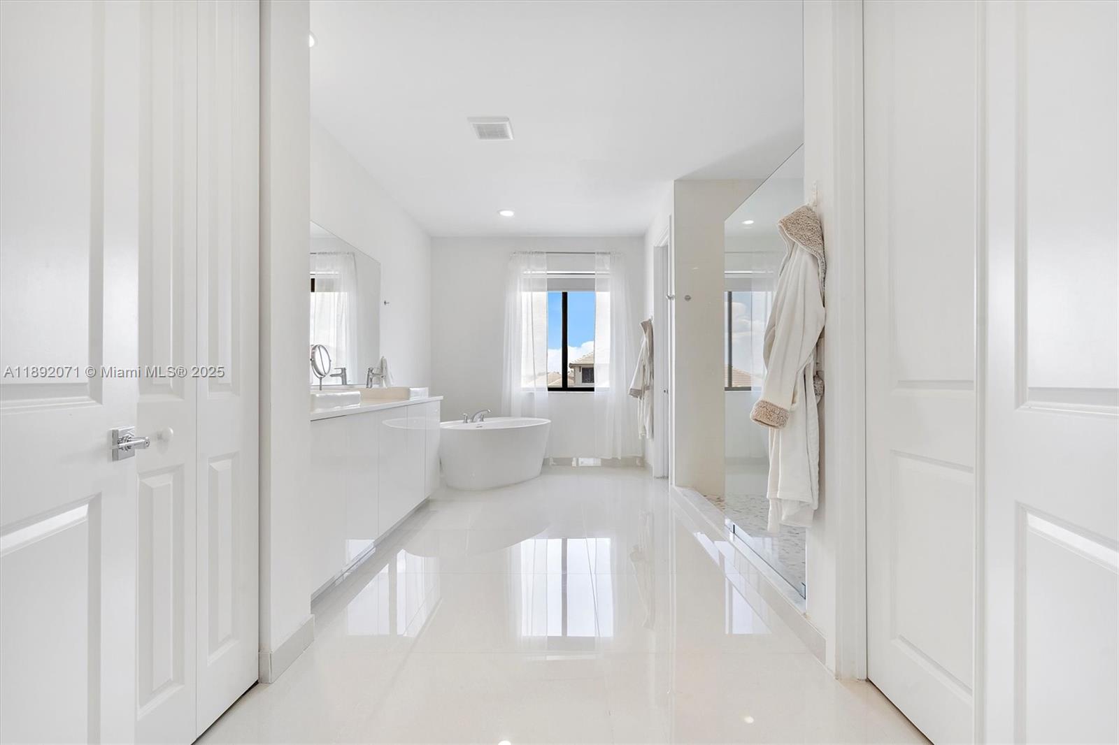 Step into refined living at this stunning home in the gated Marbella Miramar community. With over 4,000 sq ft, this two-story gem boasts porcelain tile downstairs and laminate upstairs. The kitchen shines with granite counters, stainless steel appliances, and a big pantry. A downstairs room with a private bathroom-now a gym-could be a bedroom or office. The primary suite upstairs offers a huge walk-in closet and a luxe bathroom with dual vanities, a soaking tub, and a separate shower. Two more bedrooms and bathrooms (all with showers, no tubs) complete the upper level, plus an open office space that can become a spacious bedroom. Outside, enjoy a marble facade, modern lights, a 3-car garage with polyurea flooring, an 8-car driveway, and video security. Visit to see its unmatched upgrades!