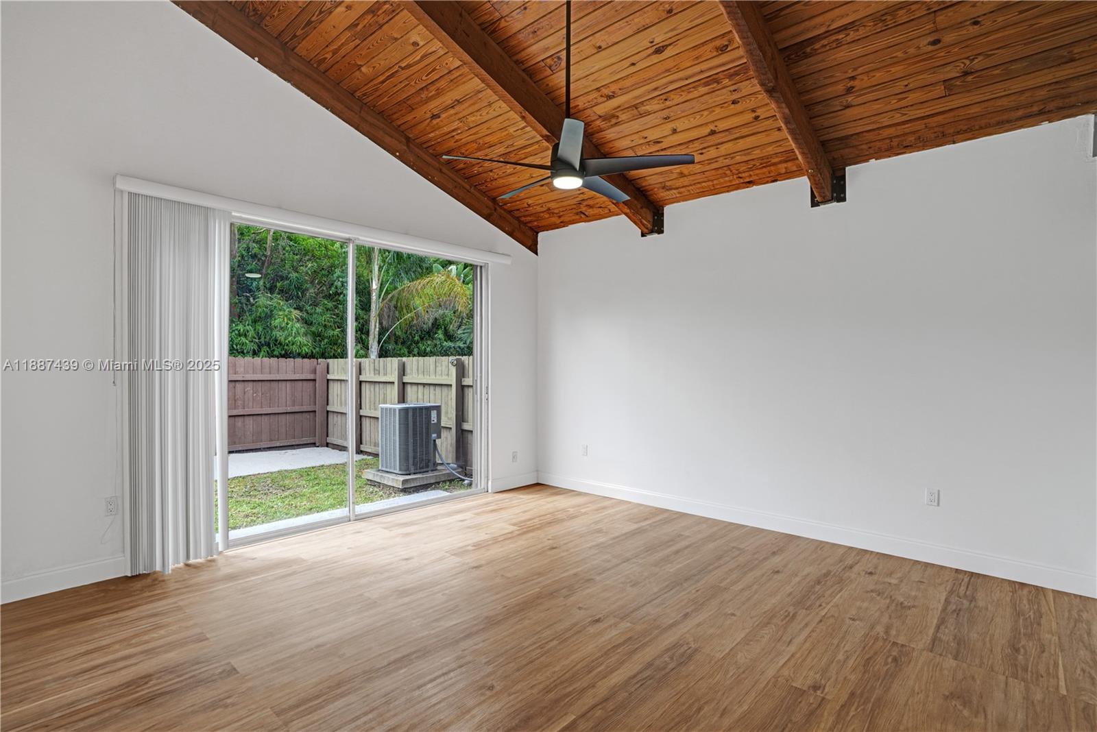 Inviting 2BR/2BA Villa in desirable Pinetree Village/Killian Pines offers 1,080 SF of bright living space with soaring 14-ft vaulted wood-beam ceilings that create a warm ambiance. The open layout connects seamlessly to a private fenced yard & patio, perfect for outdoor living and entertaining. The spacious primary suite features vaulted ceilings, an en-suite bath & walk-in closet. Gas appliances (range, dryer, and water heater) add efficiency, while the 2020 roof and water heater provide peace of mind. Enjoy two parking spaces plus guest parking. Pinetree Village offers a tranquil atmosphere, mature tree-lined streets, just 151 homes, and low HOA fees with no association approval required! Ideally located near US-1, Dadeland Mall, The Falls, Baptist Hospital, top schools, dining & parks
