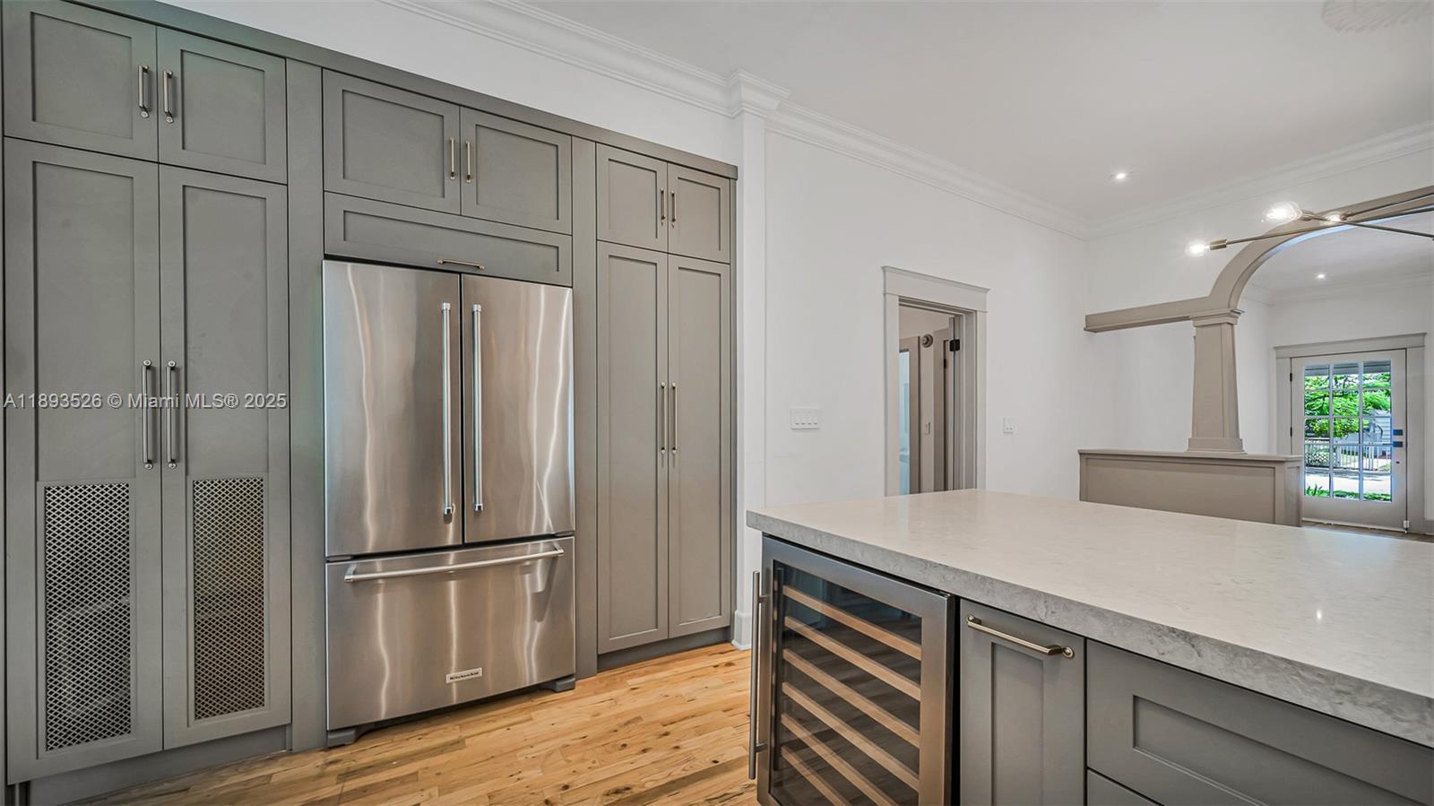 Beautifully remodeled 1920s Miami bungalow in the heart of Buena Vista, just steps from the Design District. This detached single-family home blends timeless charm with modern updates, featuring original refinished hardwood floors, elegant archways, and a statement fireplace. A light-filled kitchen with custom cabinetry and brass lighting flows to a private tropical deck surrounded by lush landscaping. The home offers three bedrooms plus a finished attic—ideal for an office, yoga loft, or guest retreat. Enjoy gated off-street parking and expansion potential on a 5,750 sq ft interior lot. A rare opportunity to own a character-filled residence minutes from Wynwood, Midtown, and Biscayne Bay.