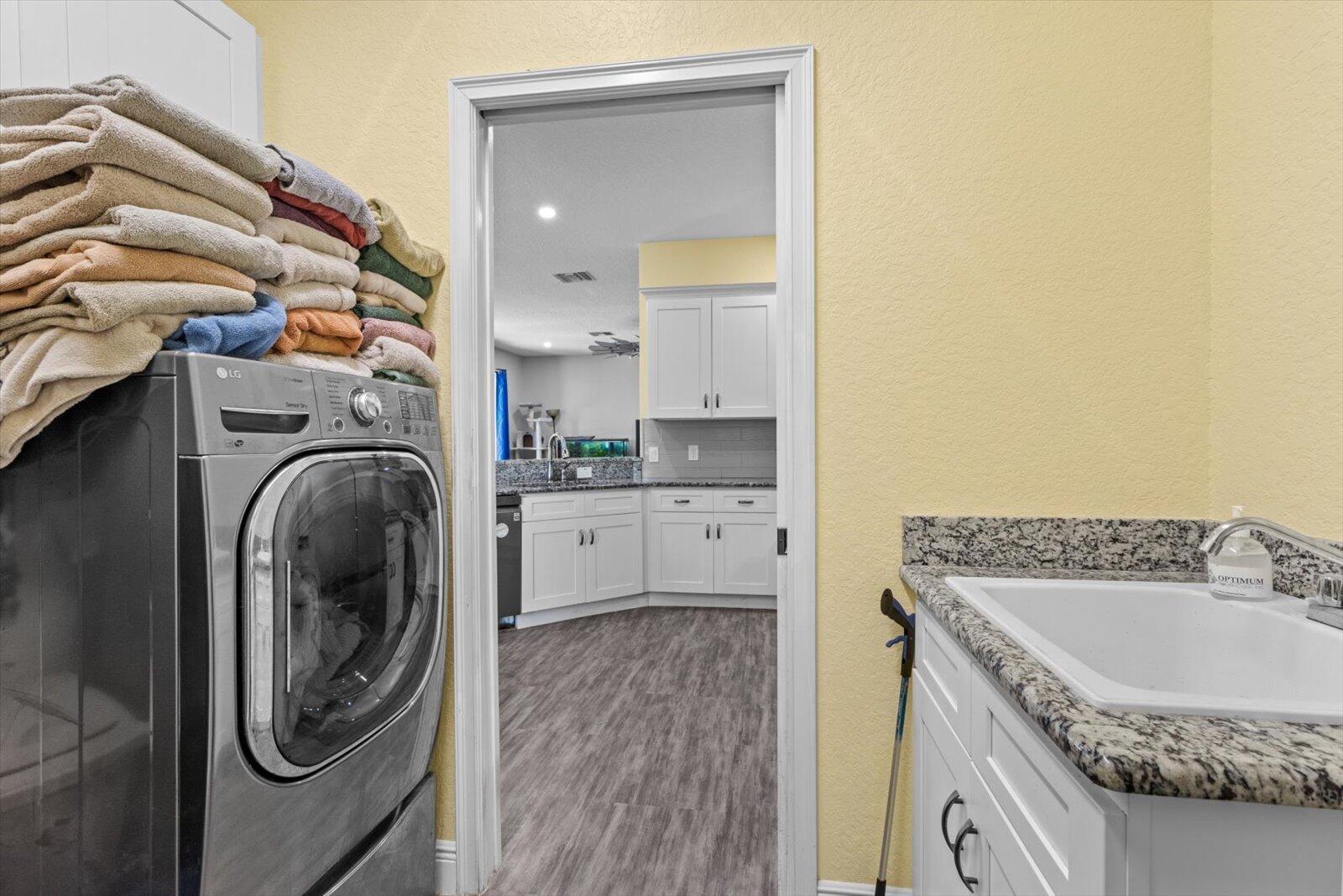 Price REDUCED! Wait till you see this beautiful elevated home on the water with a gorgeous pool! Immaculate 3,000+ sq ft waterfront property, offering modern luxury in an unbeatable location in the sought-after community of Riverhaven Village. This home features a versatile secondary living suite complete with a private bedroom, comfortable sitting area, full bathroom, and generous walk-in closets. This flexible space is ideal as a guest suite, hosting extended family, accommodating multi-generational living arrangements or creating the perfect work-from-home retreat for today's remote professionals. The open floor plan enhances the flow of natural light, with sliding doors from multiple rooms that open out to a screened-in pool and spillover spa -