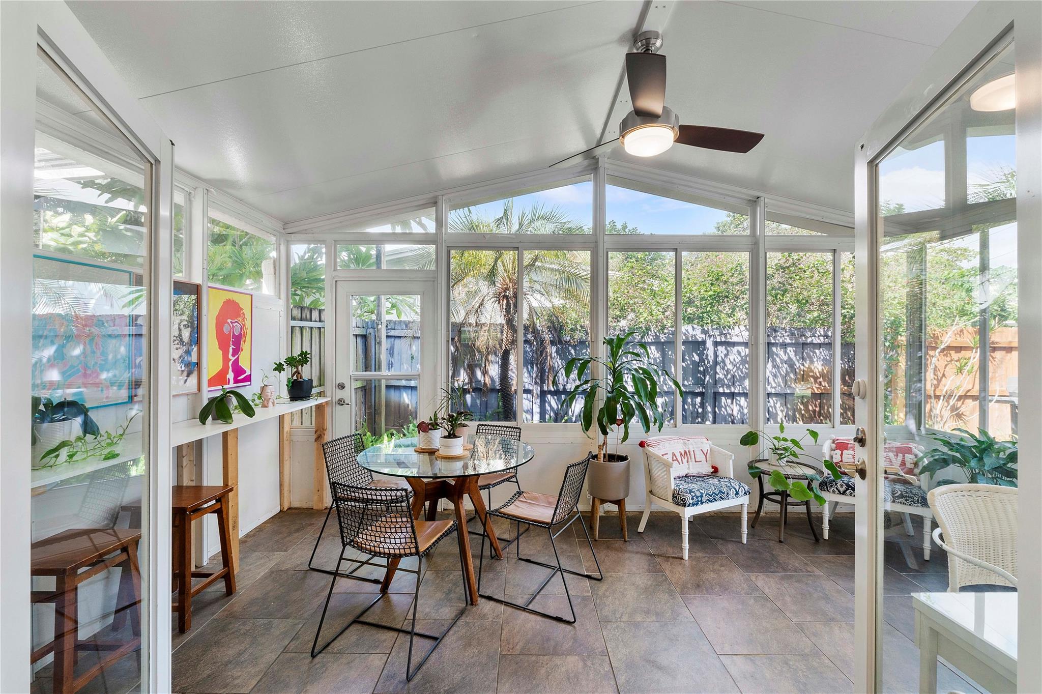 Charming 2-Bed, 2-Bath single family home in Oakland Park that lives like a 1,400 sq ft house! * EASILY CONVERTS to 3 BEDS * AirBnB ready, NEW ROOF, & NO HOA. Just 9 minutes to the beach. Fully enclosed bright sunroom with air-conditioning adds over 200sq ft of living space! Private entrance for 2nd BR = great for AirBNB, or as in-law suite, guest room, or kids retreat. Brand new roof w/ transferable 20-yr warranty for long-lasting peace of mind. Impact windows thru-out main home. Spacious yard with room for pool. Freshly painted inside/out. Walking distance to magnet schools & brand-new community center. Enjoy morning coffee on your screened front porch, entertain in the enclosed sunroom, or stroll to community center for recreation/activities. Lots of nearby shopping/dining/activities.