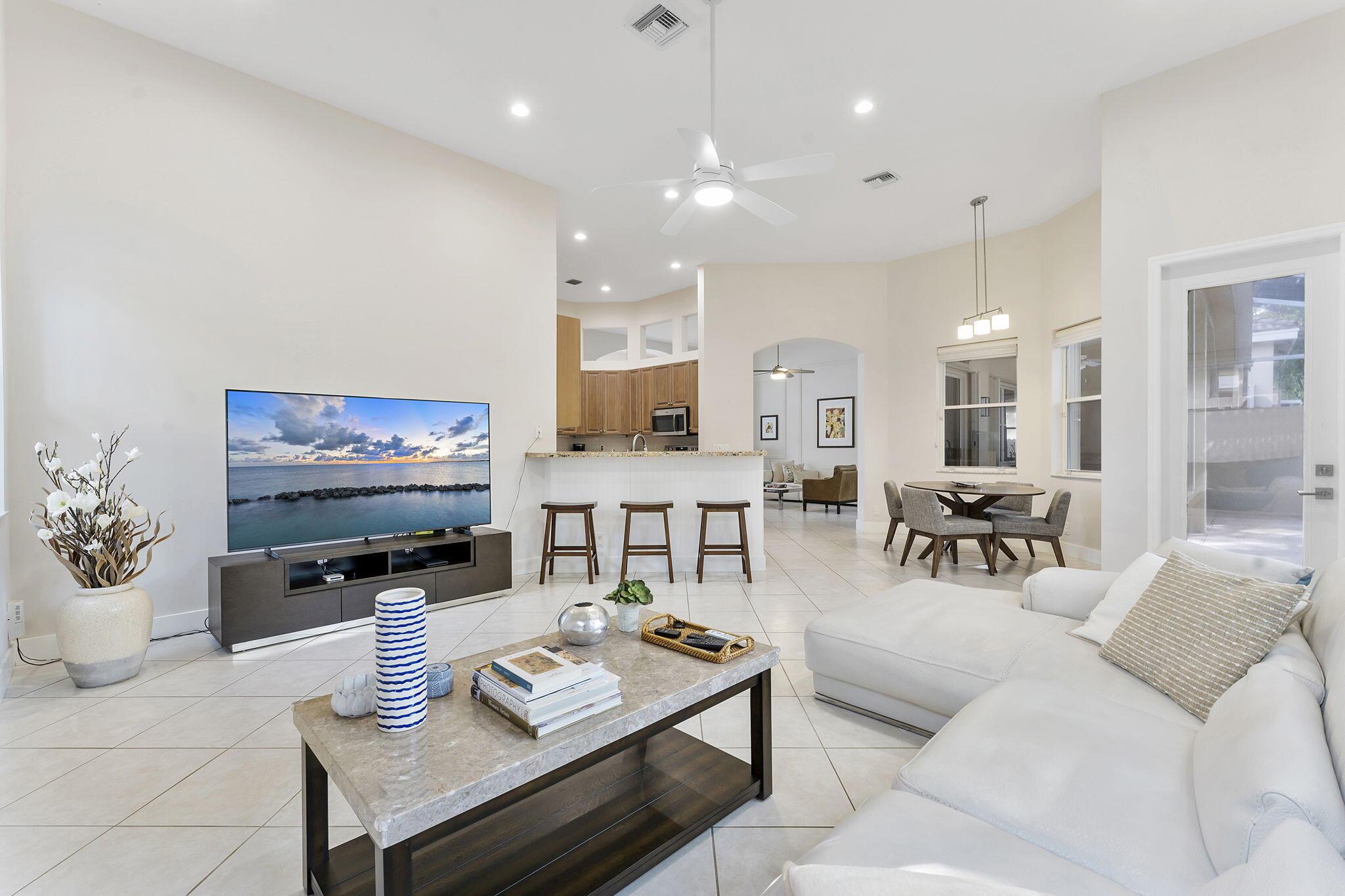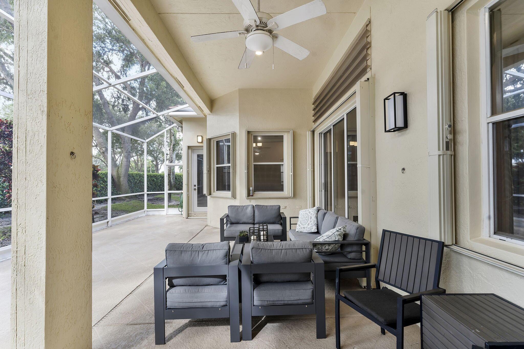 Welcome to the largest model in the community. This home is immaculate and well taken care of. It features a den/office as the 3rd bedroom. It's a perfect work space or an extra room or to host guests. The home also features a Nest thermostat. The large screened patio offers privacy and serenity to have your morning coffee or enjoy the company of friends and family. Villa Borghese is an active 55+ community with a 24/7 manned guard gated. Monthly HOA fee includes AT&T Direct TV plus internet, landline, monitored ADT home security system, lawn maintenance, pressure wash roof and driveway. The community offers a beautiful and active clubhouse, full-time on-site management, a resort style pool, fitness center, billiards, library, bocce, pickleball and tennis courts.