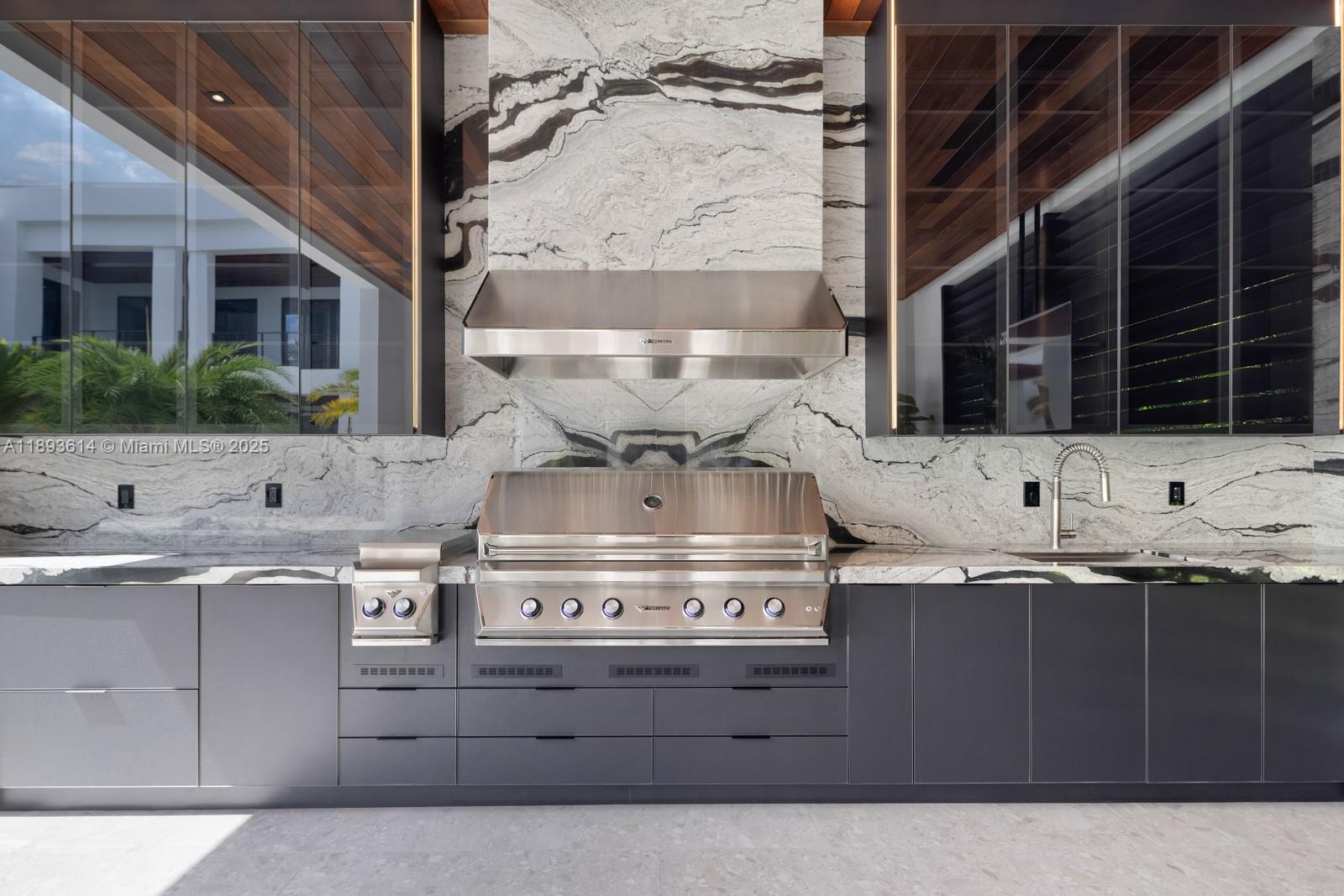 A statement of modern architecture & artistry, this 2025 estate reimagines luxury living on over an acre of resort-caliber grounds. Spanning 12,000+ sq ft, including a 1,000 sq ft guest home, every inch reflects uncompromising design & craftsmanship. Soaring 28 ft ceilings, custom murals, a floating glass staircase, private elevator, & showpiece fireplace define its elegance & scale. The chef’s kitchen, Lutron automation, & full smart-home integration blend innovation with comfort. 14 ft high garage bays fit multiple lifts. The primary wing unveils a private terrace & custom closets. Outdoors rival a five-star resort with a full summer kitchen, covered pavilions, poolside lounge, & expansive grounds ideal for courts or gardens. A true jewel—extraordinary, extravagant, & undeniably refined.