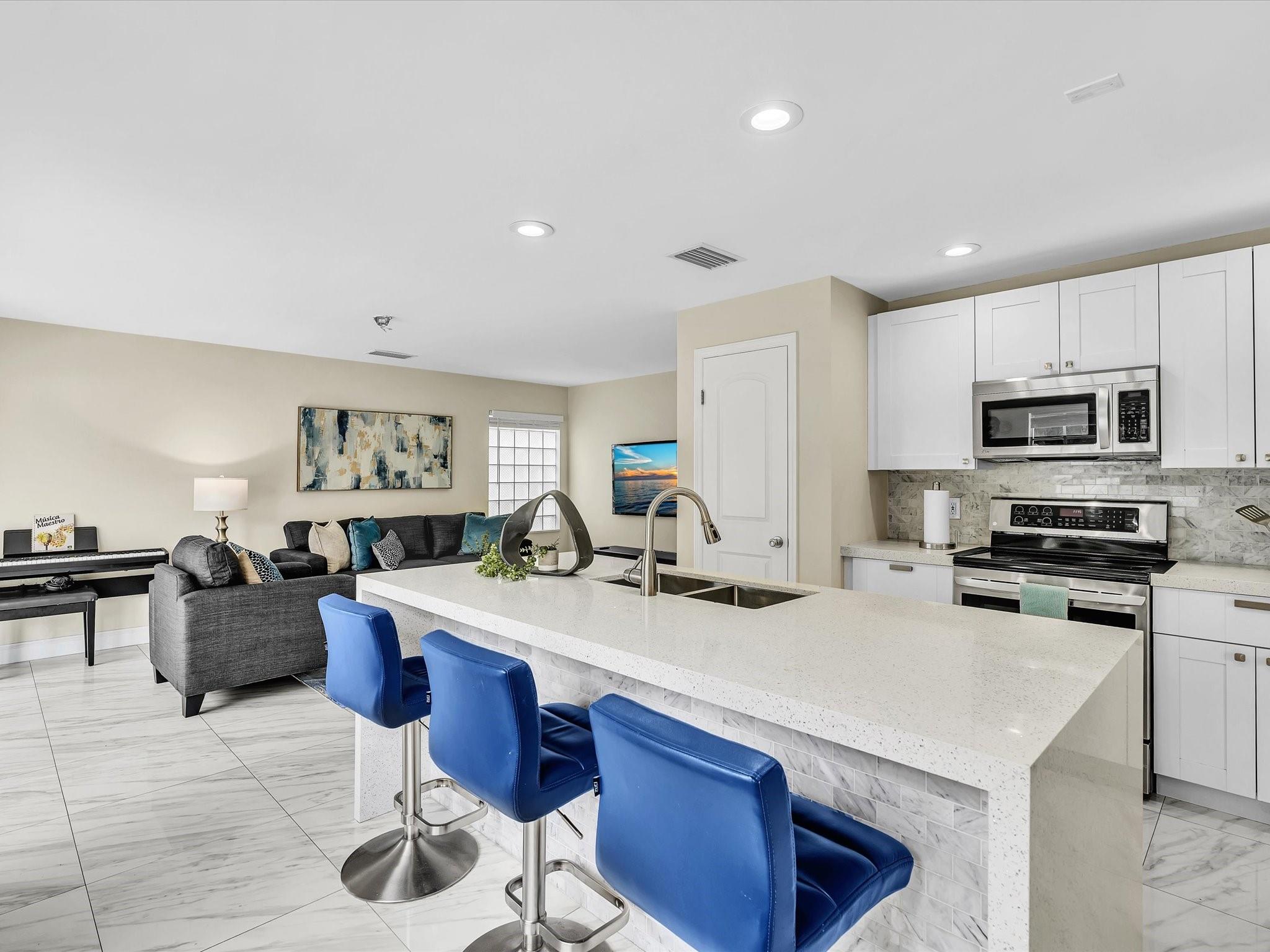 New 2025 roof! Nestled on a quiet cul-de-sac street this pool home offers one of Weston’s largest 3 bedroom floorplans w/ generous front & backyards - perfect for entertaining. Freshly painted interior/exterior, filled w/ natural light & a breathtaking two-story vaulted ceiling. Beautifully remodeled kitchen (2020) features wood cabinetry, large quartz island, ss appliances, and adjacent family room—ideal for gatherings. Enjoy ultimate privacy in the backyard oasis, complete w/ sleek modern pool (2020), PVC fencing, and ample space to relax or entertain. Additional upgrades include an 2019 A/C unit and a 2025 water heater. Laundry room converted to an office. Located minutes from parks, shopping, top-rated schools, pickleball and I-75, this home blends comfort, style, & location all in one