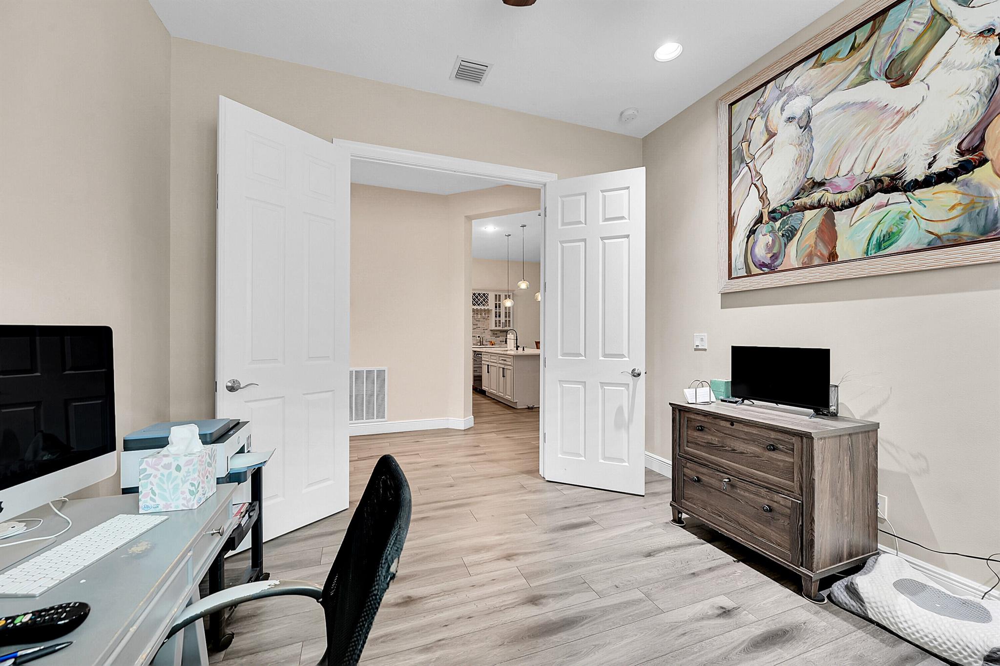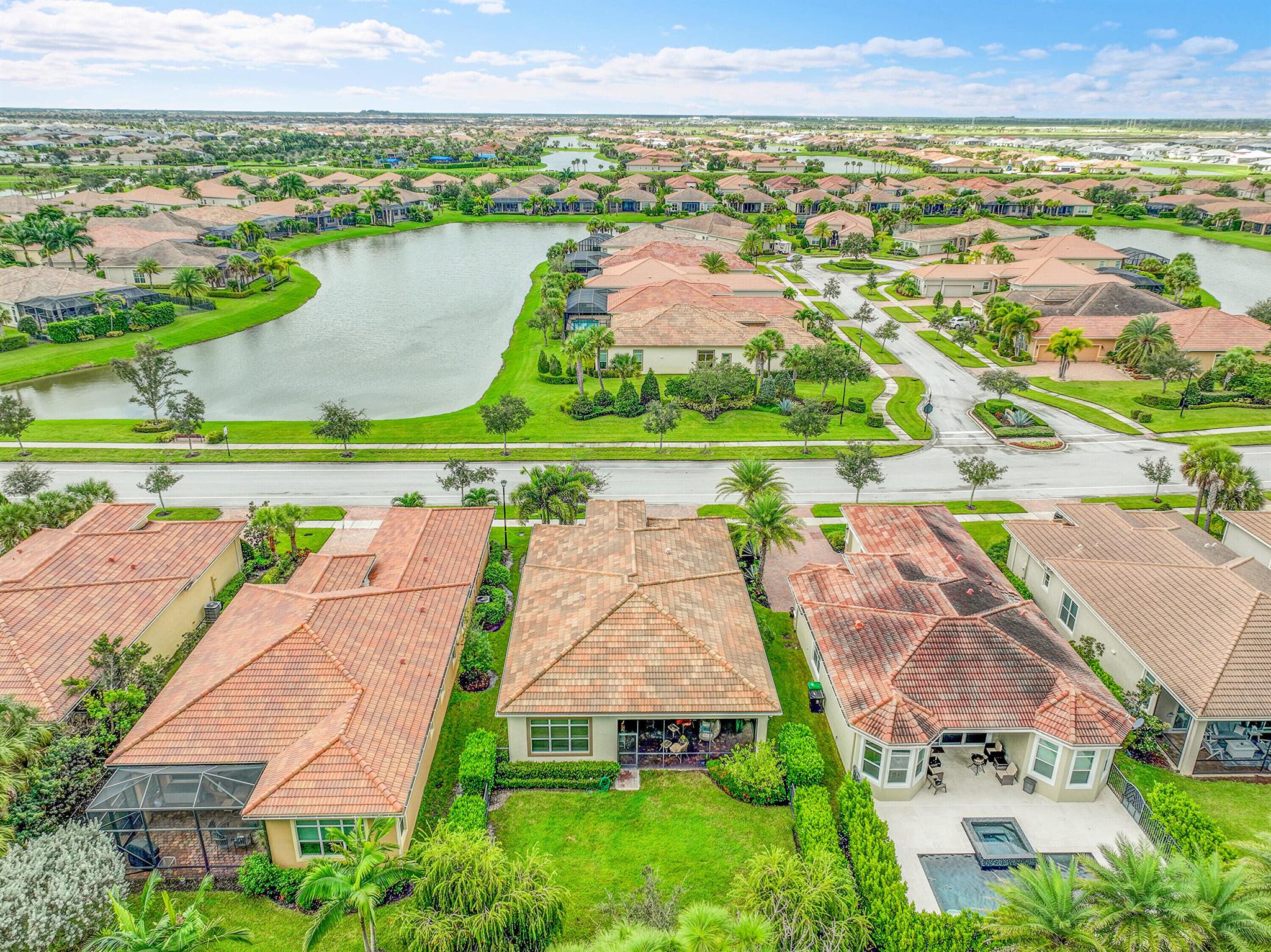 This sought-after Lago plan offers an exceptional open-concept design. Situated in the f PGA Verano community, this neighborhood offers tranquilty a coziness not found on other neighborhoods. A lush hedge separates this home from the PGA Golf Course, which is available to the owner's of this homeThe layout features a spacious owner's suite with a large master bedroom and a functional den, conveniently located immediately off the foyer. Culinary enthusiasts will appreciate the pantry and the separate laundry room. The expansive living space flows seamlessly into a lovely screened-in patio at the rear of the house, where you can relax and enjoy the serene and private backyard setting. This home is an ideal blend of luxury, privacy, and convenience.