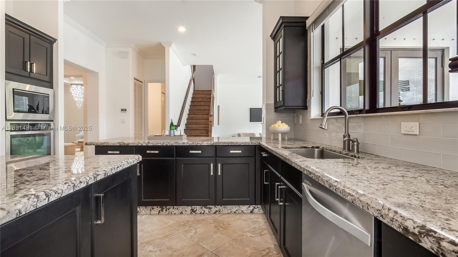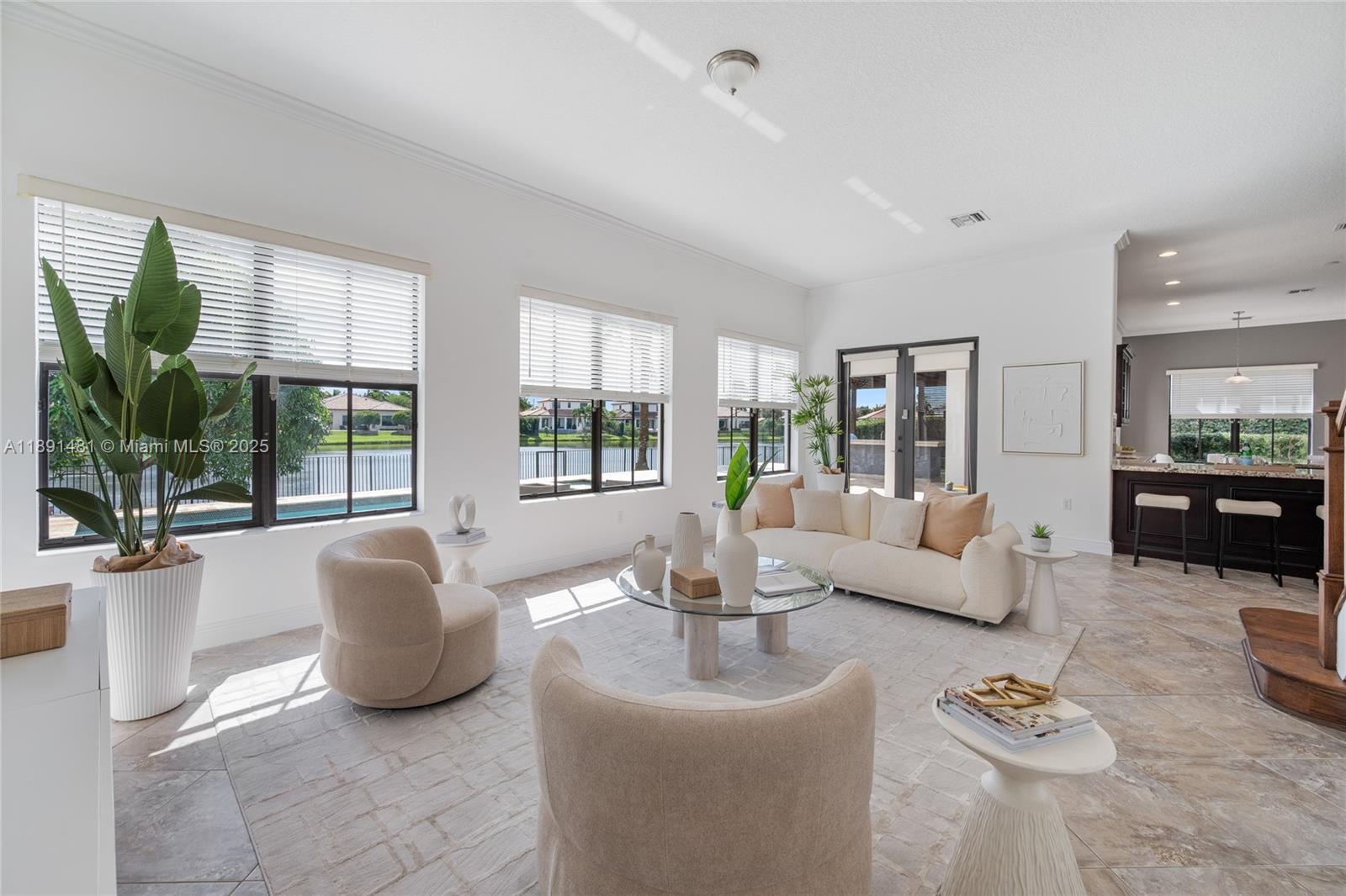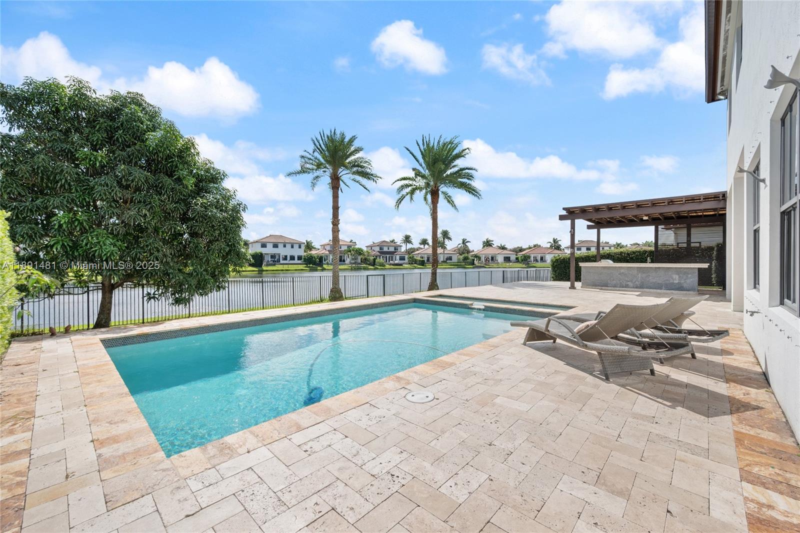 Experience luxury living in this gorgeous lakefront residence located in the prestigious gated community of Monterra. This elegant home features 5 bedrooms, 5.5 baths, and a versatile additional room in the converted garage, ideal for a gym or studio.The outdoor area offers the ultimate private resort, with a pergola, summer kitchen, contemporary saltwater pool, spa, and breathtaking lake views. The gourmet kitchen includes a center island and double ovens. The expansive primary suite showcases an extra-large custom walk-in closet and a spa-inspired bathroom. All bedrooms feature custom-designed walk-in closets. Impact glass on second-floor windows.Freshly painted interior.Resort-style amenities: clubhouse, pool, fitness center, basketball, tennis, dog park. A+rated schools. Move-in ready!