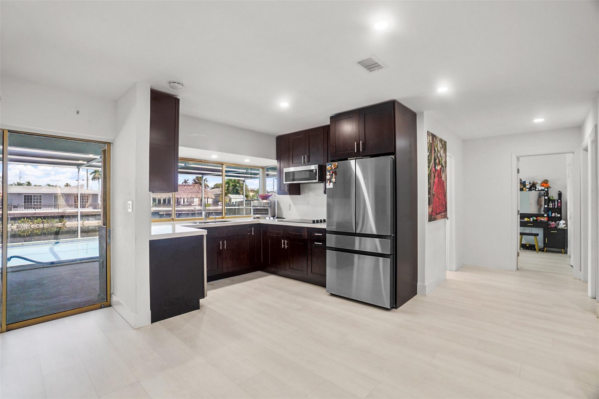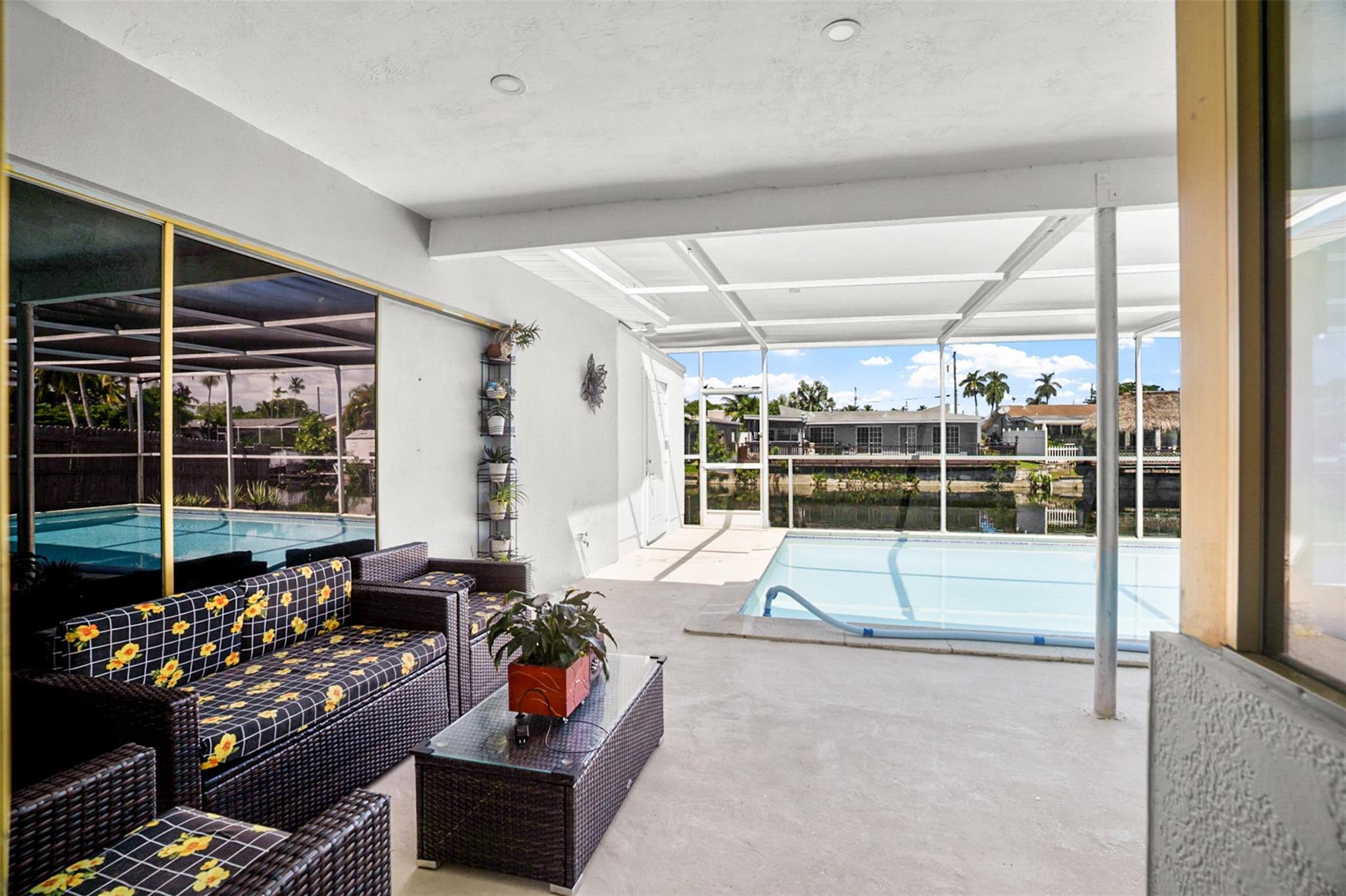 Fully remodeled pool home with water view. No expense has been spared. Roof is 5 years old, tankless water heater,new washer/dryer. New driveway and artificial turf throughout exterior. New pool pump and new windows. New kitchen and bathrooms. New electrical panel with breakers. Home can be used as a 4 bedroom or you can rent out the opposite side of the home as a 1 or 2 bedroom apartment. Seller offering up to $2000 credit toward buyer closing costs if buyer uses sellers preferred lender. Buyer is not required to use the preferred lender to purchase the property.