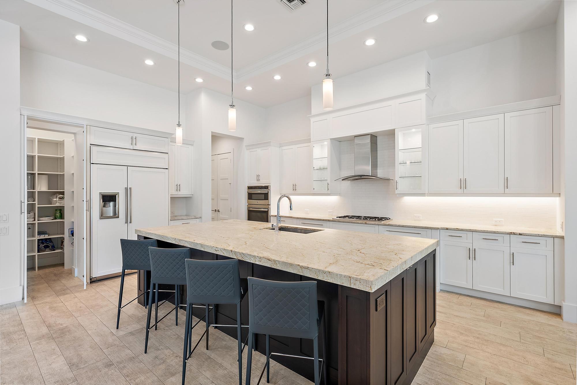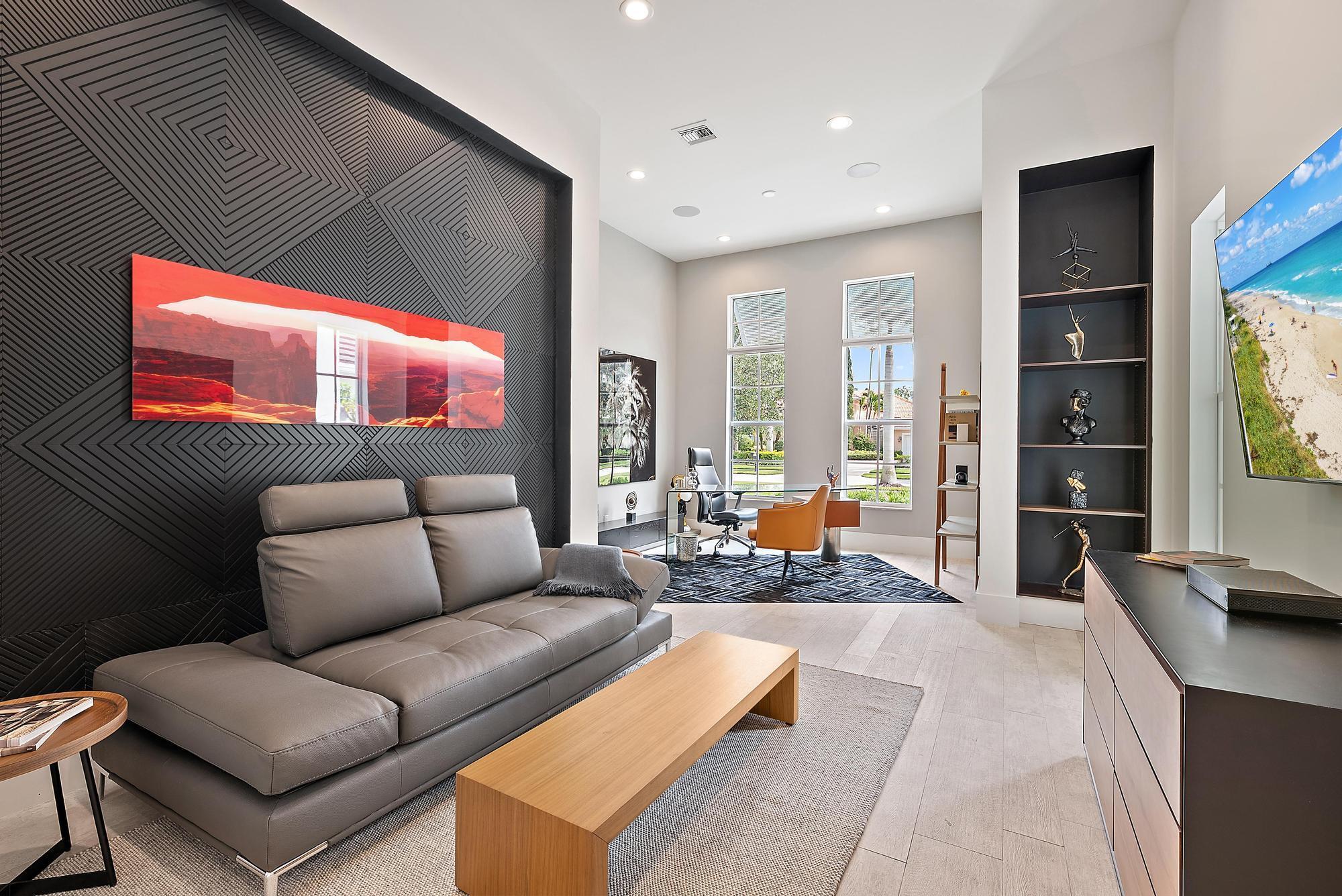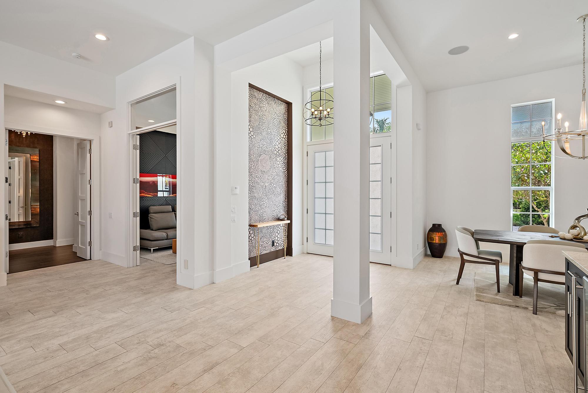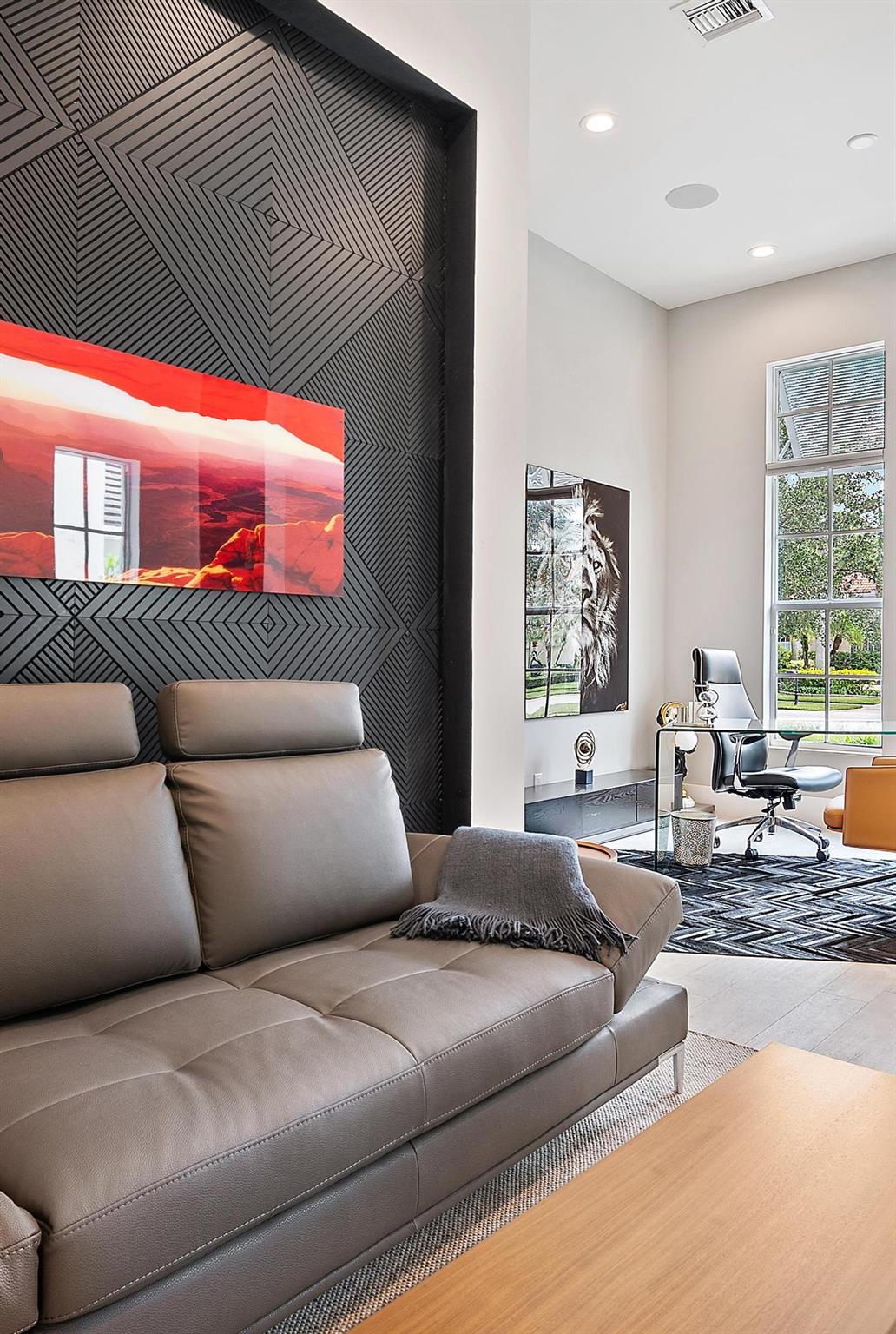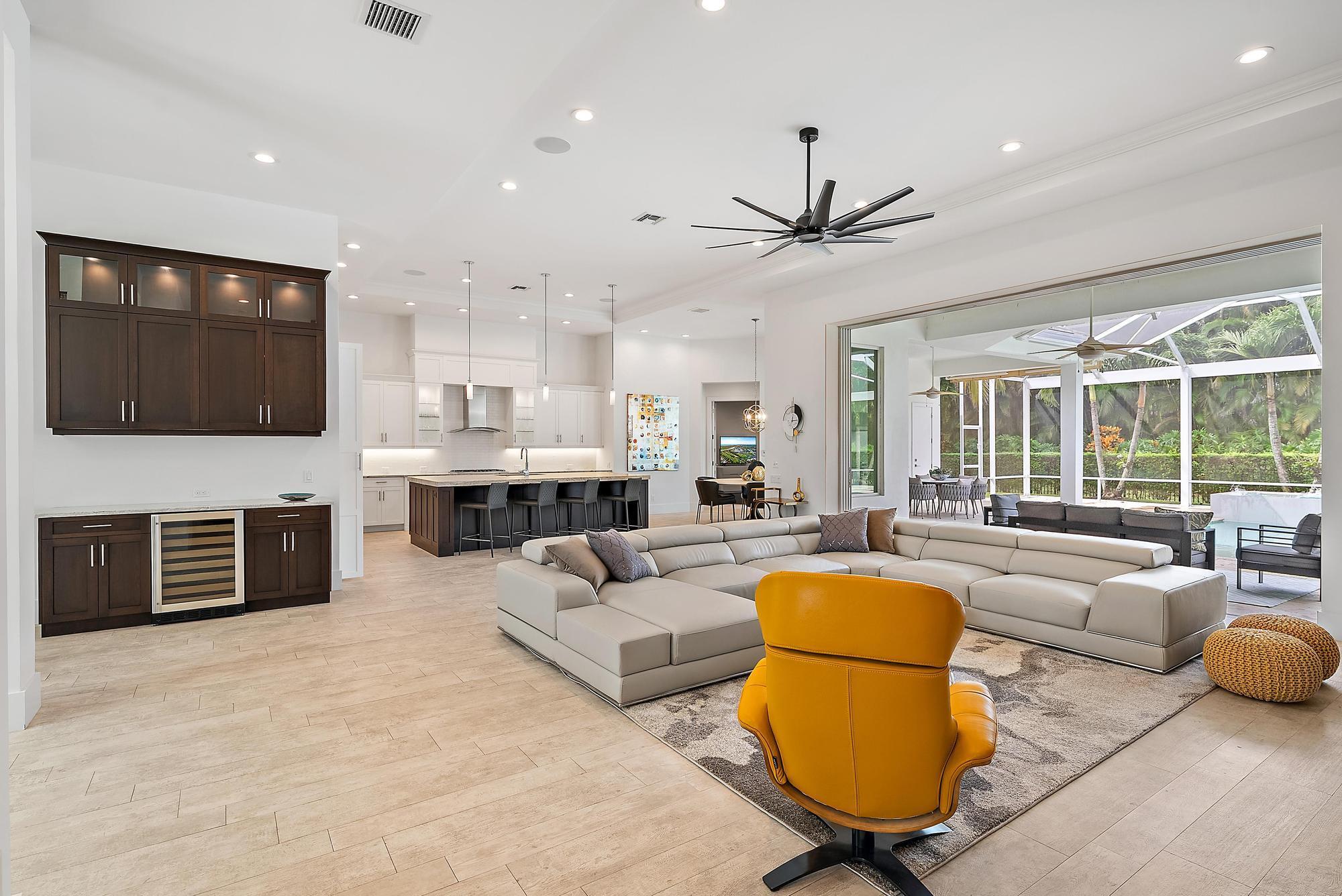 Built in 2015 and offering one of the newest constructions in Ibis, this custom Puzzitiello Estate blends modern sophistication with effortless Florida living. Completely elevated by Nevaeh Interiors, this showplace has been enhanced with new upscale finishes, flooring, and features. Also available completely furnished, all the modern and comfortable designer pieces can convey to the new owner--a brilliant mix of Modani Italian Modern and Arhaus Classic Flare Furniture. Designed around a dramatic great-room floor plan, this 4BR/4.5BA plus large office/den home delivers privacy, style, and a true turnkey experience within the award-winning Club at Ibis.