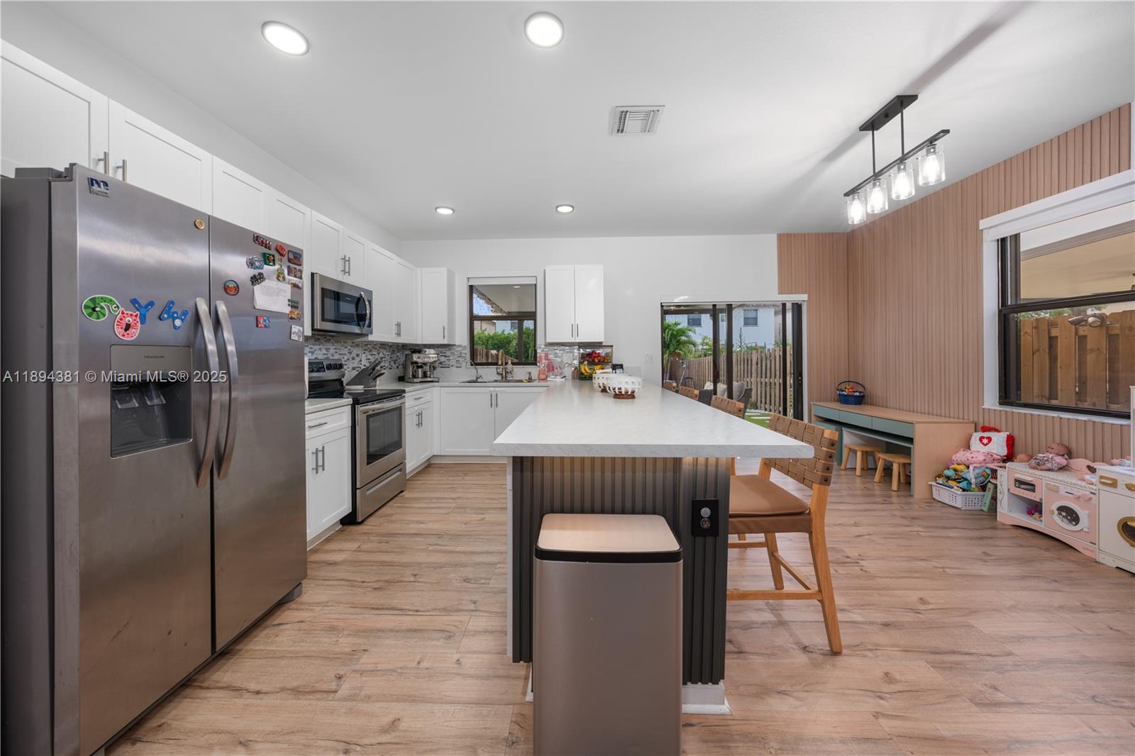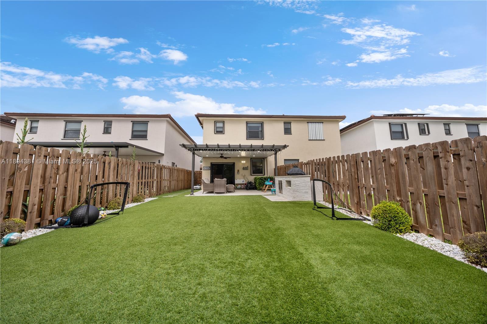 Welcome to this beautiful & well-maintained 3-bedroom, 3-bathroom home that truly has it all! From the moment you arrive, you’ll notice the care and upgrades throughout. The home features accordion shutters for peace of mind, gutters & custom closets in every bedroom. Enjoy clean, refreshing water with the alkaline water filtration system that services the entire house. Both floors have stylish laminate flooring that gives the home a warm and modern feel. The spacious master bathroom has been fully remodeled. Step outside to a stunning backyard that’s perfect for relaxing or entertaining-featuring a beautiful pergola, artificial grass for easy maintenance, & a custom-built grill area ready for weekend barbecues. The private garage also includes a built-in closet for extra storage space.