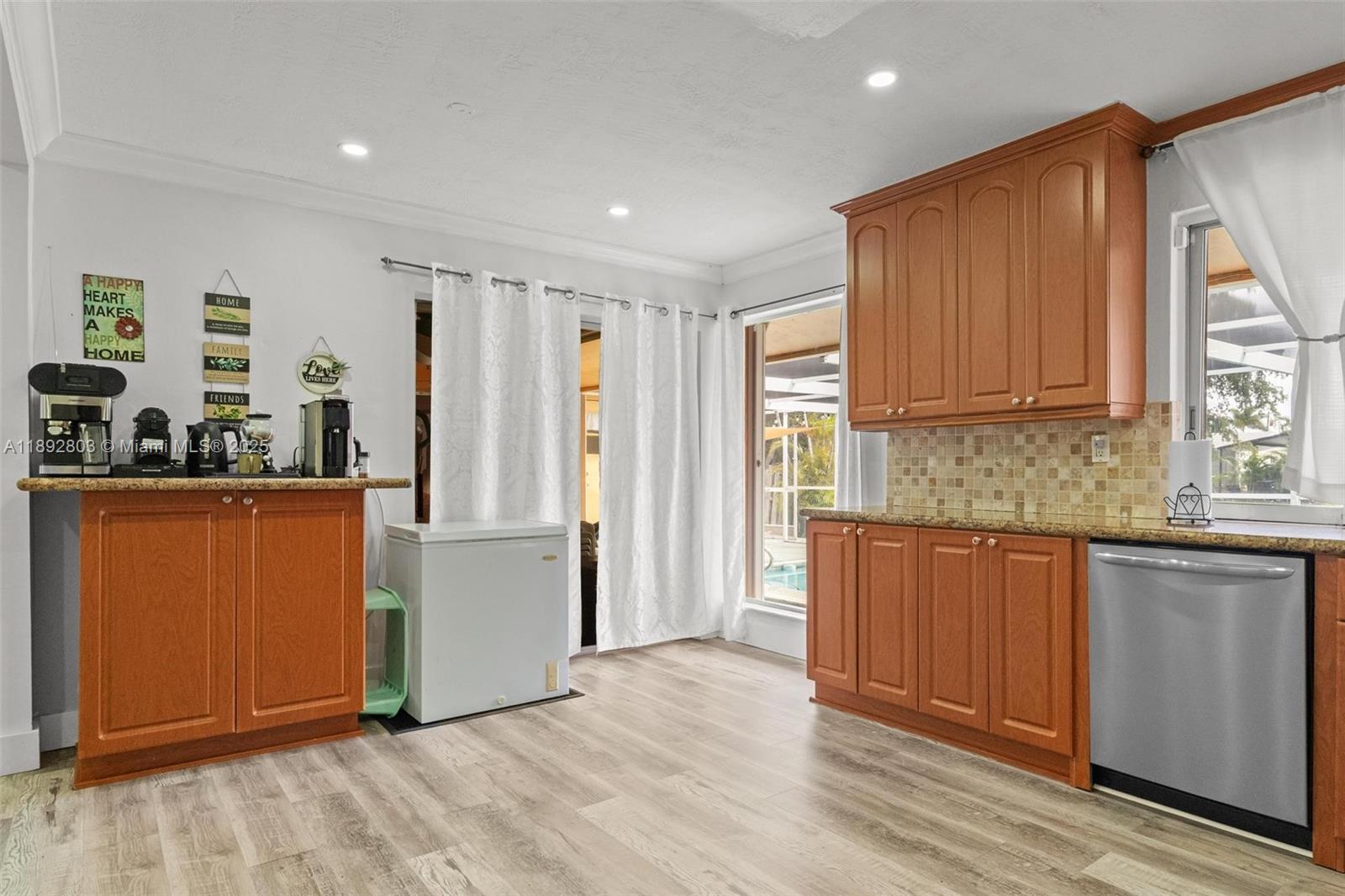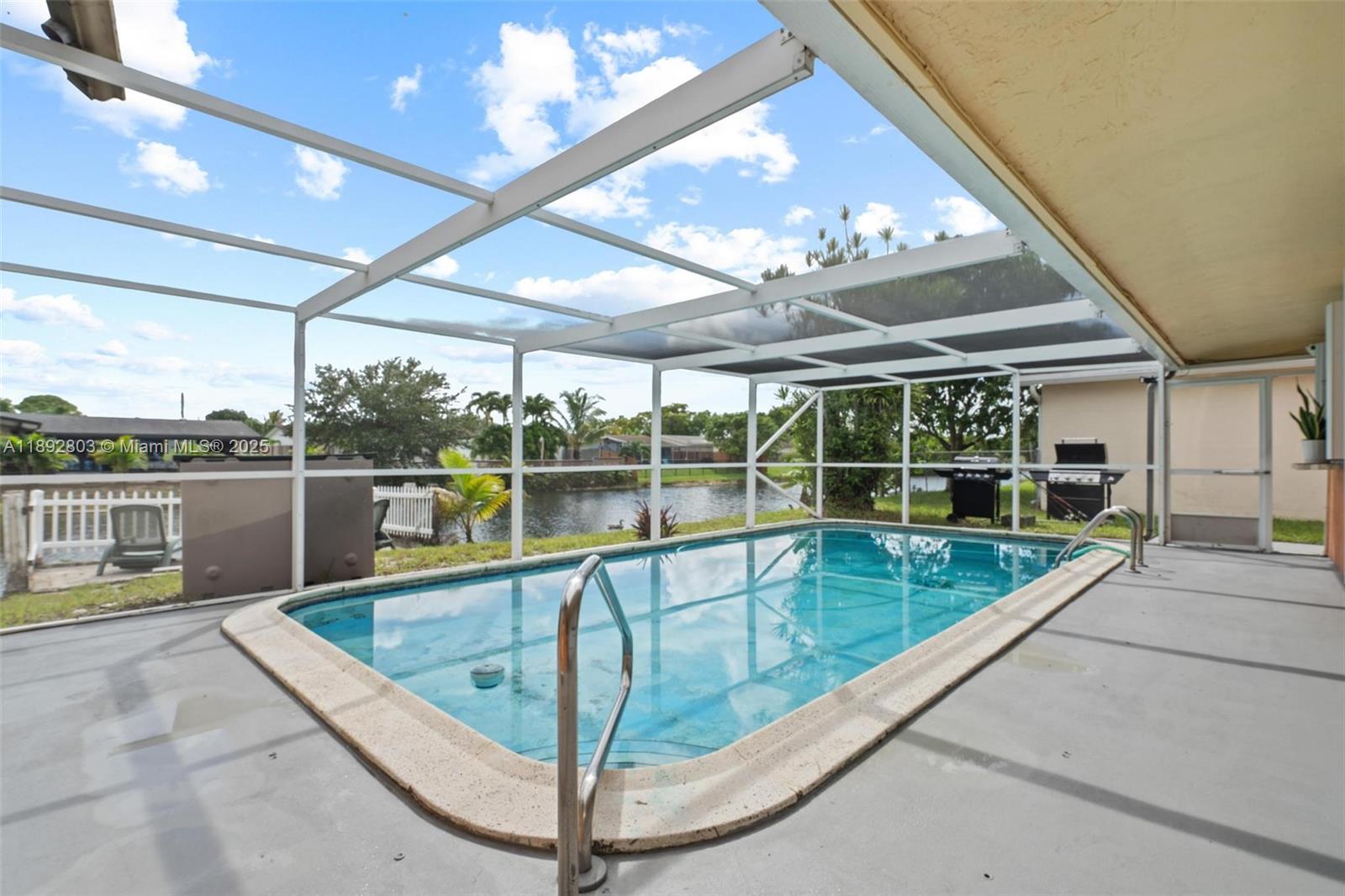 Welcome to your waterfront oasis in Sunrise Golf Village! This beautifully maintained 3-bedroom, 2-bath single-family home offers nearly 2,000 sq ft of living space and sits on a 6,900 sq ft canal-front lot with NO HOA. Enjoy Florida living with a private pool, spacious deck & patio ...perfect for entertaining or relaxing by the water. Interior features include a bright, open layout with ceramic tile flooring throughout, updated kitchen appliances, and a converted garage for extra living space, GAME ROOM, OFFICE or for ypur lovely guest .Accordion shutters ,Located in a quiet neighborhood with a circular driveway, Just a minutes from schools, parks, shopping, and dining. Newer roof, A/C, floor and water heater offer peace of mind. OK to lease . the potencial of this house is unbeliavable.