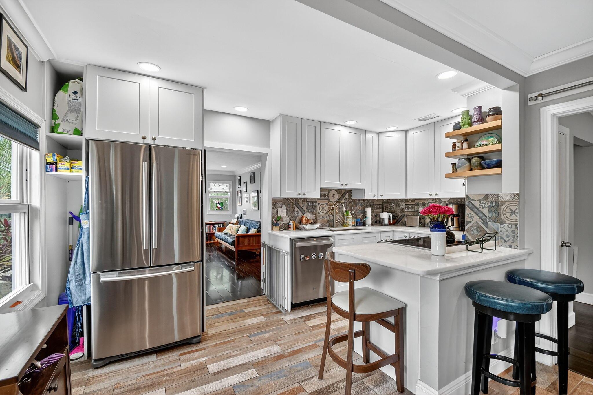 Step back in time with modern comforts! This stunning bungalow home is nestled in the heart of Flamingo Park, one of West Palm Beach's most coveted historic districts. This 2-bedroom, 2-bathroom home masterfully blends historic charm with high-end updates.Enjoy the security of full impact window and door protection, and completely renovated kitchens and bathrooms. The kitchen boasts stainless steel appliances and granite countertops, while the interiors feature charming shiplap ceilings. The property includes a long driveway for extra parking, a fully fenced yard for your furry friends and a detached garage that is perfect for conversion into an accessory dwelling unit or additional living space.Live steps away from downtown, the Kravis Center, beaches, and