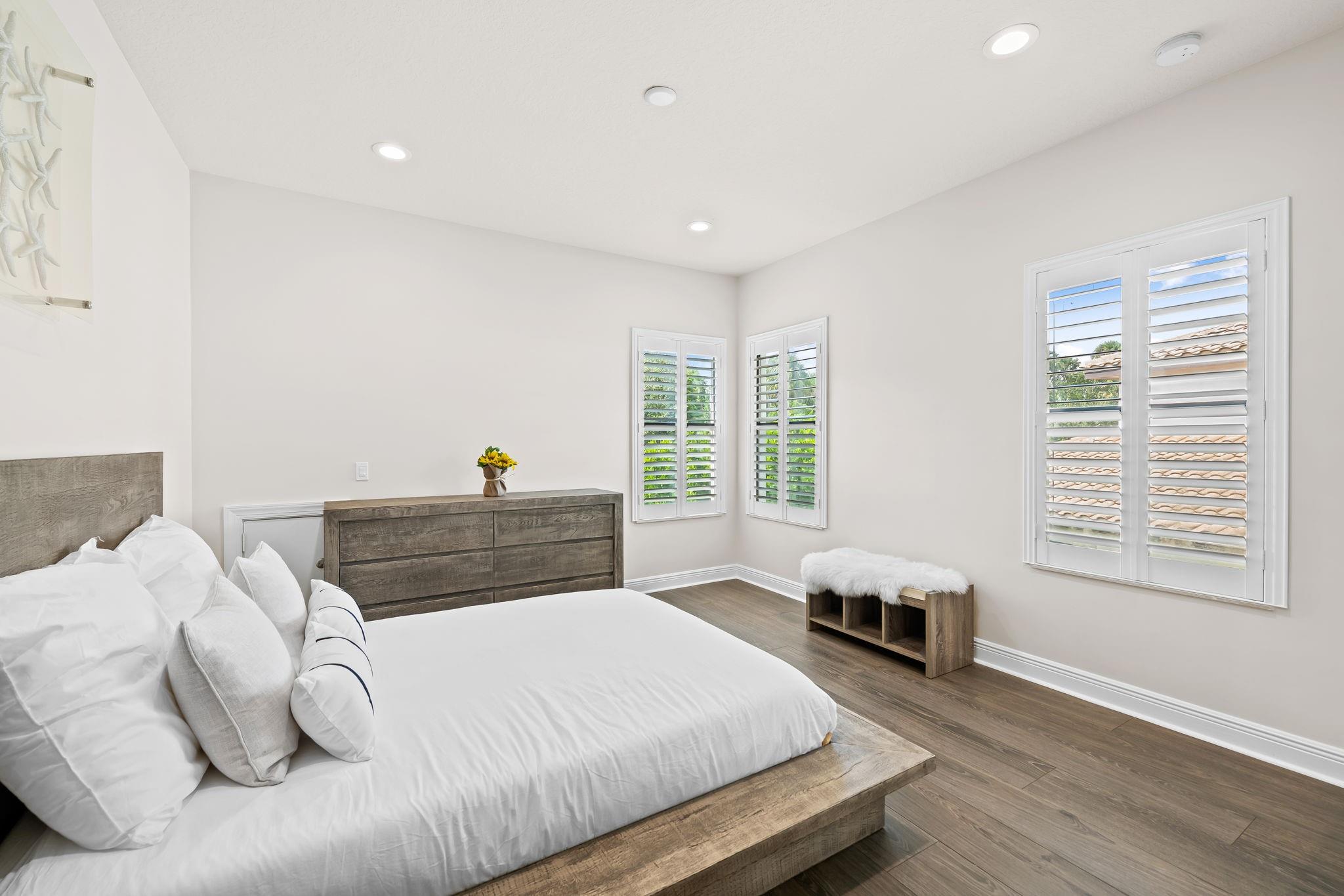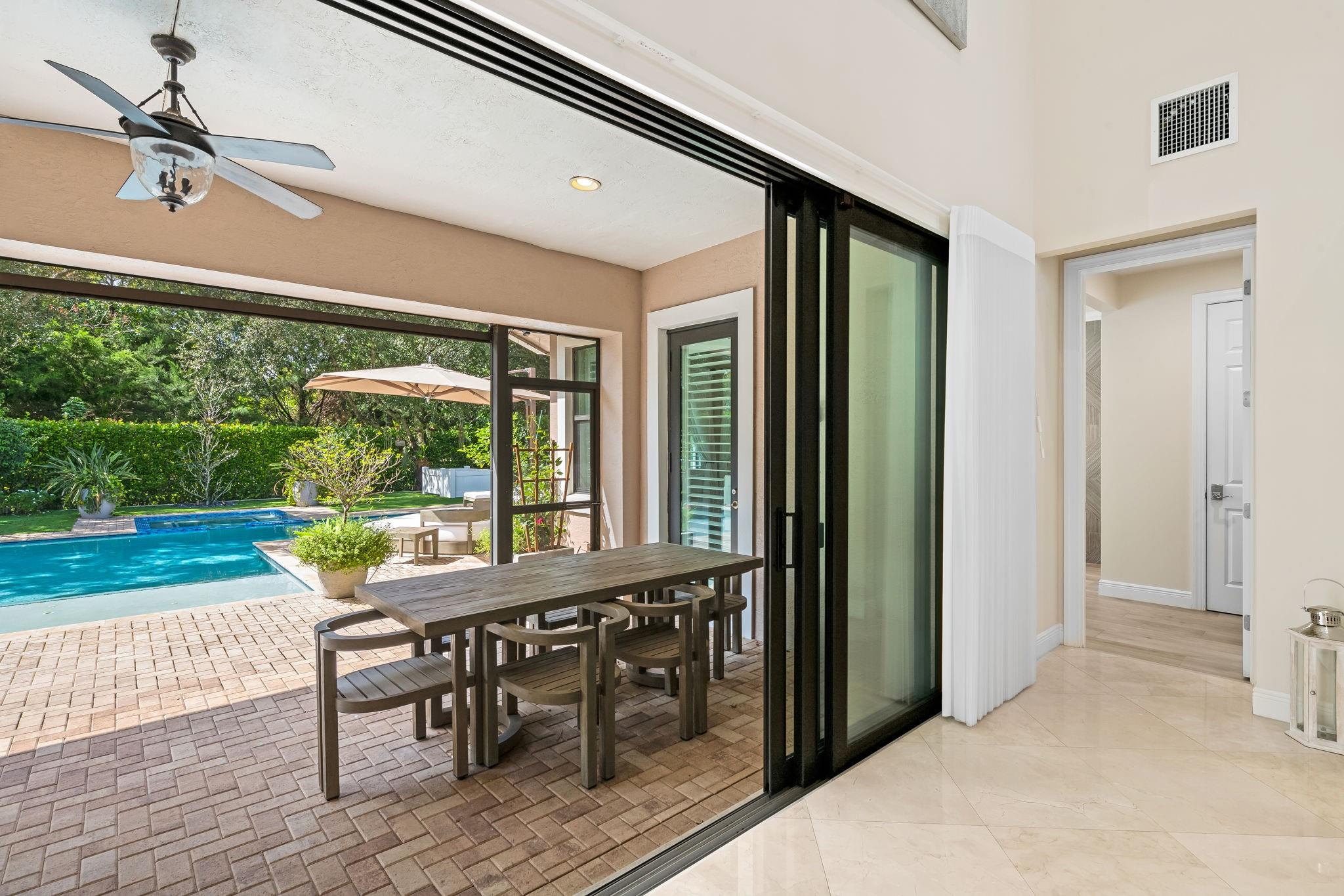 Parkland Golf and Country Club Saviero model feat 5 beds and 4 baths plus flex room. New Porcelanosa floors in the bedrooms and office. The open floor plan is ideal for entertaining and includes an expansive two-story great room with direct access to the covered lanai, a kitchen with a large center island, and an adjacent dining room. Lots of natural light, window treatments, plantation shutters, built-in entertainment center. Master suite with two custom walk-in closets. Exterior features include an upgraded heated pool with spa, whole home generator, lush private landscaping, electric patio screen, and awning. Newly painted, impact windows and sliders. Resort-style amenities, A-rated schools!