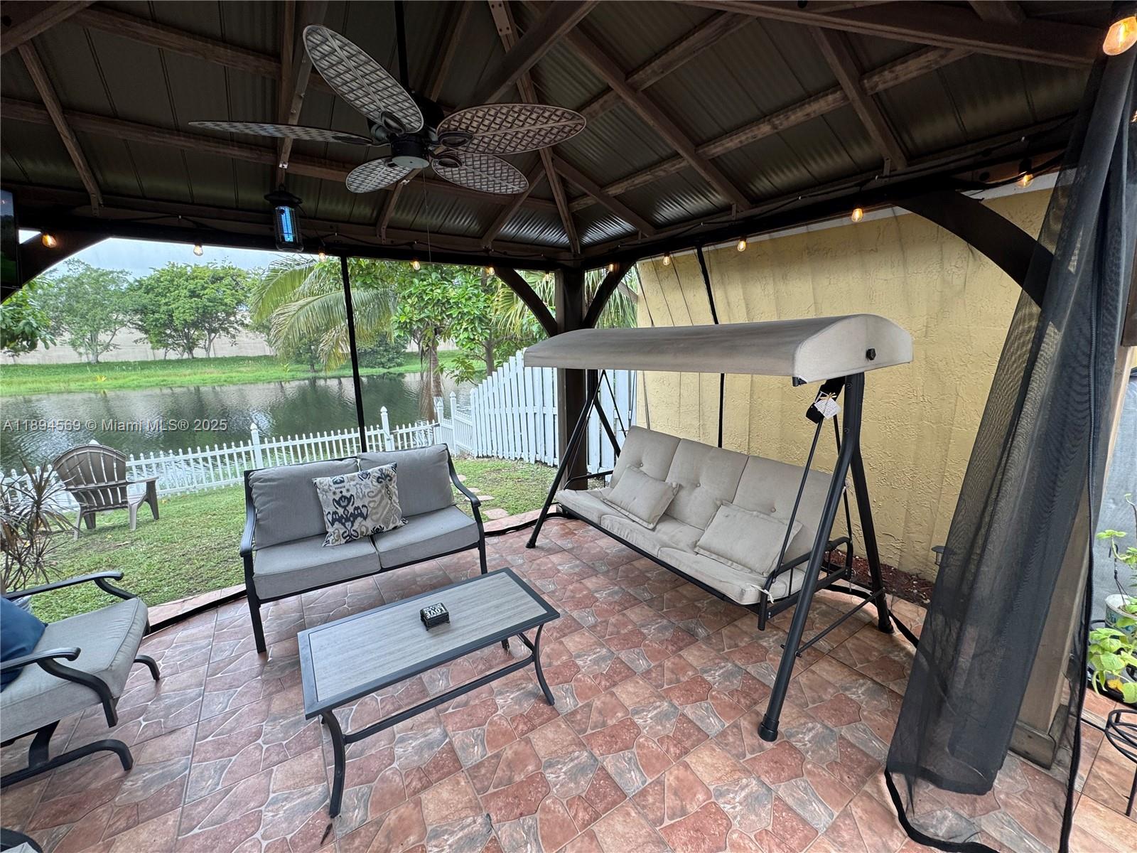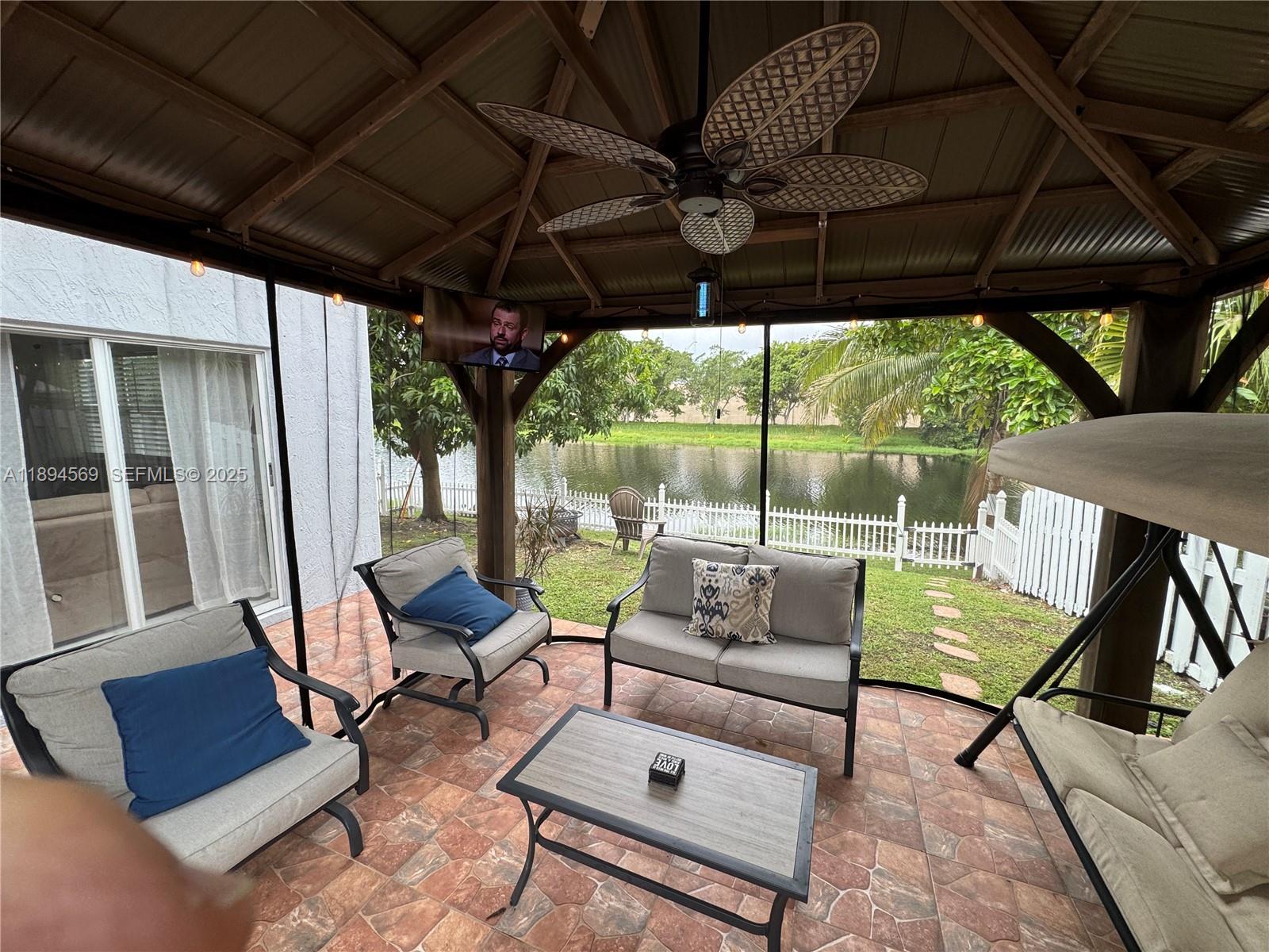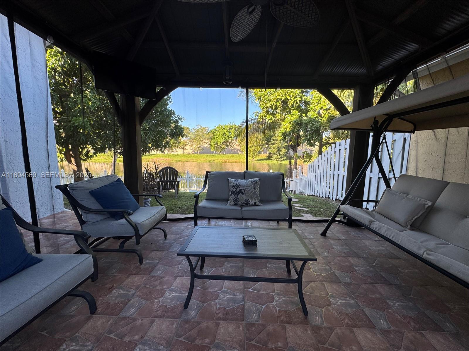 This Move in ready, 4-bedroom 2.5 bath home offers Bright and Airy floor plan with waterfront views from Florida Room, kitchen and master bedroom. Located in sought out Huntington area, surrounded by A+ rated schools with easy access to I-75 and Turnpike. Near great shopping malls like the Pembroke Gardens Open Mall and others. Lots of Parks, Lakes and walking paths. Situated on a private street with no back yard neighbors. Enjoy your time with family & friends at rear Gazebo which includes a bubbling Hot Tub! Open kitchen features granite counter tops, new cabinets & stainless-steel appliances. Fully remodeled baths! No Flood zone X, no flood insurance required. Easy to show.