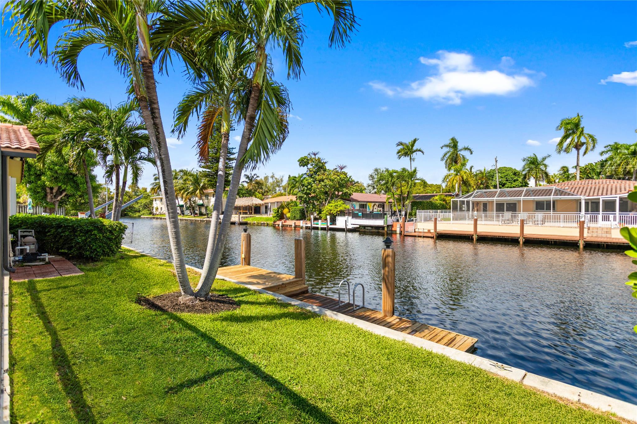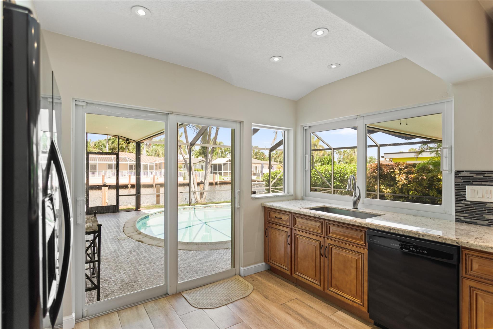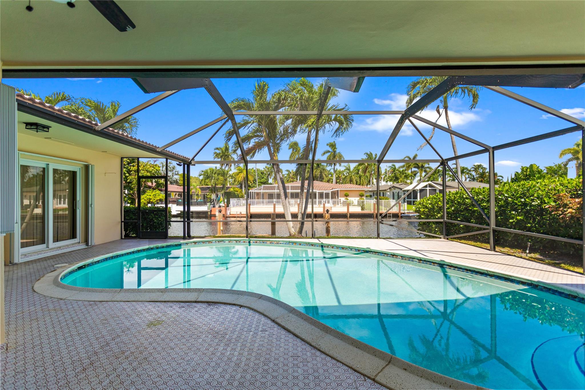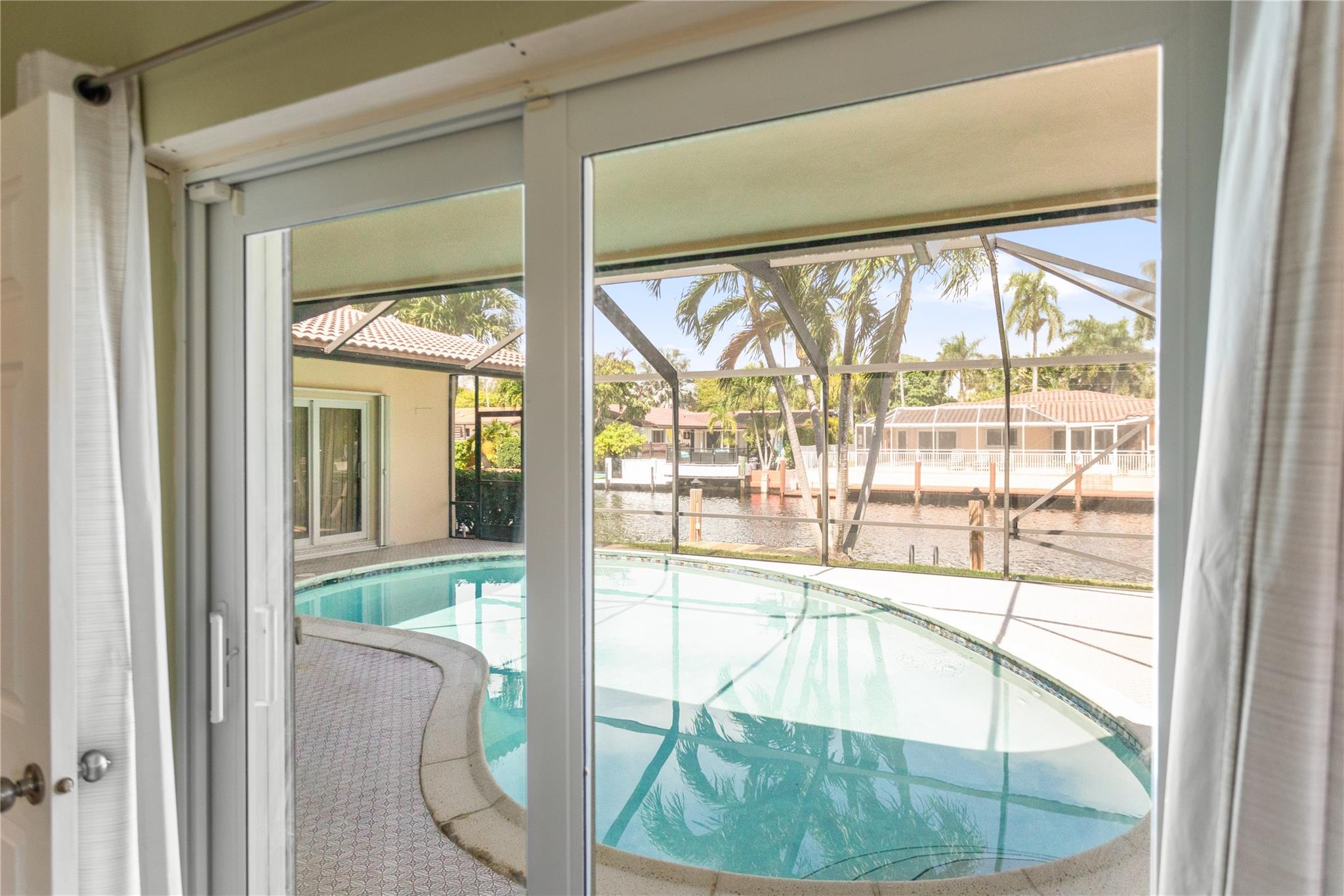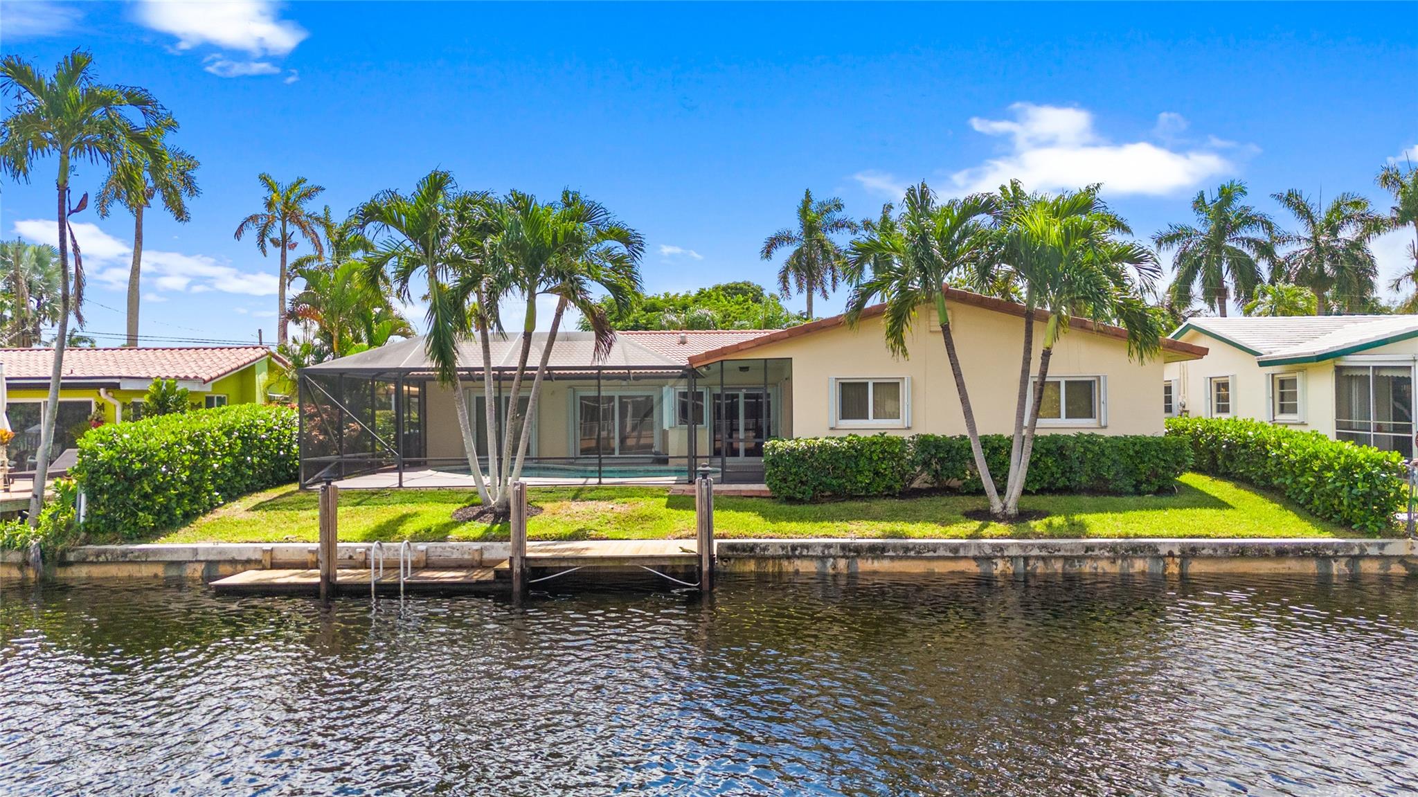 This home is what you have been waiting for! Totally renovated 4/3 waterfront pool home located in Coral Ridge Isles on a cul-de-sac street. Remodeled throughout home starting w/ an expanded kitchen, 2 breakfast counters & extra cabinets. Split bedroom plan, master bedroom has a large walk-in closet & private bath, Skylight in family room, Hurricane impact windows & doors w/ accordion shutters. Cast iron pipes were replaced to PVC (2023). Upgraded interior electric panel, Paver front porch & circular driveway, exterior painted 2024, Most rooms view the pool & 75 ft of waterfront. Desirable North/South exposure offers beautiful sunrises & sunsets on the canal & has ocean access by boat (some fixed bridges). Convenient location near schools, stores, restaurants, hospital & beaches.