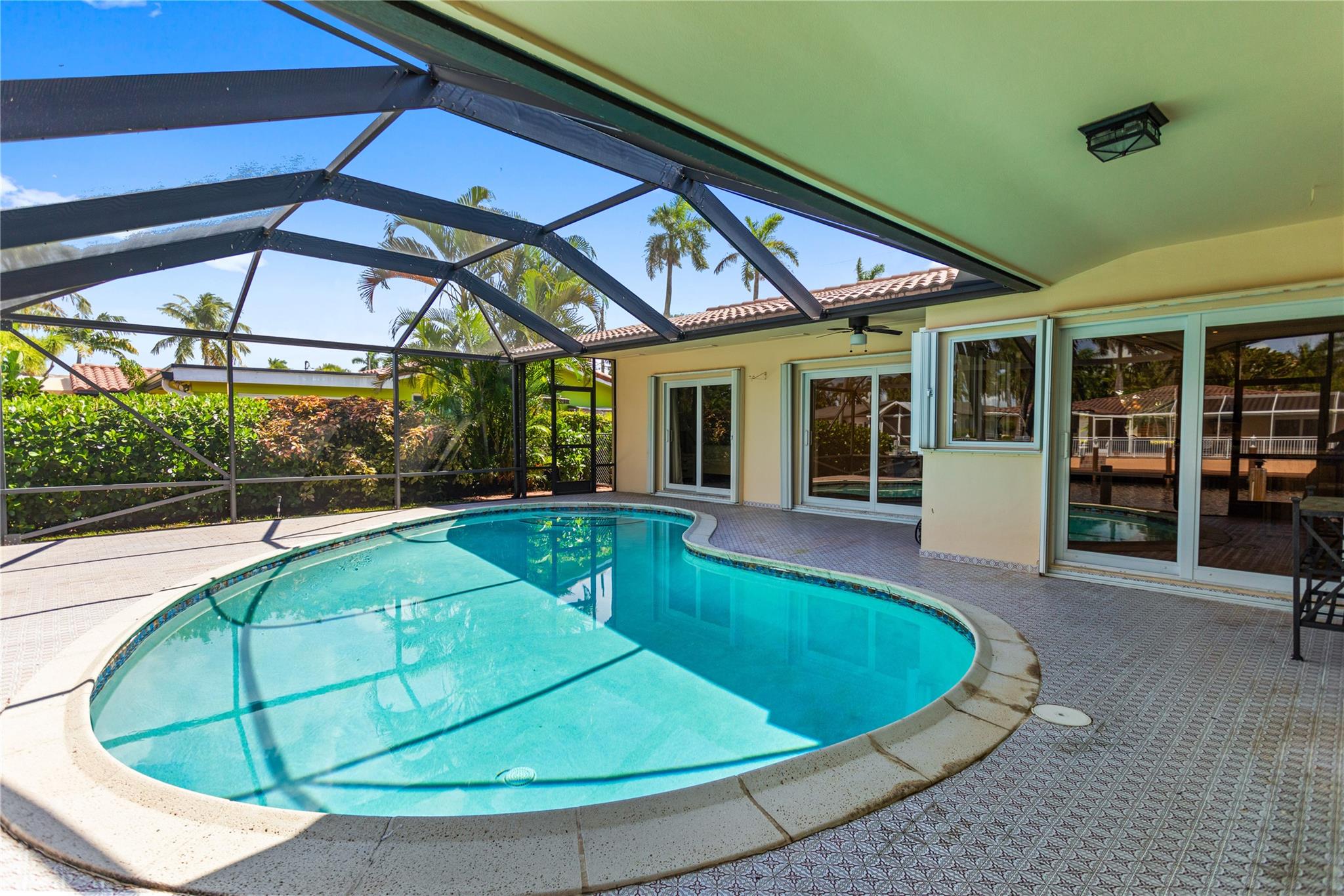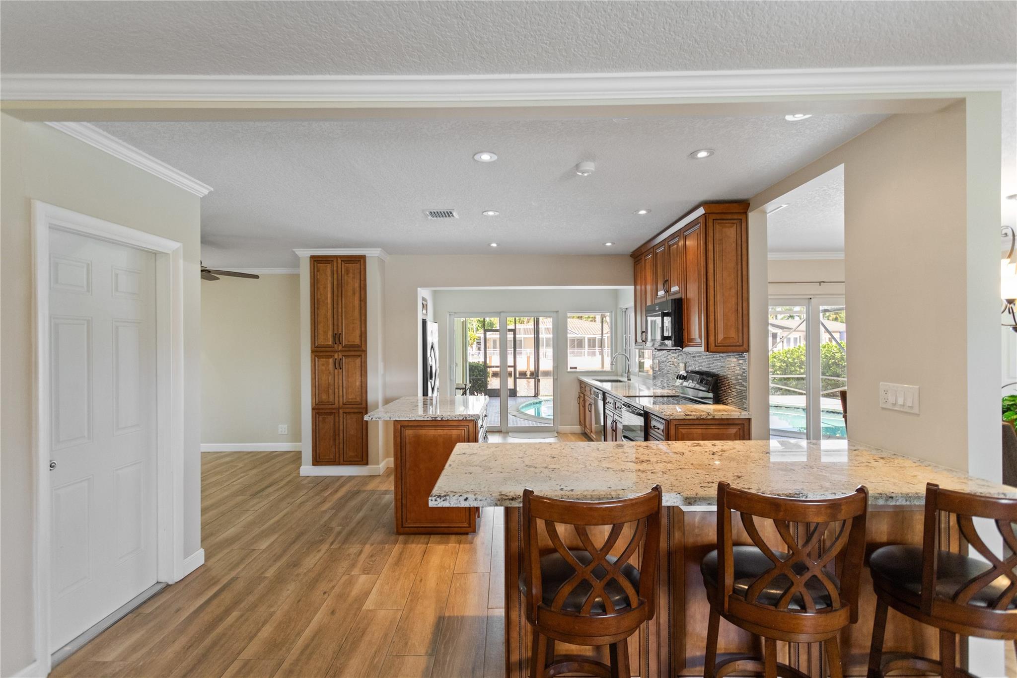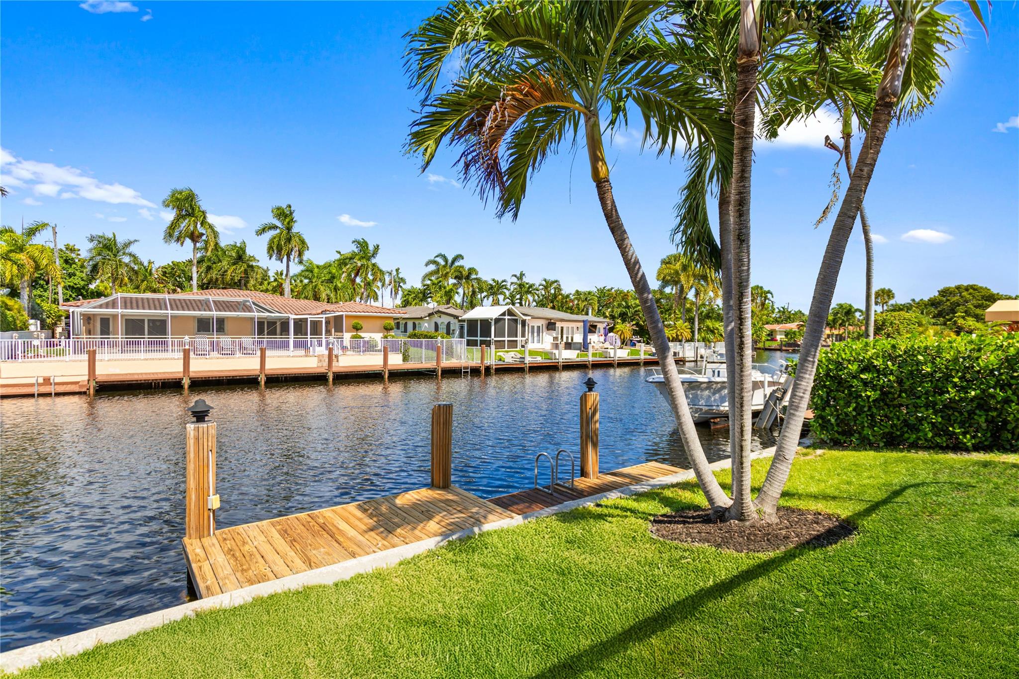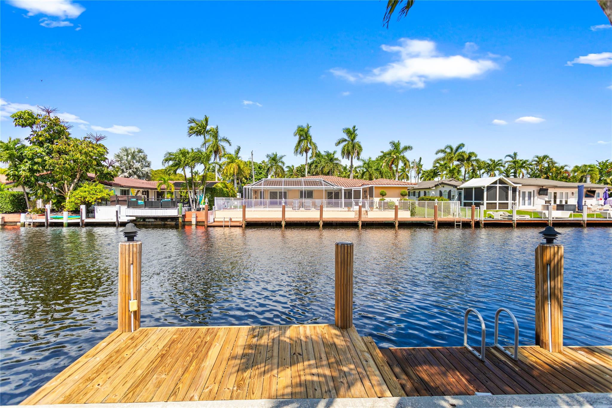This home is what you have been waiting for! Totally renovated 4/3 waterfront pool home located in Coral Ridge Isles on a cul-de-sac street. Remodeled throughout home starting w/ an expanded kitchen, 2 breakfast counters & extra cabinets. Split bedroom plan, master bedroom has a large walk-in closet & private bath, Skylight in family room, Hurricane impact windows & doors w/ accordion shutters. Cast iron pipes were replaced to PVC (2023). Upgraded interior electric panel, Paver front porch & circular driveway, exterior painted 2024, Most rooms view the pool & 75 ft of waterfront. Desirable North/South exposure offers beautiful sunrises & sunsets on the canal & has ocean access by boat (some fixed bridges). Convenient location near schools, stores, restaurants, hospital & beaches.