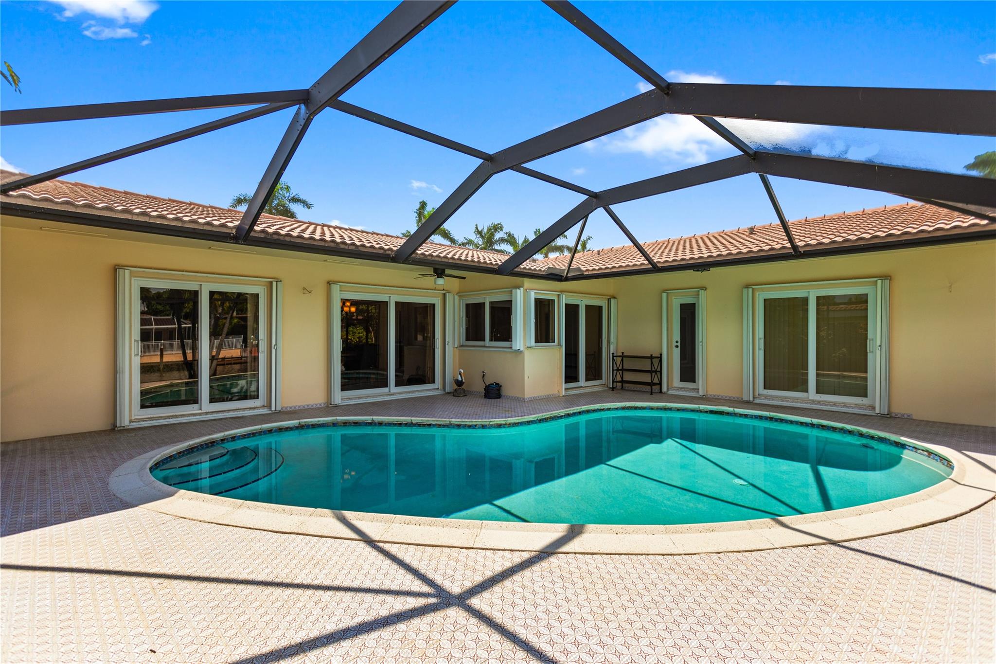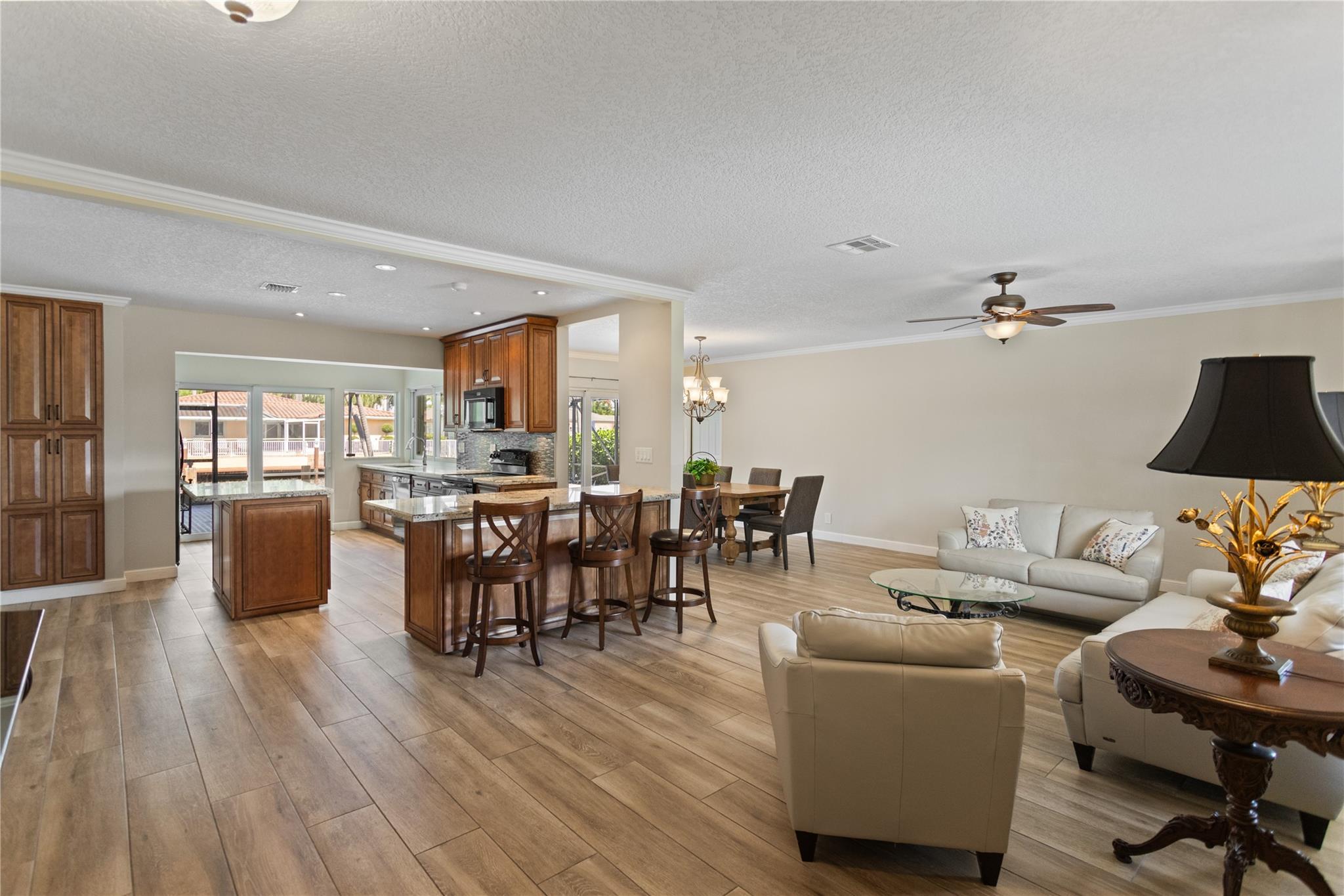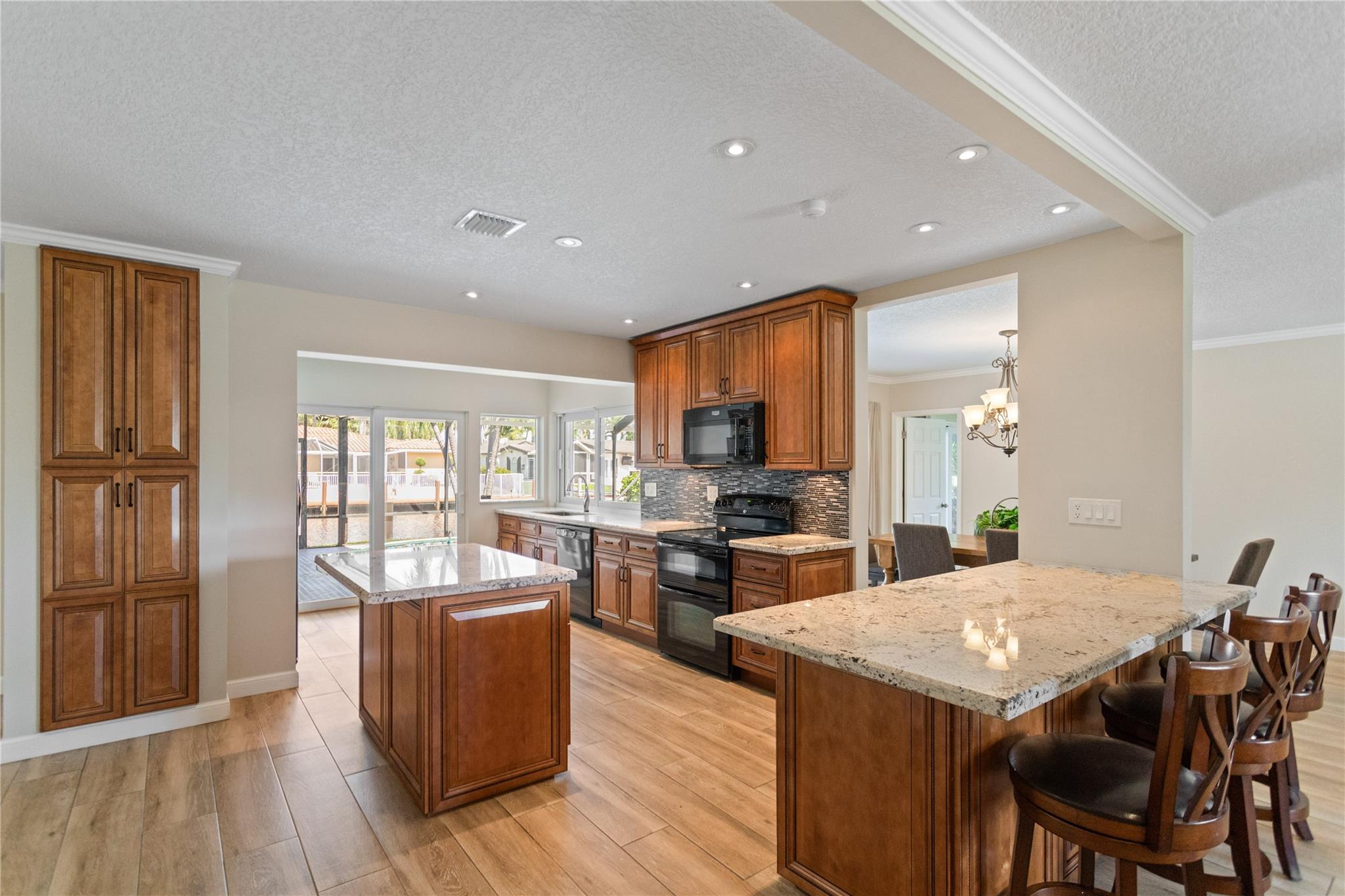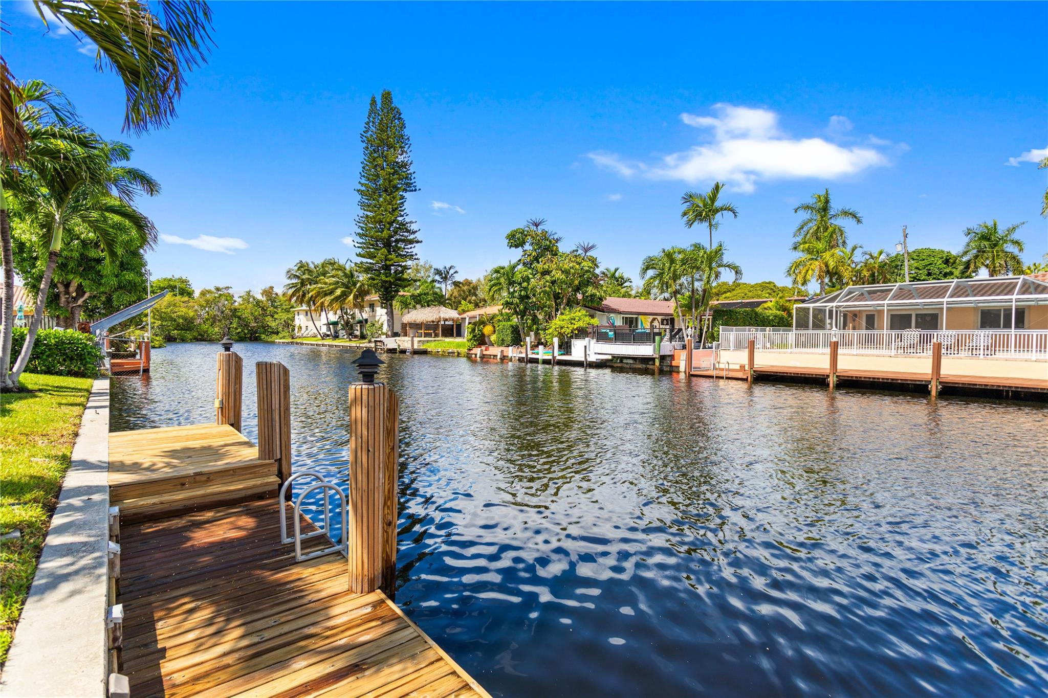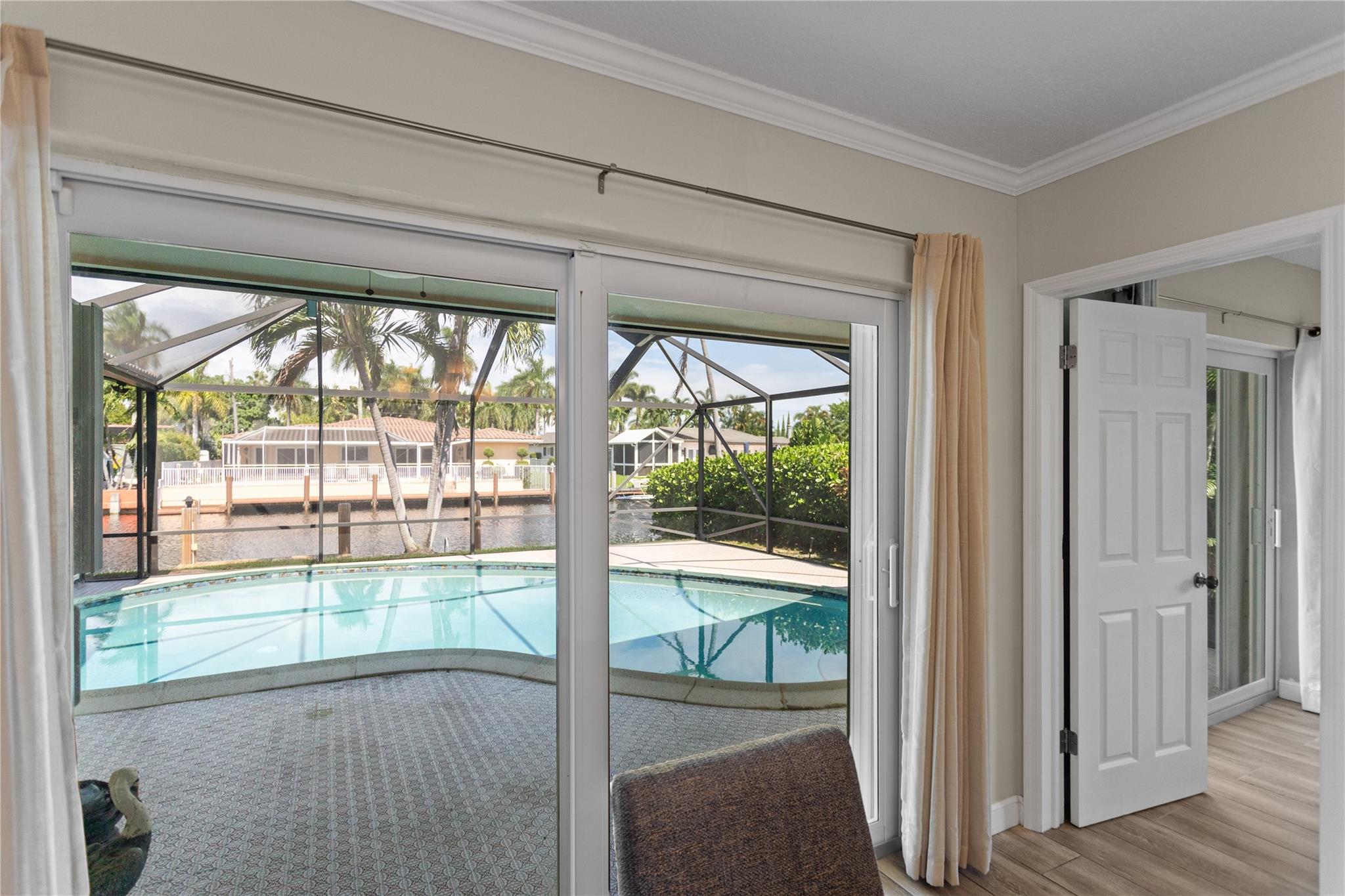 This home is what you have been waiting for! Totally renovated 4/3 waterfront pool home located in Coral Ridge Isles on a cul-de-sac street. Remodeled throughout home starting w/ an expanded kitchen, 2 breakfast counters & extra cabinets. Split bedroom plan, master bedroom has a large walk-in closet & private bath, Skylight in family room, Hurricane impact windows & doors w/ accordion shutters. Cast iron pipes were replaced to PVC (2023). Upgraded interior electric panel, Paver front porch & circular driveway, exterior painted 2024, Most rooms view the pool & 75 ft of waterfront. Desirable North/South exposure offers beautiful sunrises & sunsets on the canal & has ocean access by boat (some fixed bridges). Convenient location near schools, stores, restaurants, hospital & beaches.