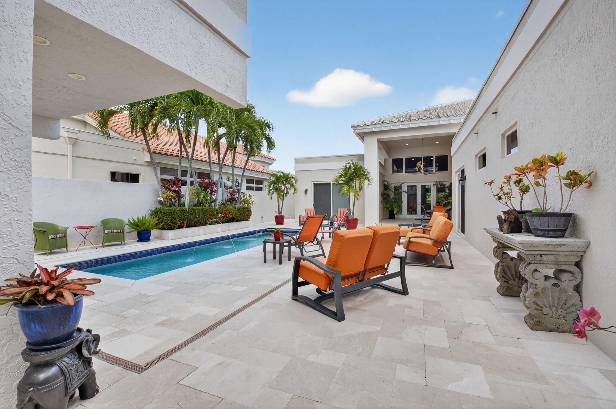 What an incredible Estate Home. Enjoy beautiful golf/water views as you have your morning coffee or evening cocktails from the screened patio (24X14). Completely remodeled, incredible open floor plan, Little or no walls in the living area. Gorgeous bright granite kitchen, dual dishwashers, gas stove, 8X6 center island, tons of cabinet space. Sports bar (13X12) with wine cooler, coffee bar, mini fridge, sink and dishwasher. Owner's Suite has separate bathrooms (22X14 and 15x8) and two huge walk-in closets (15X8 and 10x8). Second bedroom features en-suite bath. Guest house has 2 bedrooms (15X9 and14X12), one on the first floor, the other upstairs and a bath. Balcony off the bedroom, overlooking the heated pool. Also 1/2 bath at pool.