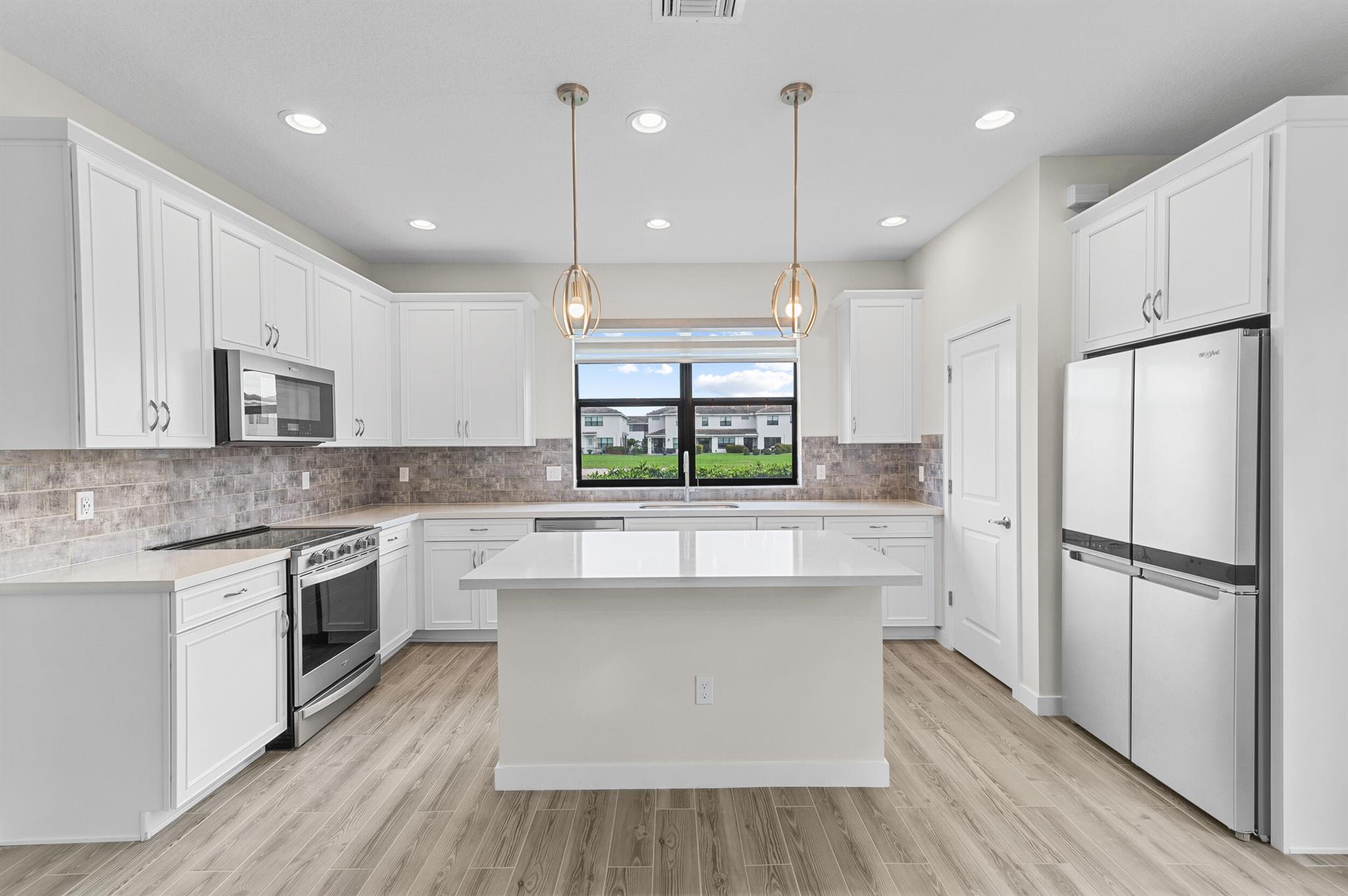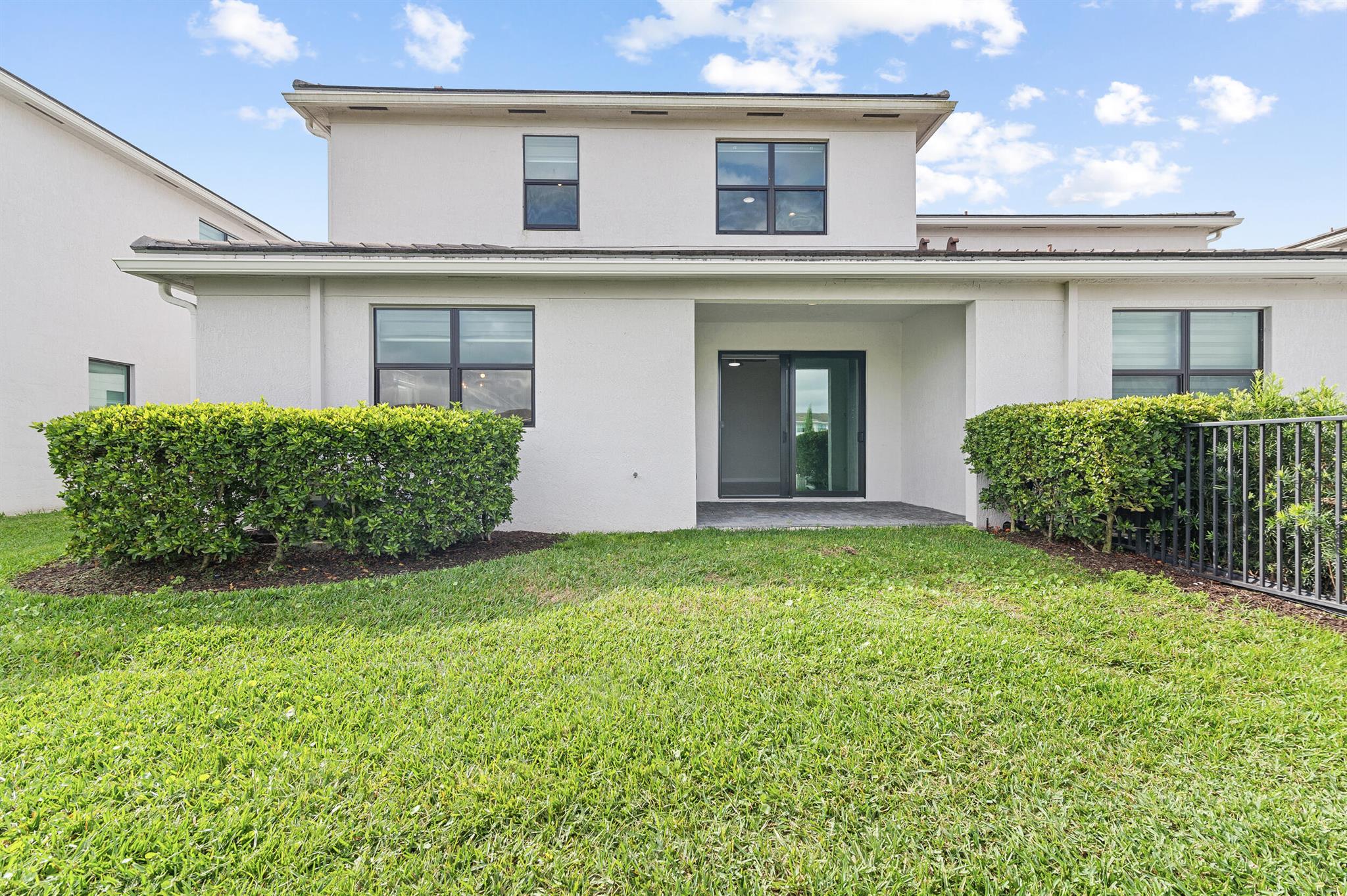 Beautiful like new 4 Bedroom townhouse with peaceful water views. Newly converted bedroom includes folding barn door for privacy and ample closet space. Close to all, easy access to Florida Turnpike, restaurants, beach and equestrian facilities. 2.5 bathrooms, 2 car garage, large open kitchen with center island. Stainless steel appliances. Custom zebra shades with motorized slider shade. Quartz countertops in kitchen and mater bathroom counter top. Granite in second bathroom. Quiet, gated community with gated community pool. Buyer to verify all information.