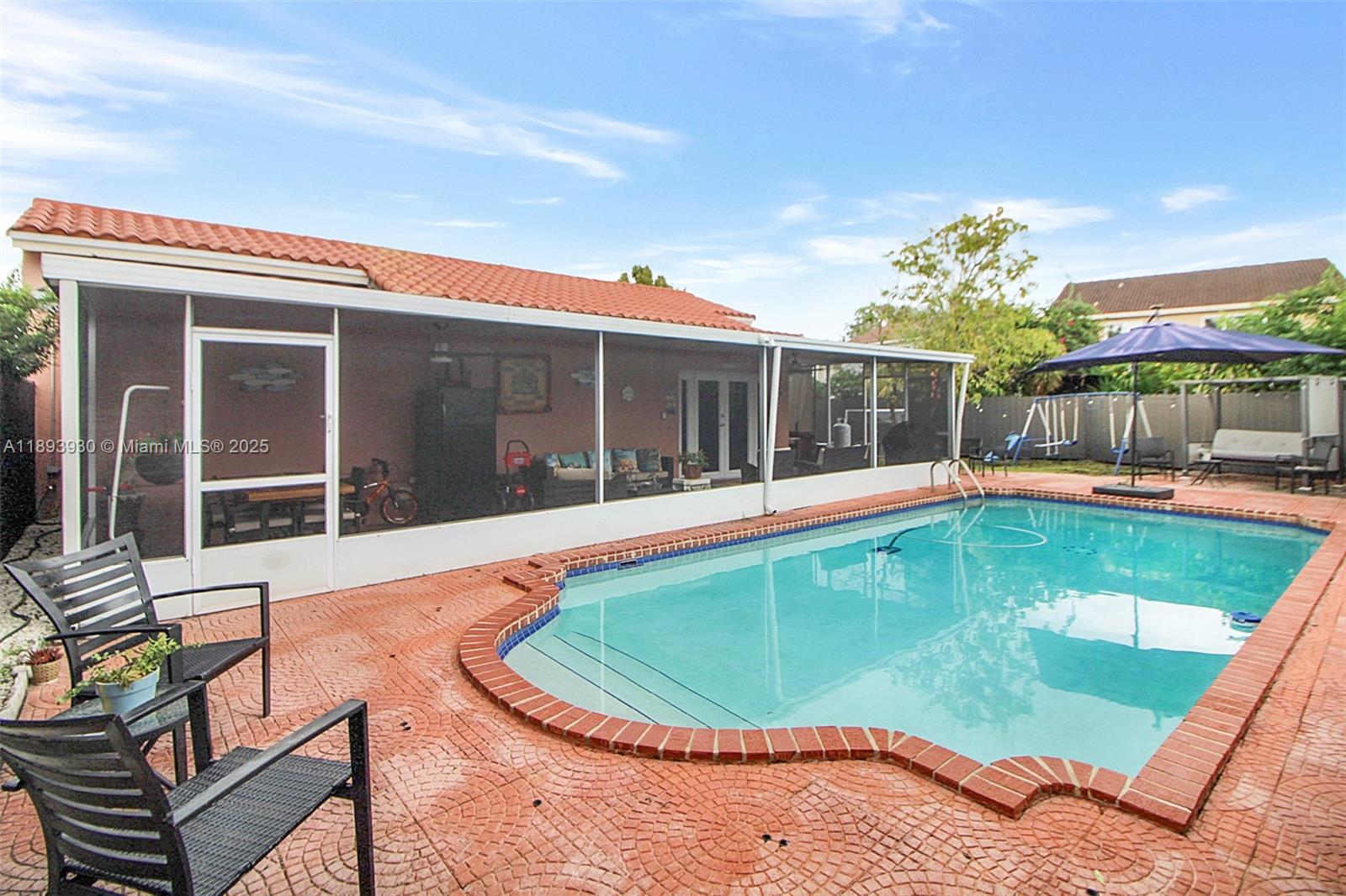 The essentials for Miami Living can be found here! Impact windows protect the home from the outside elements. Newer roof less than 5 years old, helps ensure your peace of mind for decades. Recently installed ac unit, helps keep you nice and cool during those grueling summer months. And to top it off, featured is an oversized pool in your backyard for the family to enjoy. The backyard offers plenty of additional space for entertaining besides the grand pool. The two car garage has been converted to an oversized flex space that can be used for a child's playroom, extra bedroom, or office space. The kitchen finishes are extra tall solid wood cabinets which can be refinished to a lighter modern look and a granite countertop. The hard work has been done, just missing your personal touch.