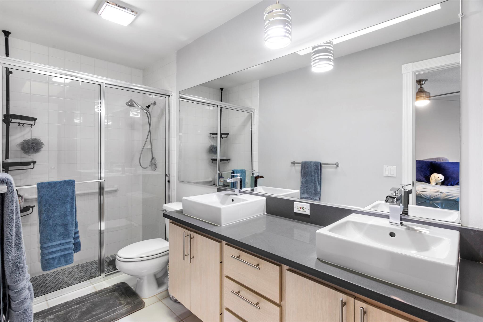 Desirable and updated Divosta built townhome in the heart of Palm Beach Gardens. The home has been updated with luxury wood vinyl plank waterproof flooring throughout the living area, kitchen and bedrooms. Other features in the living area include a full custom wall unit for additional storage, updated lighting, ceiling fan, and a vaulted ceiling. The kitchen has been upgraded with stainless steel appliances, quartz countertops, large under mount stainless steel sink, and a cheery coastal backsplash. The bathrooms have been updated with quartz countertops, above the counter sinks with waterfall faucets, and penny tile in the master bath walk in shower. A washer and dryer are conveniently located within the unit. Seller replaced poly piping in 2024!