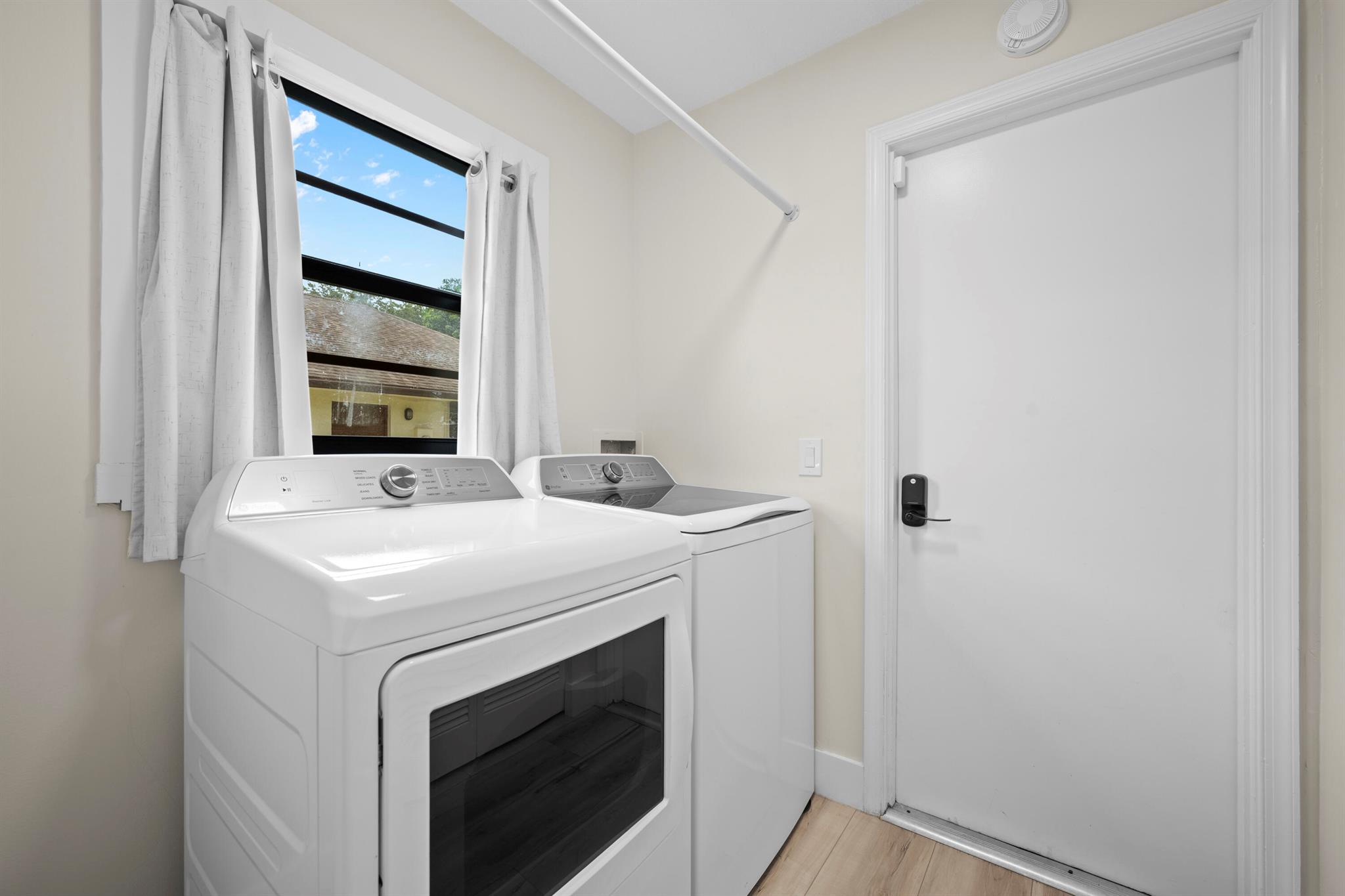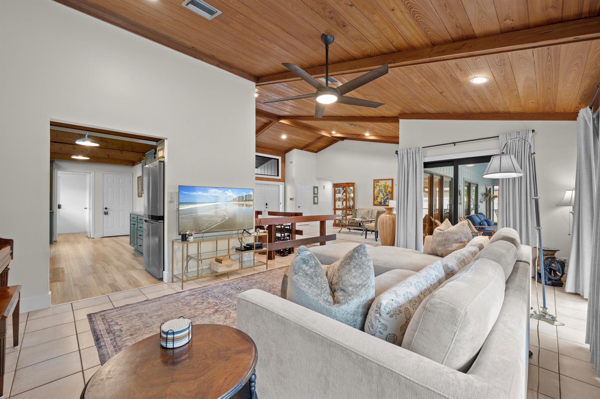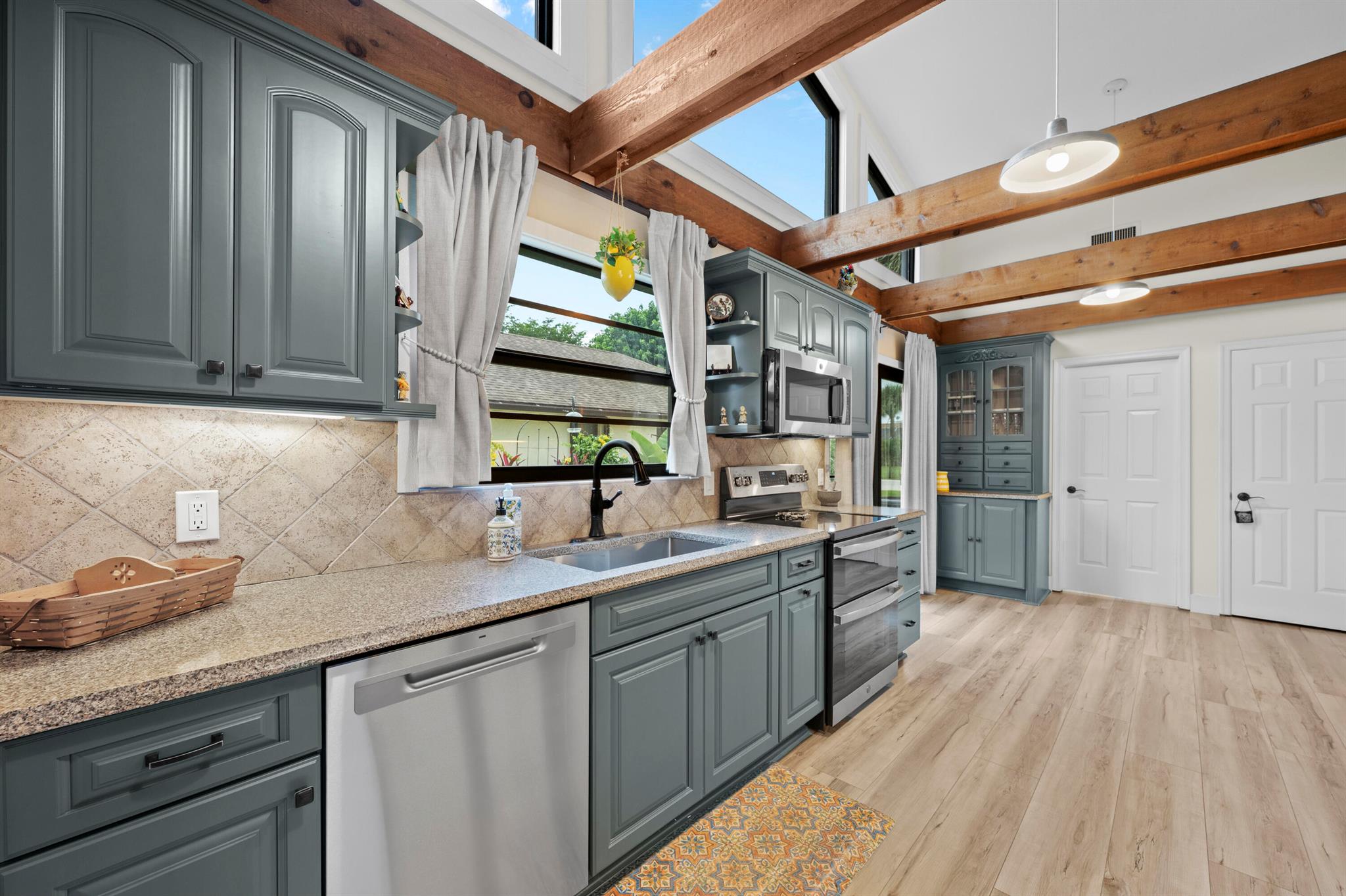 Step into a one-of-a-kind California contemporary masterpiece tucked away in the coveted Gardens Glen community of Palm Beach Gardens. This striking home blends timeless 1980s character with fresh, modern upgrades. Vaulted wood ceilings, dramatic exposed beams & walls of sliding glass that flood the space w/ light & open seamlessly to a private screened pool & covered porch. No rear neighbors, no HOA! Enjoy peace of mind with impact glass throughout, refreshed siding, new interior & exterior paint, 2 brand new A/C units, tankless water heater, new kitchen appliances, new washer/dryer, new pool equipment & attic insulation. Termite bond in place. The oversized garage features epoxy flooring & fresh paint perfect for storage, hobbies, or a sleek home gym.