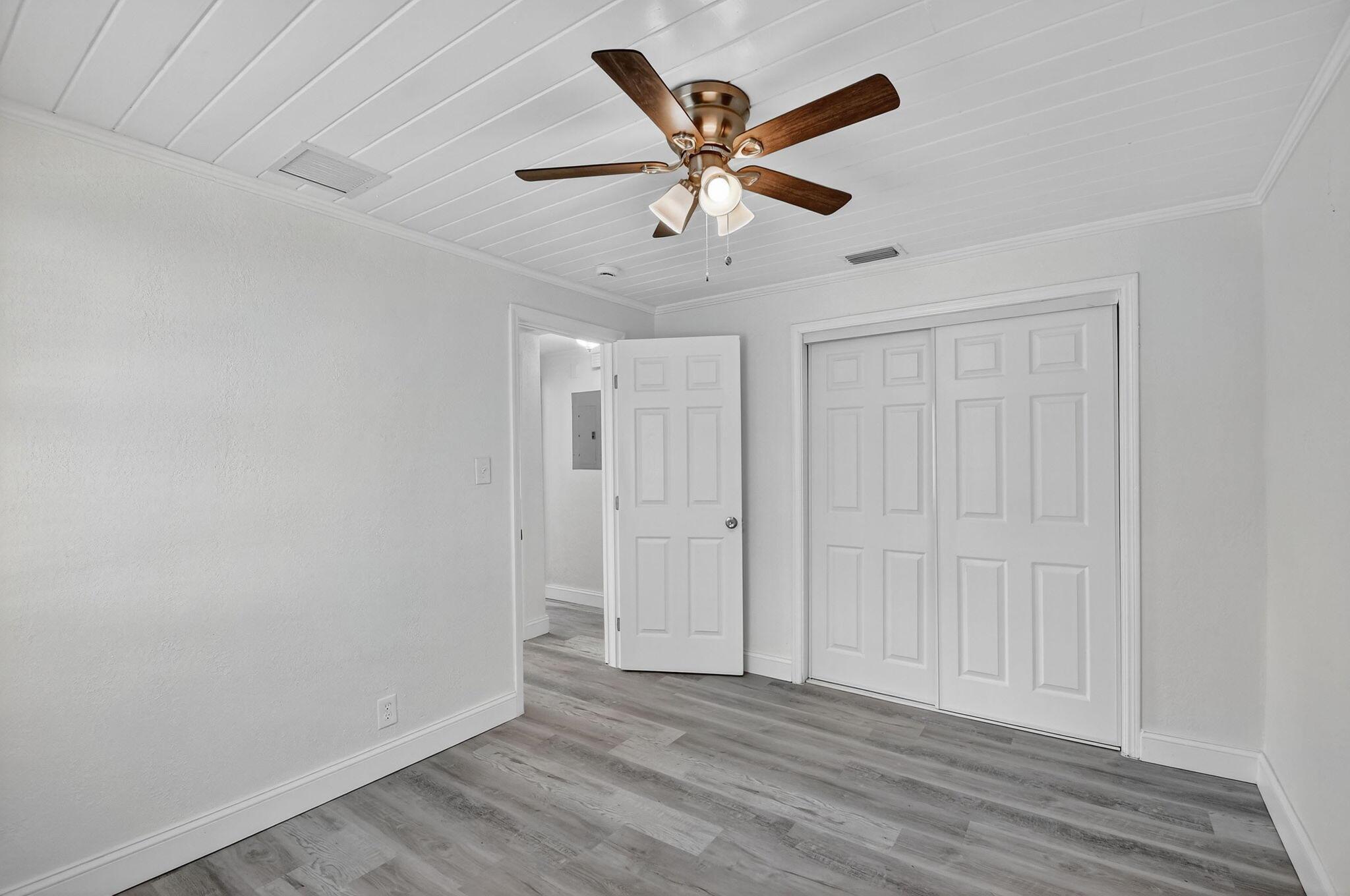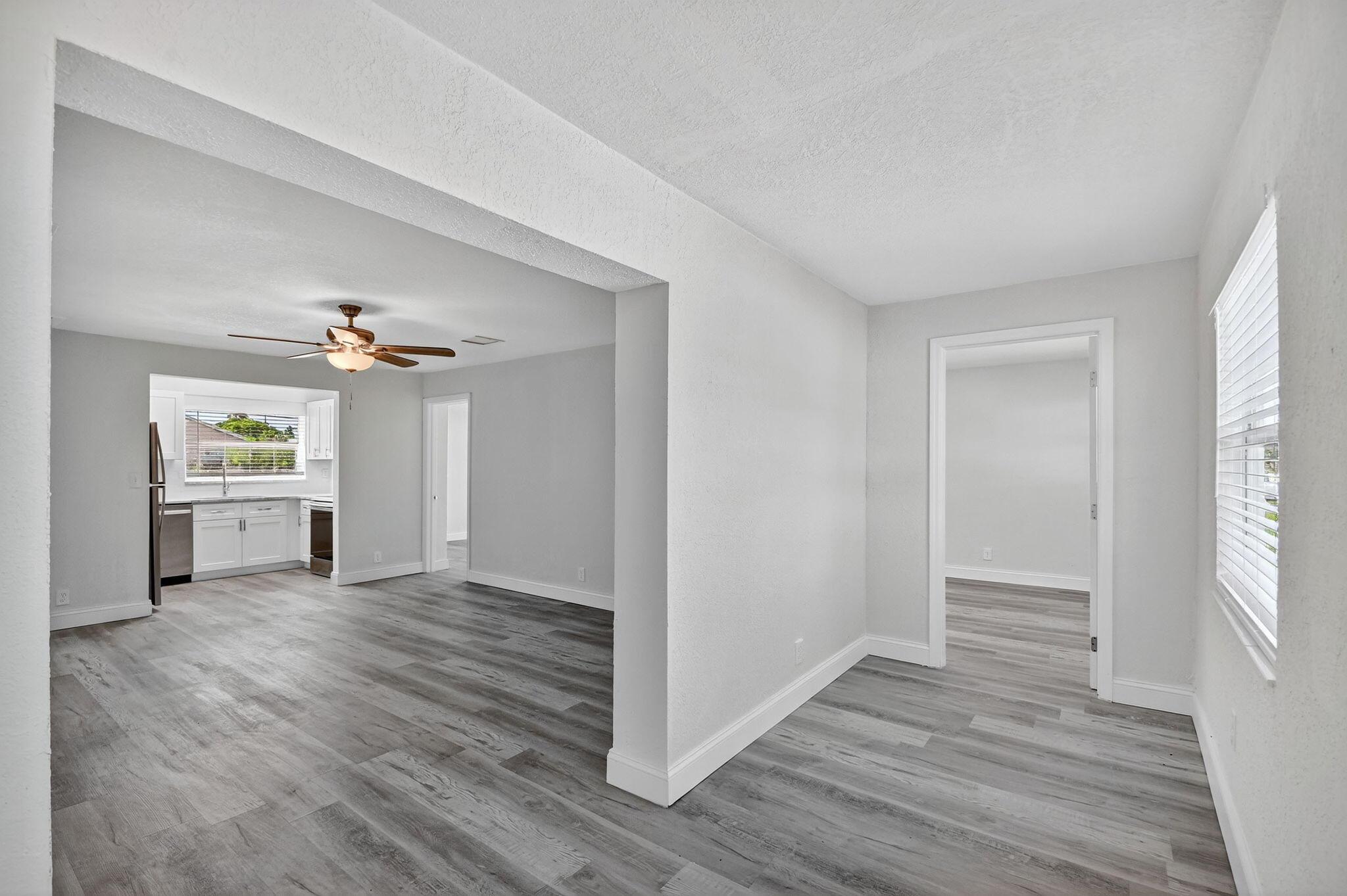 NEW ROOF!Welcome home to this charming 3-bedroom, 1-bath single-family residence with no HOA in Riviera Beach. This move-in-ready property features updated wood laminate flooring throughout, an open-concept kitchen with stainless steel appliances, and a split floor plan offering comfortable privacy. The spacious laundry room provides potential to easily add a second bathroom if desired. Freshly painted inside and out, this home combines comfort and convenience with a brand-new roof currently in the permitting process.
