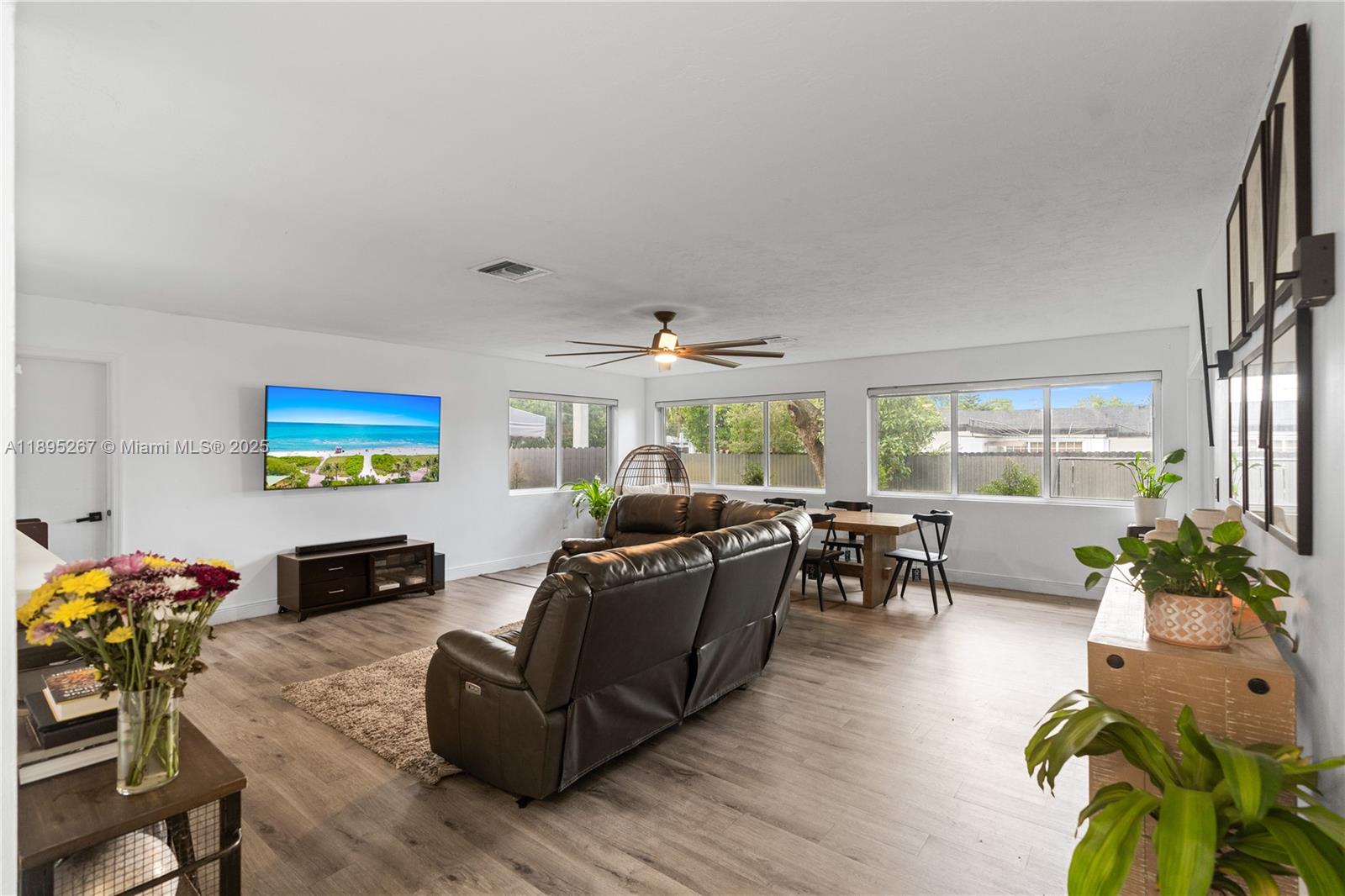 Beautiful 3/2 with independent in-law quarters perfect for rental income or a large family! Home was recently upgraded with new roof, new floors, upgraded bathrooms, new AC unit, new exterior fence, new impact windows, blinds and more. California closets in all rooms for space saving. Home is centrally located only blocks away from Turnpike for easy commuting. Includes water and electric. Large patio perfect for entertaining. As per owner, received notice from City of Hollywood that they are working on connecting sewer lines to the area. Please contact agent for more details. No association!