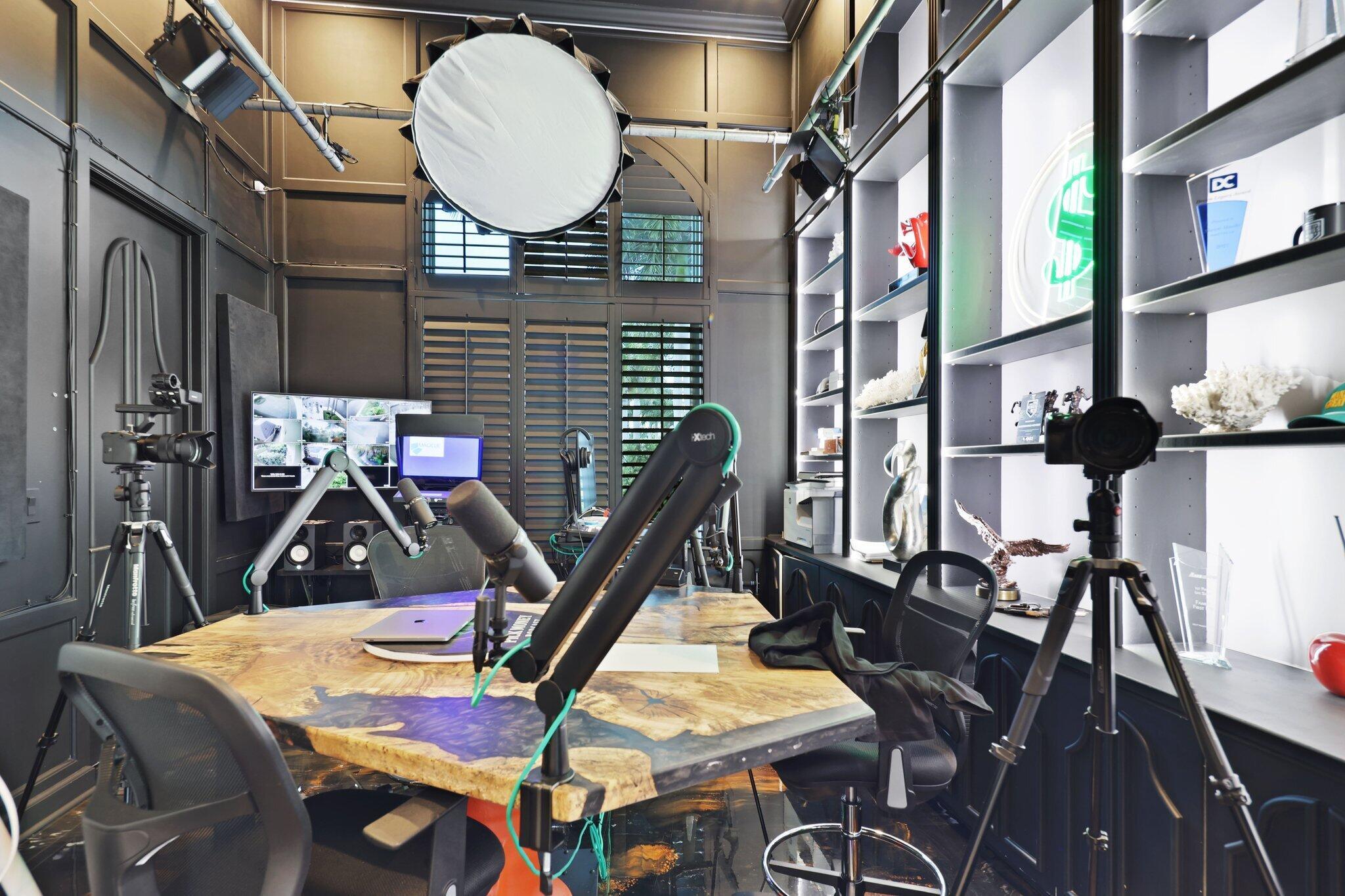 A true point lot on the Intracoastal, 7400 NE Orchid Bay Terrace commands more than 270 feet of wraparound waterfront with direct ocean access and quick run to the inlet. The rare unobstructed southern exposure brings consistent light, wide open water views, and privacy across the .42 acre lot. Every main room faces the water. The kitchen is finished with custom EBONIST high-gloss cabinetry, Wolf cooking appliances, and Sub-Zero refrigeration and freezer. The first floor includes three bedrooms plus an office. The primary suite is upstairs, along with a second full suite sized room currently used as a performance gym. The gym includes Life Fitness equipment, a dry sauna, Miele coffee bar, Sub-Zero refrigerator and freezer drawers, and a full size washer and dryer. The outdoor setting is