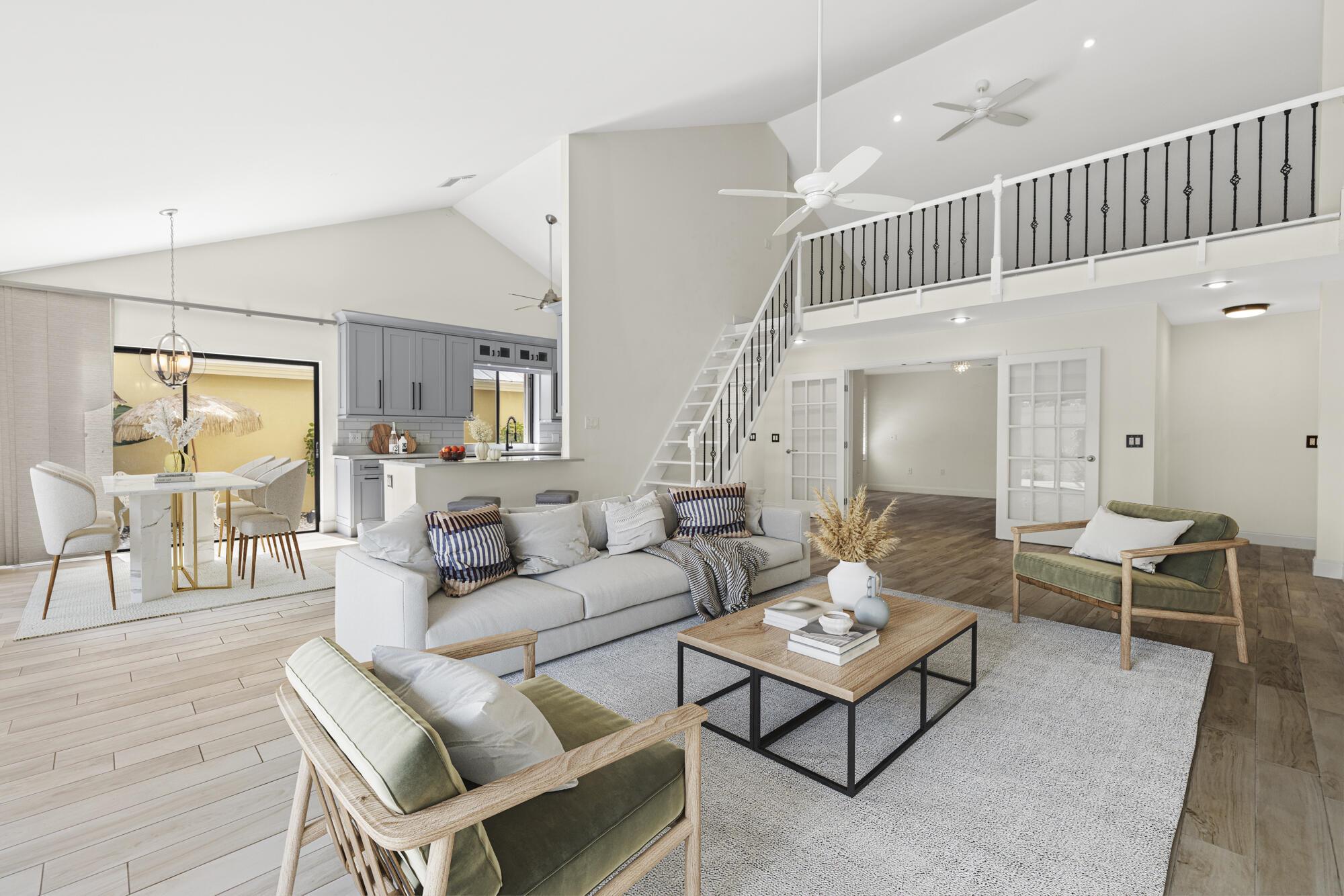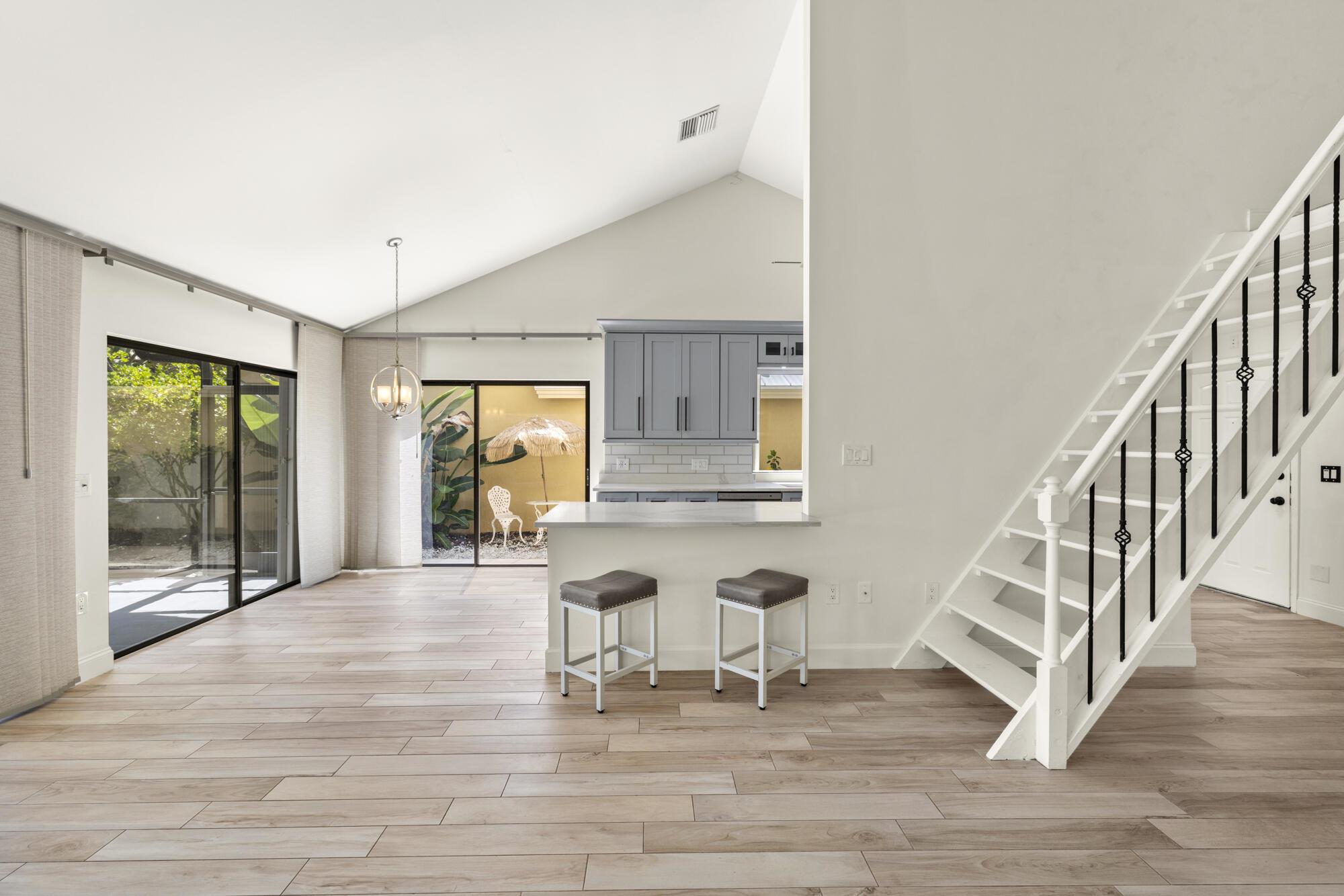 Move in ready! Model coastal contemporary renovated charming 3 bedroom, 2 bath plus loft in desirable community of Ridge at the Bluffs. The Bluffs is a quaint seaside community. Open kitchen concept w/quartz countertops, sleek cabinetry, breakfast bar,stainless steel appliances. Volume vaulted ceilings. Wine Bar. Porcelain tile light wood look flooring throughout. Luxurious brand new baths! Hunter Douglas window treatments. Desirable Eastern exposure. One of the largest private rear yards in the community perfect for fun and entertaining. Screened in patio. Close to upscale community amenities including tennis and pickleball courts, basketball, resort style heated pool and spa, playground and bike trails. Top A rated Jupiter school district. Minutes to fine dining, shopping, golf.