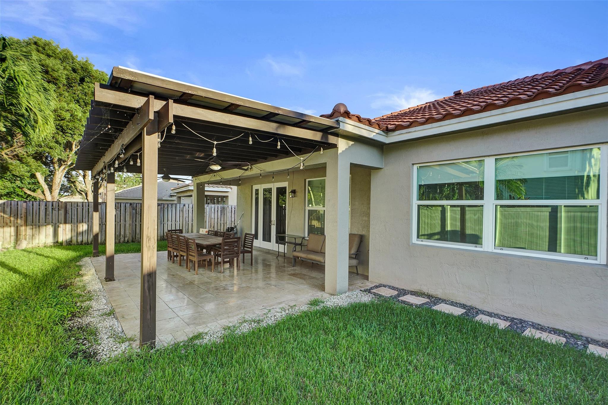 Introducing The Villa Medici model, a charming one story home, featuring 4 bedrooms, 2.5 bathrooms, and a 3-car garage, located in the highly sought-after community of The Point at Pembroke Isles. This well-maintained home offers a thoughtfully designed layout that flows seamlessly throughout, making it perfect for comfortable living and entertaining. Key features include a NEW roof (2020), impact windows and doors, and a NEW A/C unit (2021).Step outside to your private backyard and relax under the pergola. HOA includes: 24h security, internet, cable, maintenance, alarm monitoring, gym, tennis courts, pickleball courts, basketball court, soccer field, exercise room, sauna, 3 pools, playground, picnic area and more! Conveniently located near major highways, shopping and A+ Schools.