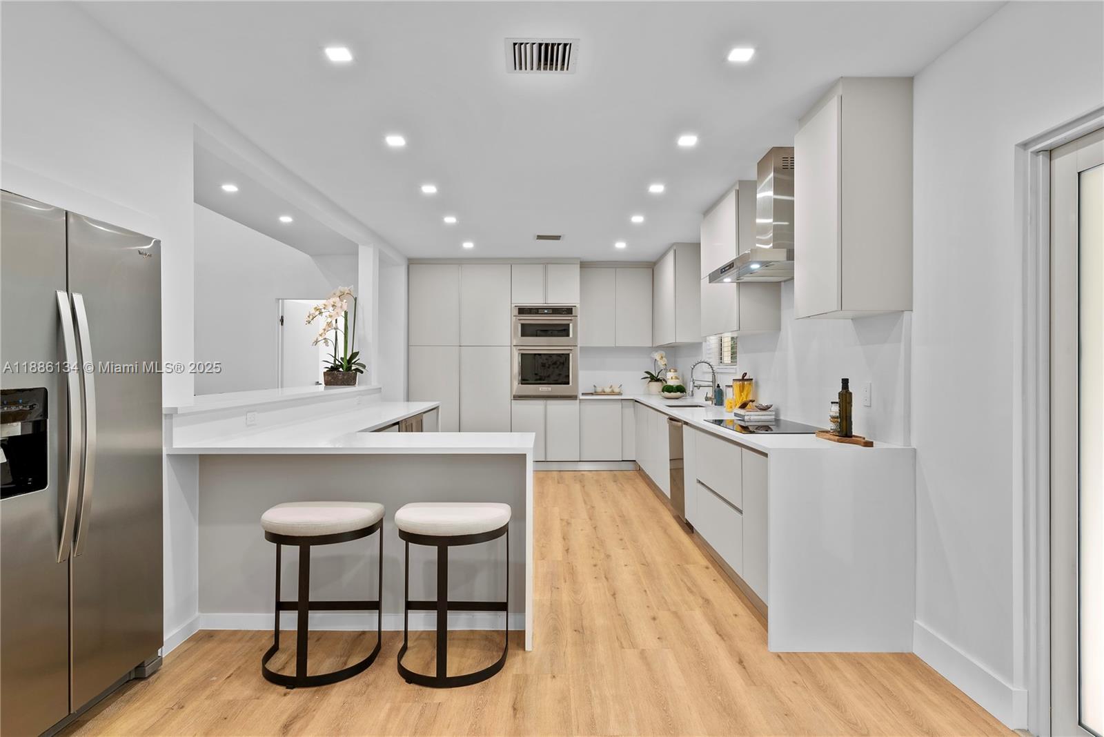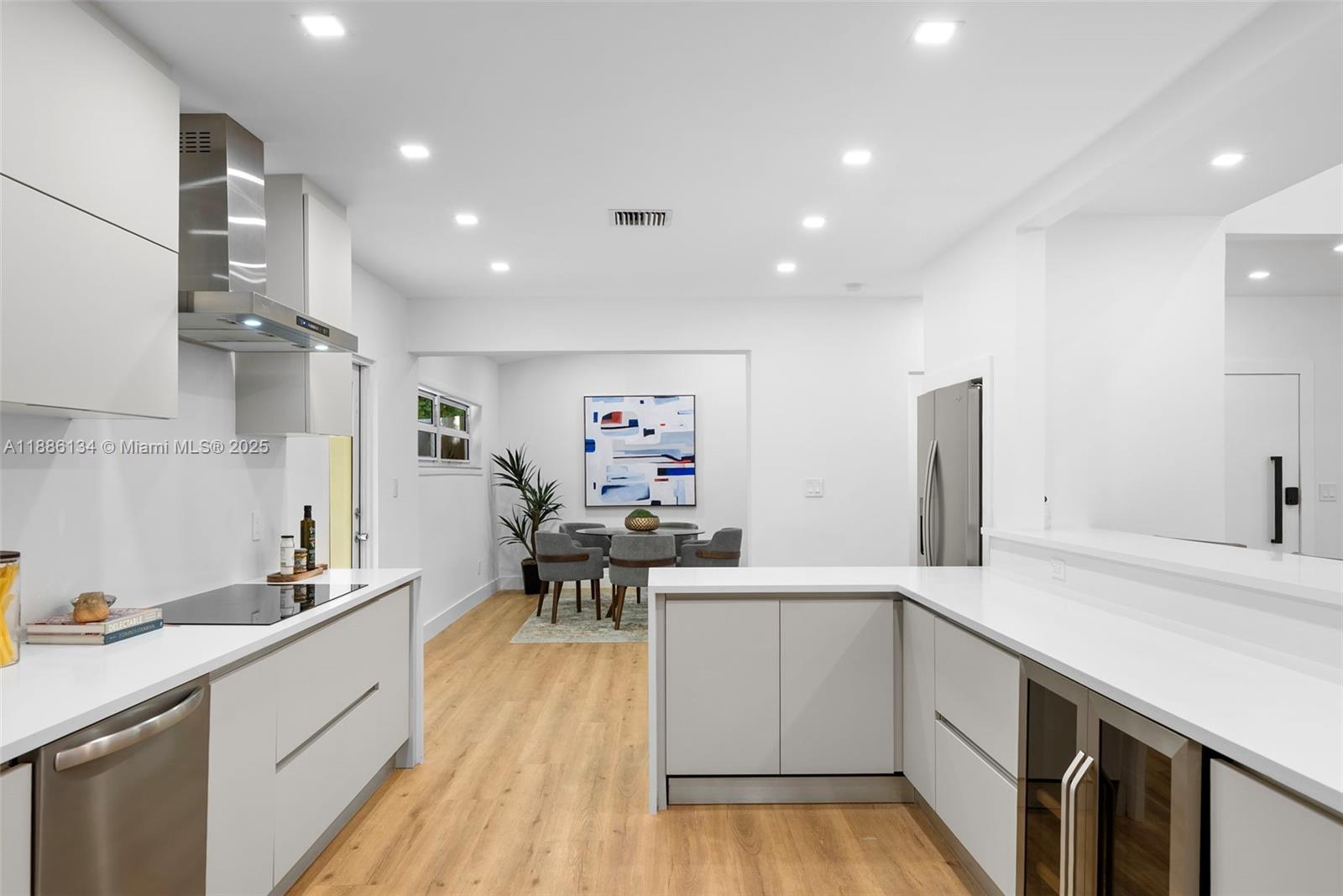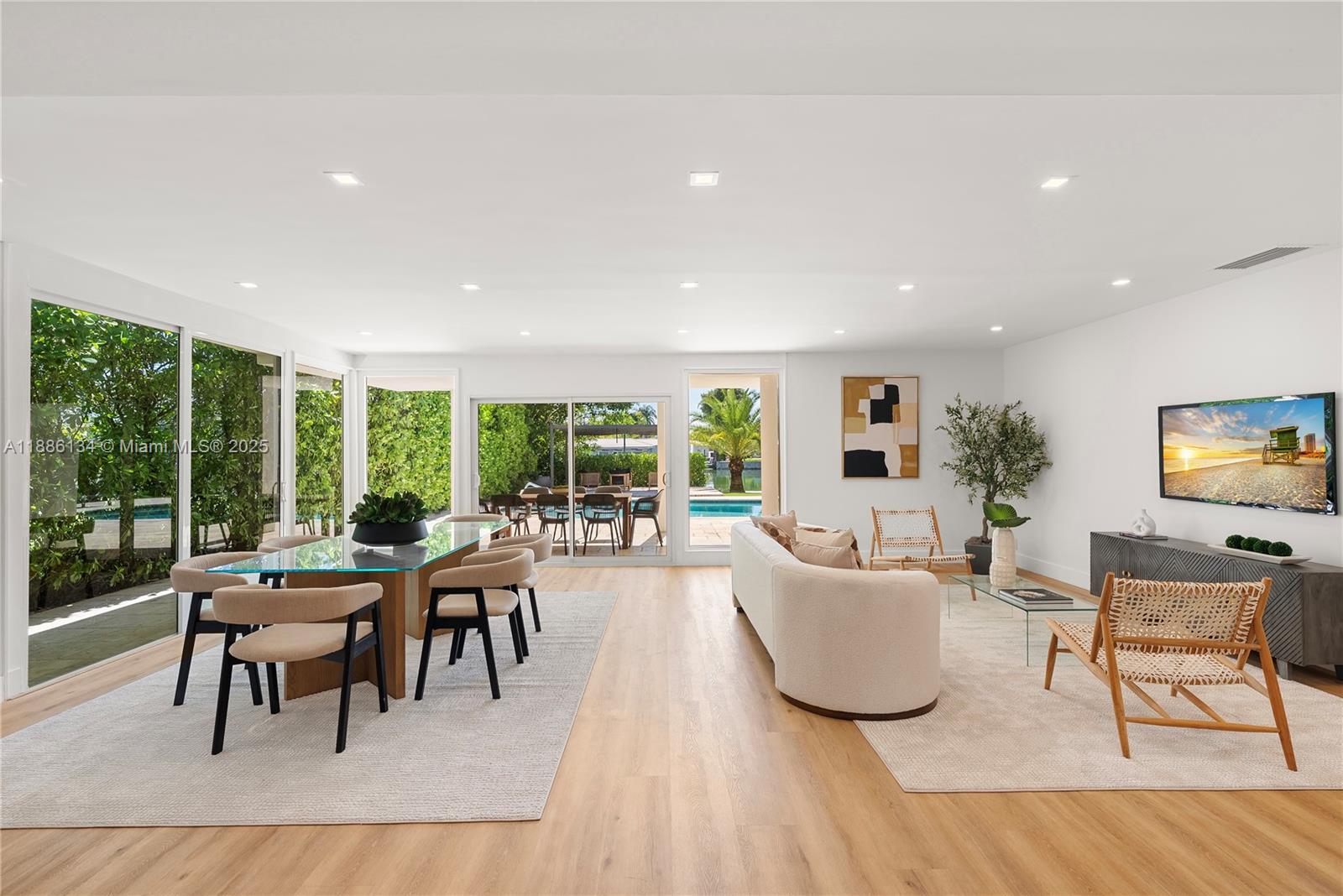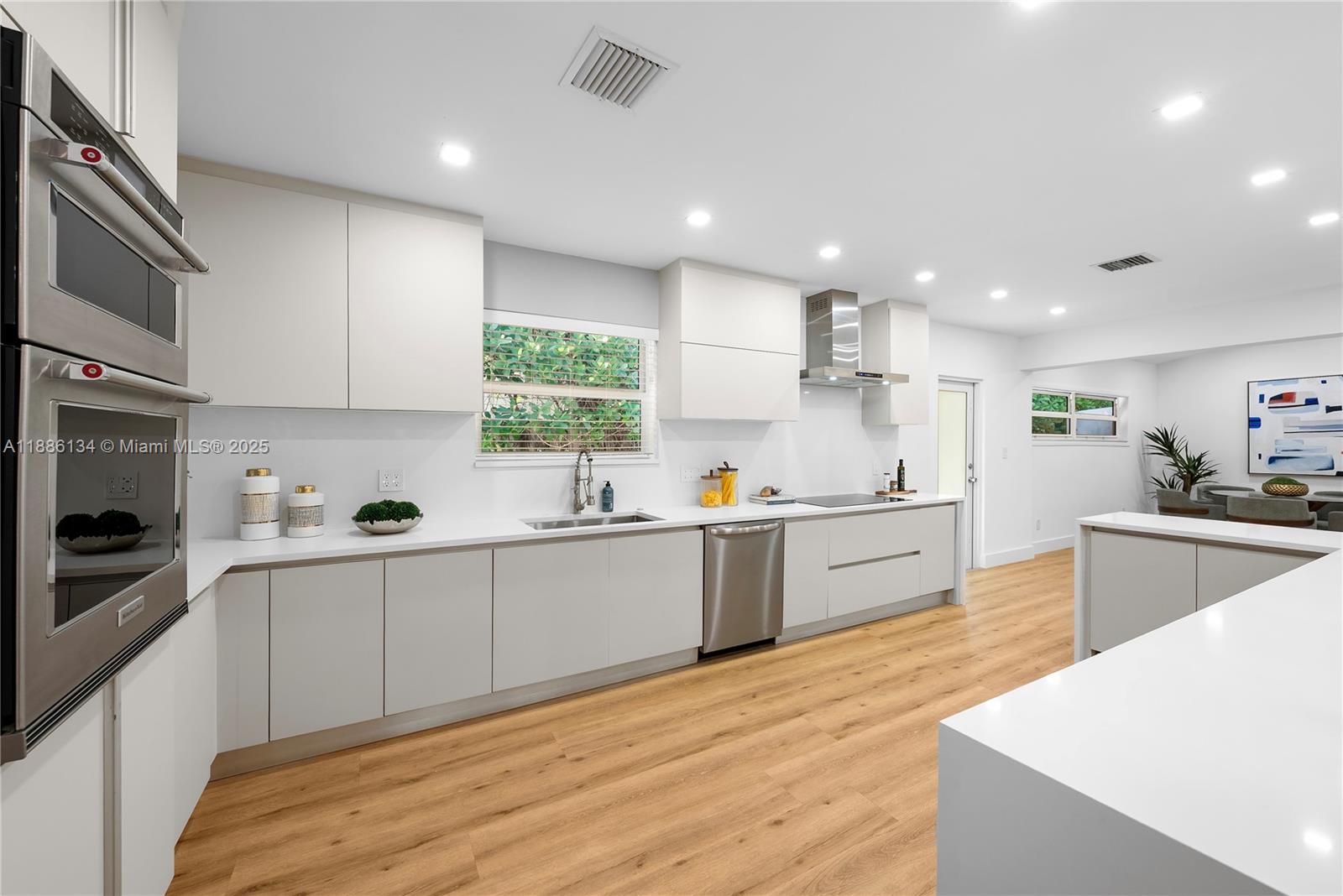 Exceptional fully renovated waterfront residence located on the exclusive gated island of Normandy Shores.This 4-bed 3-bath home combines elegant design with modern comfort, featuring a stunning open floor plan ideal for entertaining. Soaring 15ft vaulted ceilings in dining area, while the expansive, updated kitchen includes a breakfast area/family room, perfect for everyday living. Primary suite offers his/hers closets and a serene, spa-like bathroom. With 3,248 sqft of luxurious living space set on an 11,050 sq ft lot. This property offers 65FT of waterfront with access to Biscayne Bay. Best priced waterfront home in Normandy Shores! The Normandy Shores island offers world-class amenities, including an 18-hole golf course, tennis, Basketball & 24H gated security with on-site attendants