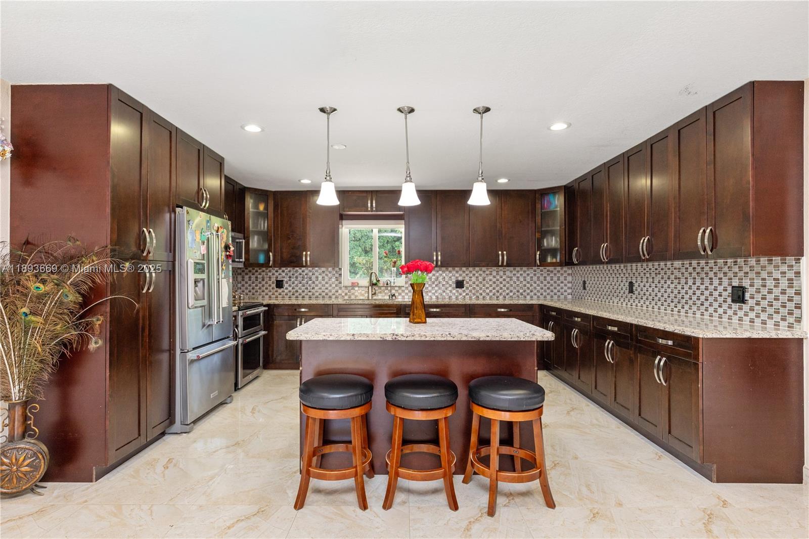 Redlands Farmhouse Oasis on 1.25 Acres — Elegance Meets Country Freedom. Welcome to your private Redlands retreat — a stunning 3-bed, 3-bath farmhouse on 1.25 acres of lush land. The freshly painted exterior, red metal roof, and green landscape invite you into an open, elegant home featuring luxury marble flooring, impact windows, and a gourmet kitchen with wood cabinetry, granite counters, and a large island. All bathrooms are renovated with glass showers and modern tilework. Outdoors, enjoy a covered patio with wood beams, fenced enclosures, chicken coops, and 20+ fruit trees (mango, avocado, citrus). Includes 2-car garage, 10+ car driveway, and RV/boat space — a perfect blend of style, comfort, and countryside charm. Very east to Show!