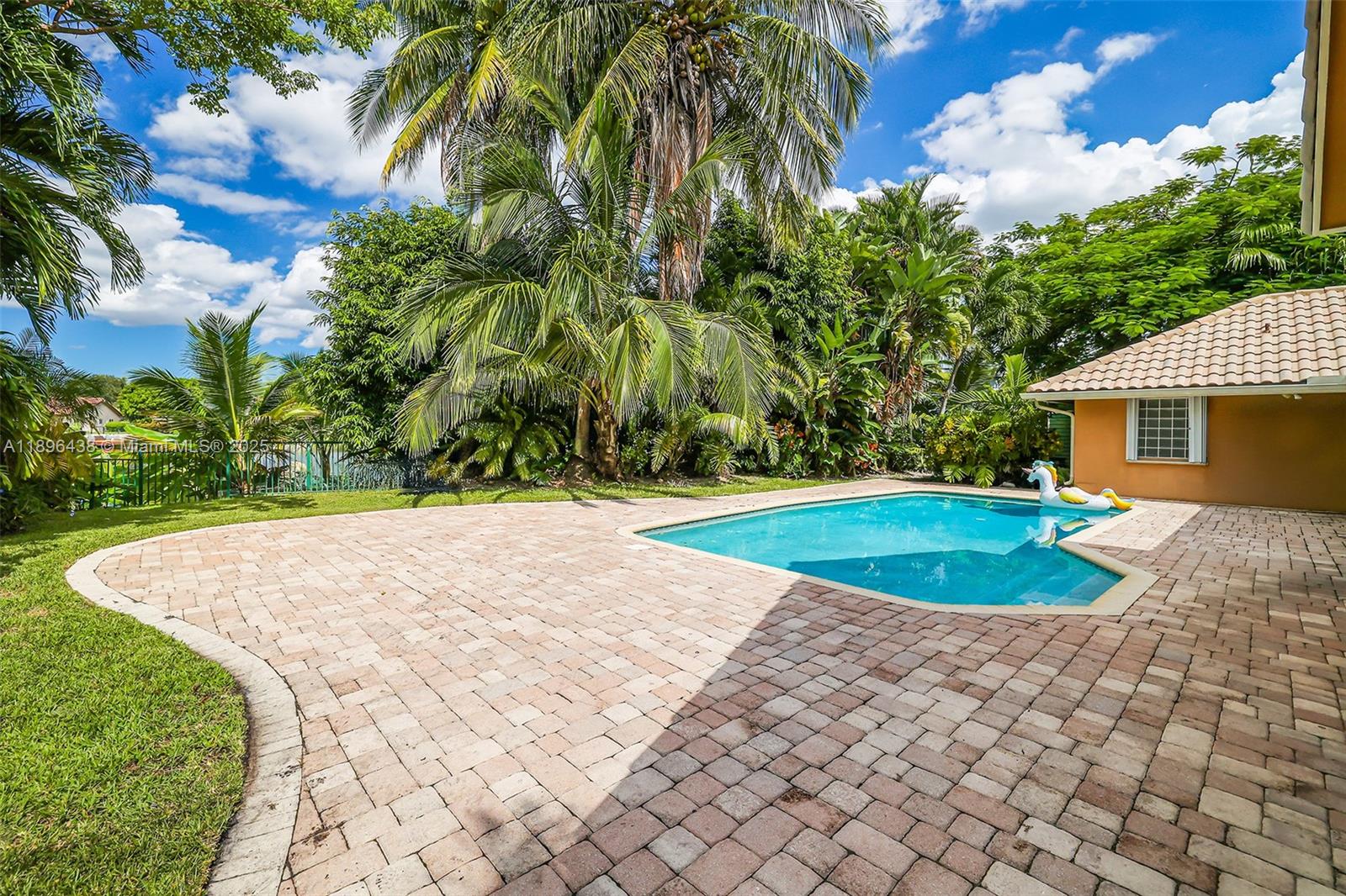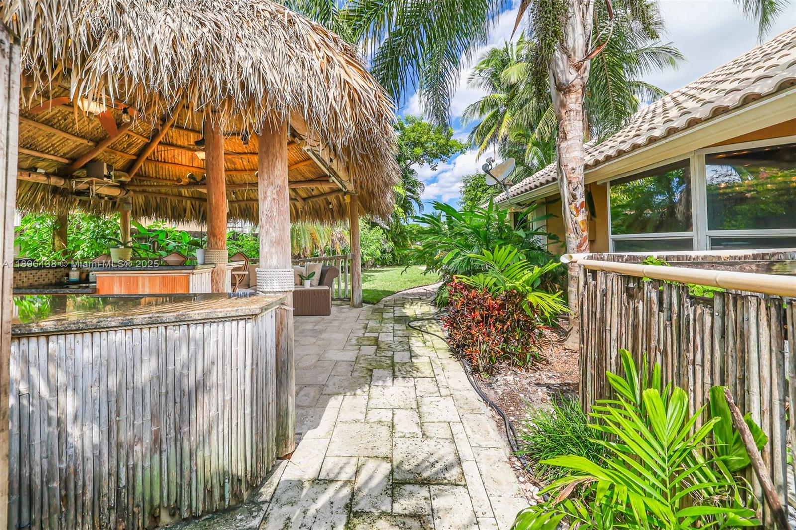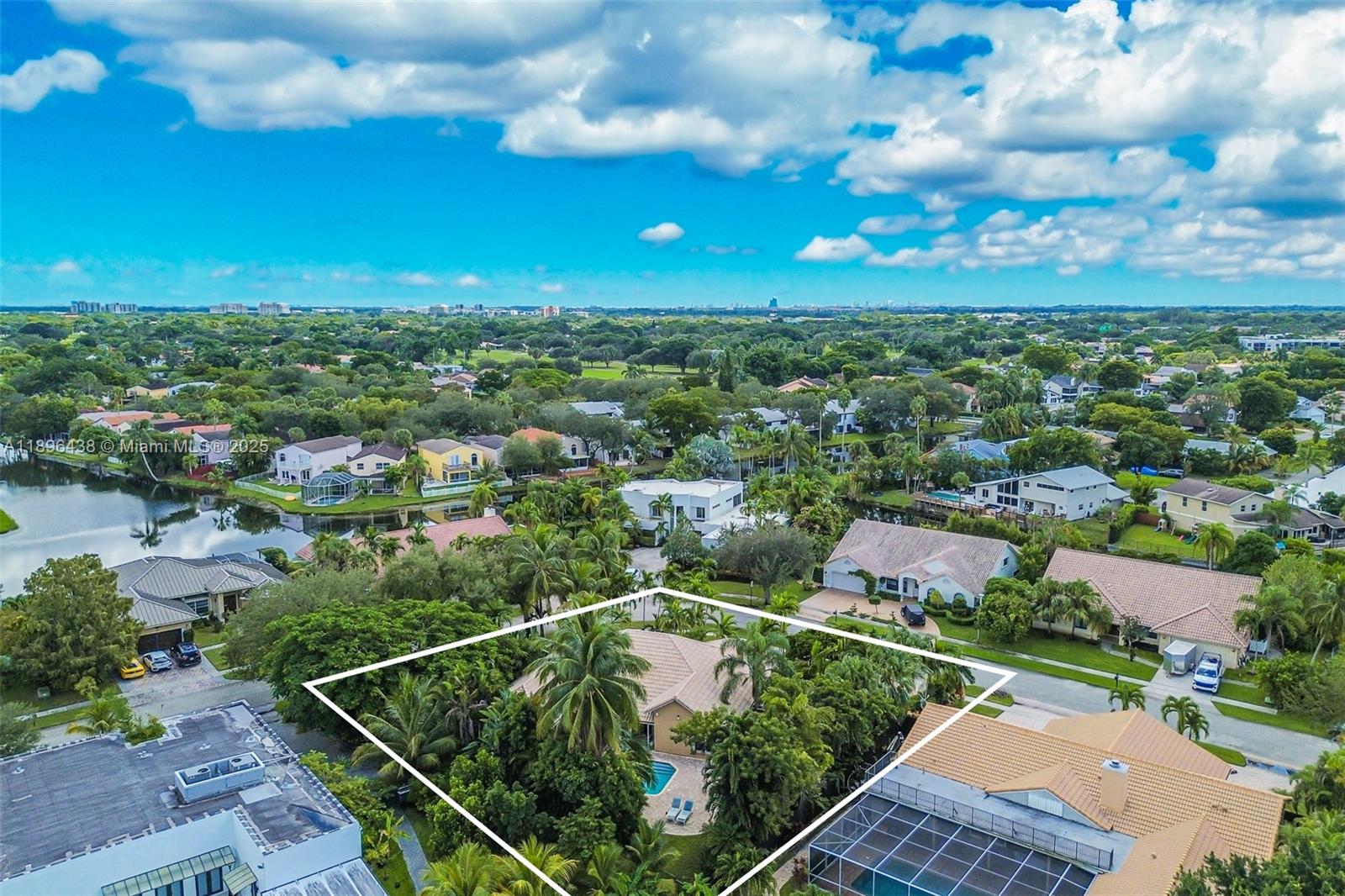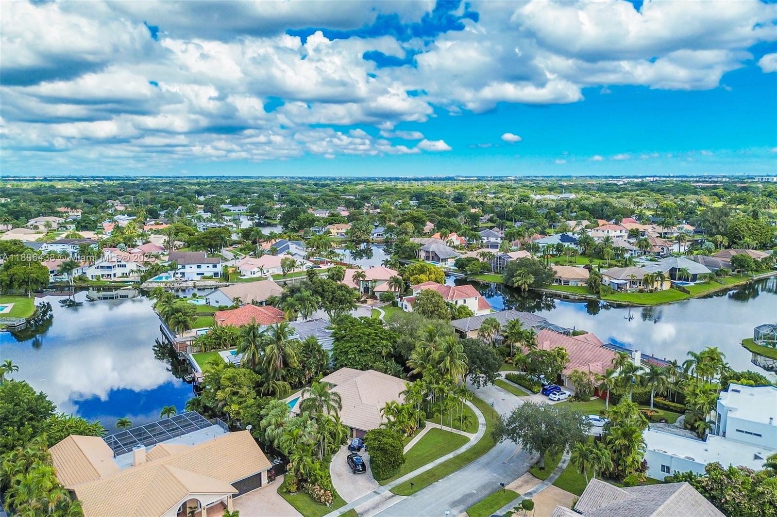 Beautifully updated 4 bedroom 2.5 bath home located in the highly desired Jacaranda community of Plantation on an oversized corner cul-de-sac lot w/ peaceful lake views. This elegant residence features travertine floors throughout the main living areas and engineered hardwood floors in 3 bedrooms + high ceilings open layout w/ spacious living and dining areas. The gourmet kitchen offers 48" refrigerator double ovens large center island wine cooler, abundant cabinetry ideal for cooking & entertaining. The split floor plan provides privacy with a relaxing primary suite. Step outside to your private tropical retreat with covered patio tiki hut sparkling pool fenced yard half court basketball & lush landscaping creating the perfect outdoor lifestyle for family fun & entertaining on the water.
