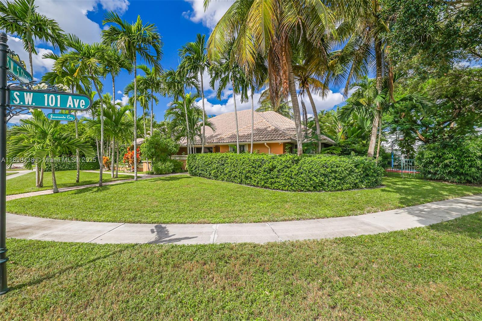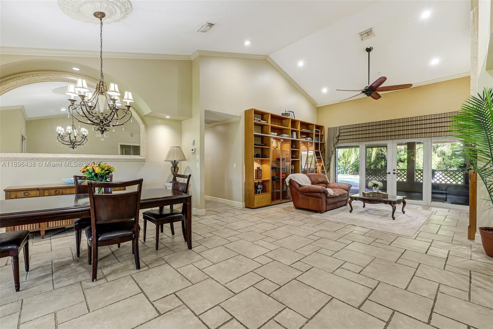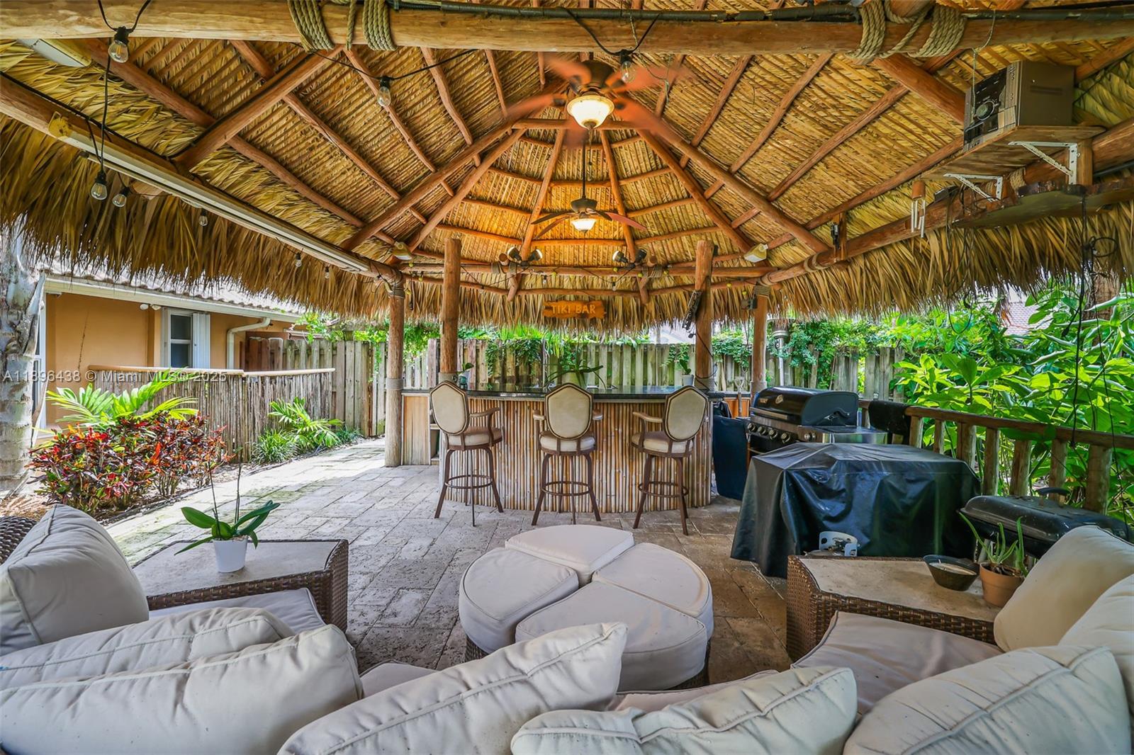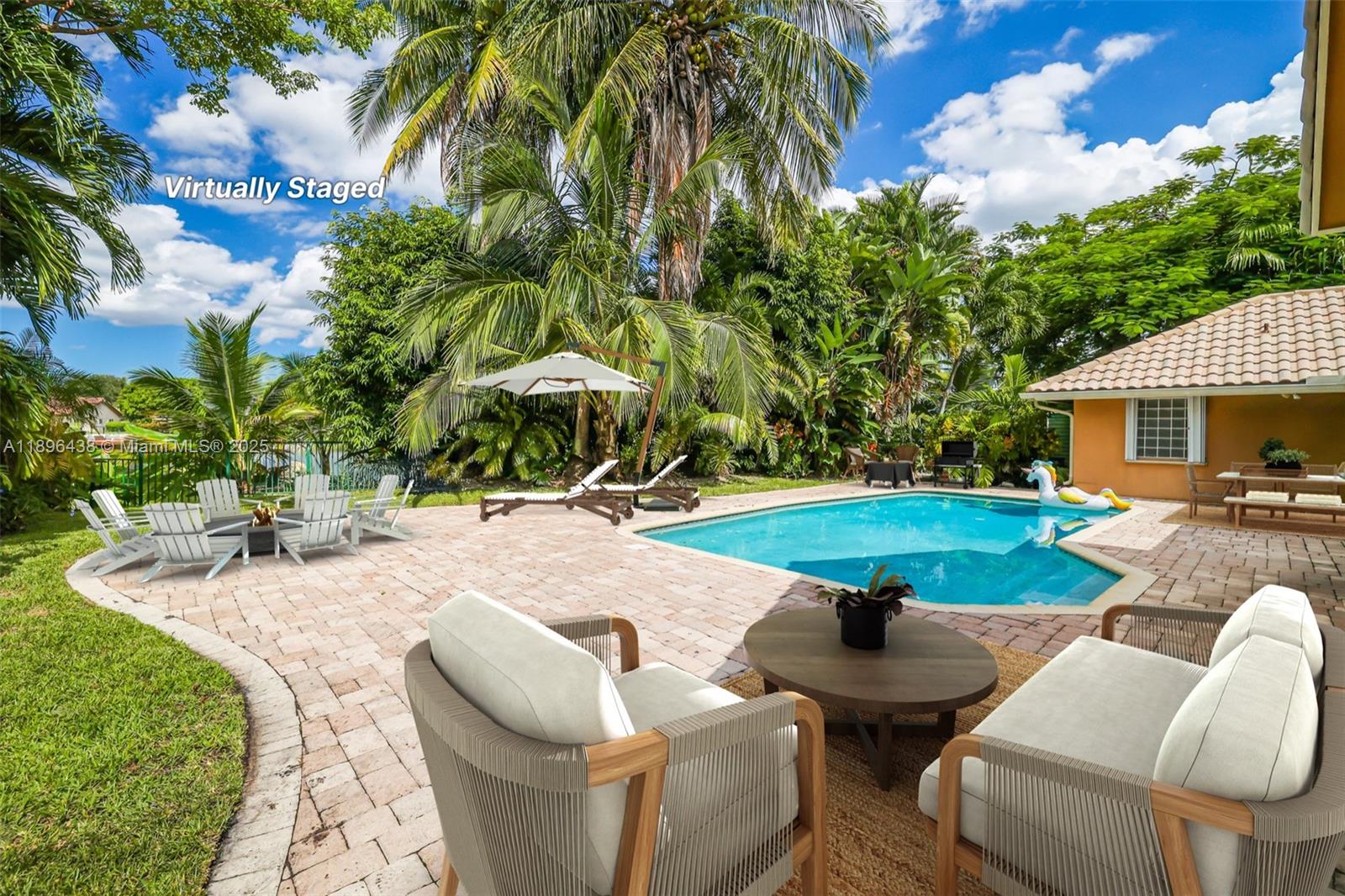 Beautifully updated 4 bedroom 2.5 bath home located in the highly desired Jacaranda community of Plantation on an oversized corner cul-de-sac lot w/ peaceful lake views. This elegant residence features travertine floors throughout the main living areas and engineered hardwood floors in 3 bedrooms + high ceilings open layout w/ spacious living and dining areas. The gourmet kitchen offers 48" refrigerator double ovens large center island wine cooler, abundant cabinetry ideal for cooking & entertaining. The split floor plan provides privacy with a relaxing primary suite. Step outside to your private tropical retreat with covered patio tiki hut sparkling pool fenced yard half court basketball & lush landscaping creating the perfect outdoor lifestyle for family fun & entertaining on the water.