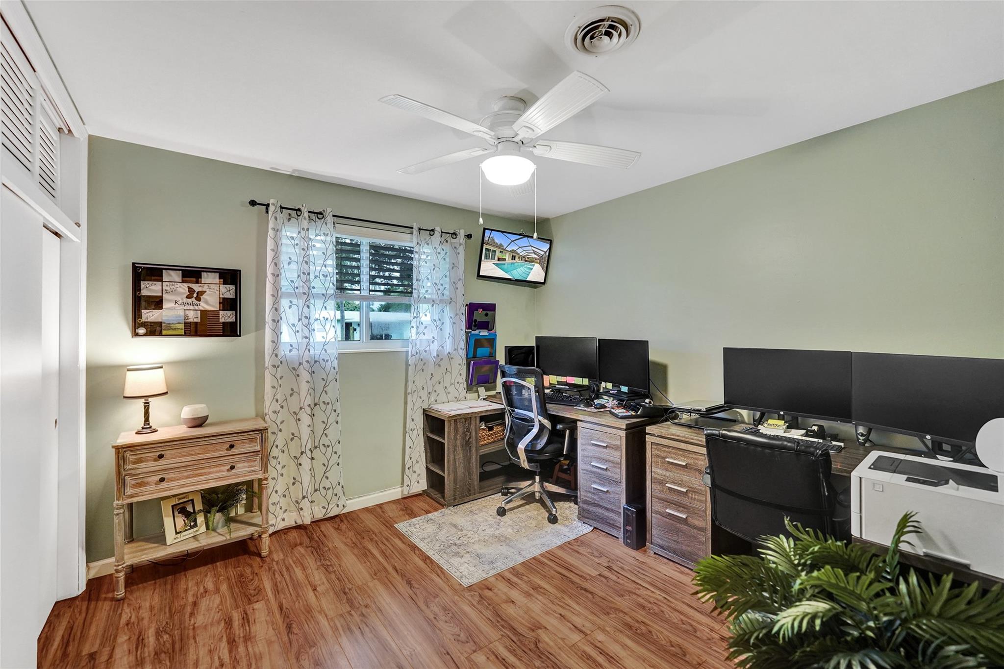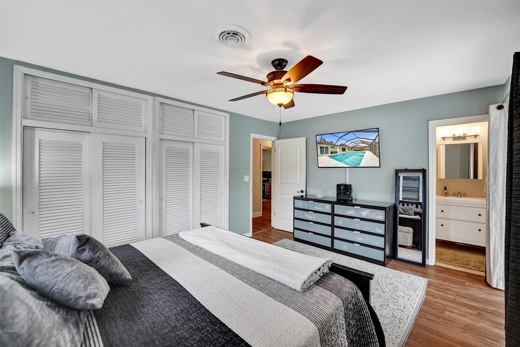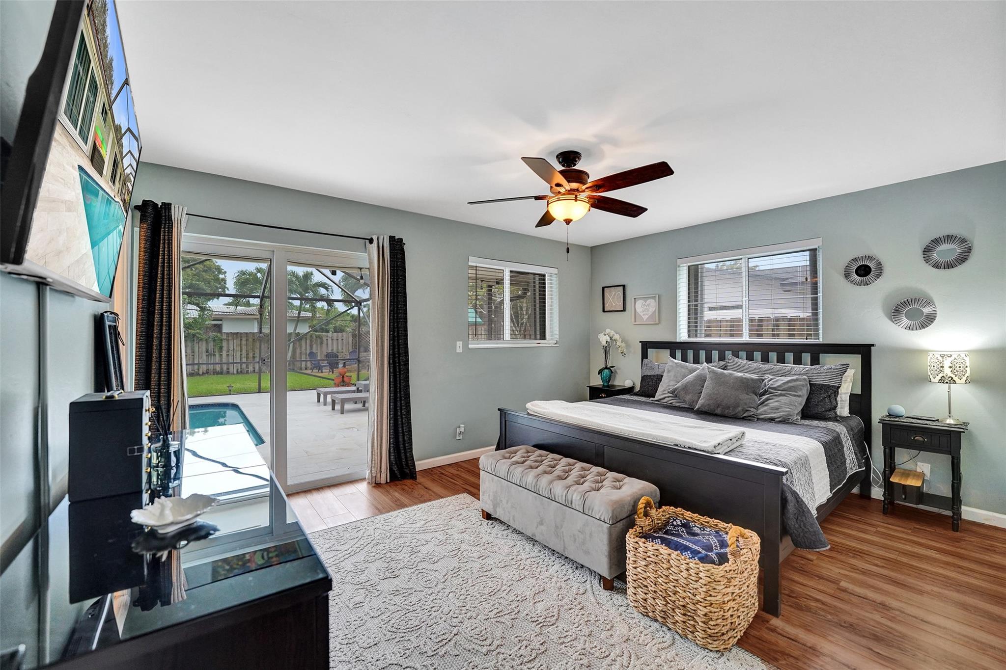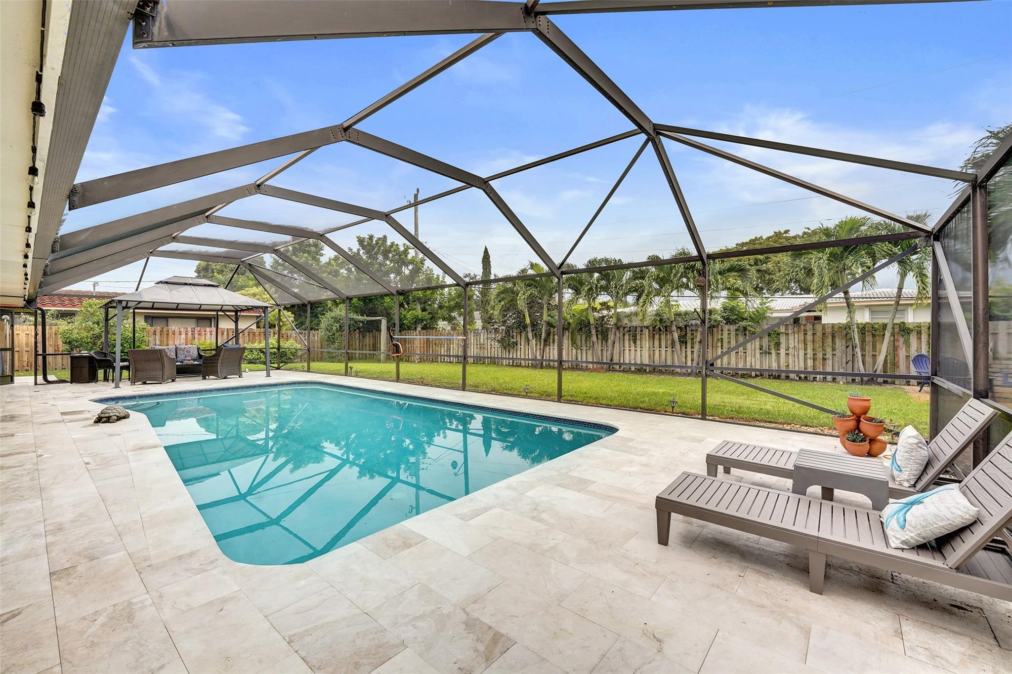 Step inside this exceptionally well-maintained 3BR/2BA contemporary home and fall in love with its open, airy feel and stylish updates. High-quality laminate wood plank flooring complements the plantation shutters and fully-applianced kitchen with granite counters and generous cabinetry. The primary en-suite offers a modern bath with walk-in shower, while the secondary bedrooms are comfortably sized, and guest bath features double sinks and tub. Enjoy peace of mind with impact windows, doors, accordion shutters and a generator-ready connection. The backyard oasis invites you to relax by the newly renovated saltwater pool or gather around the fire pit. With a screened patio, circular drive, two-car garage and neutral tones - this home truly has it all. You will want to check it out!
