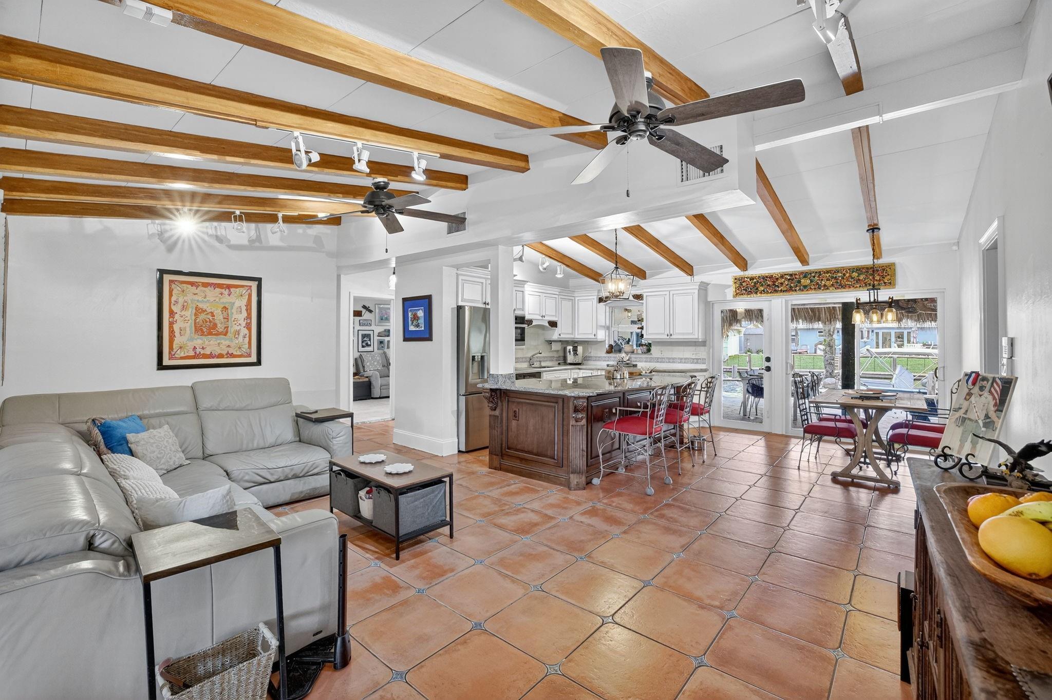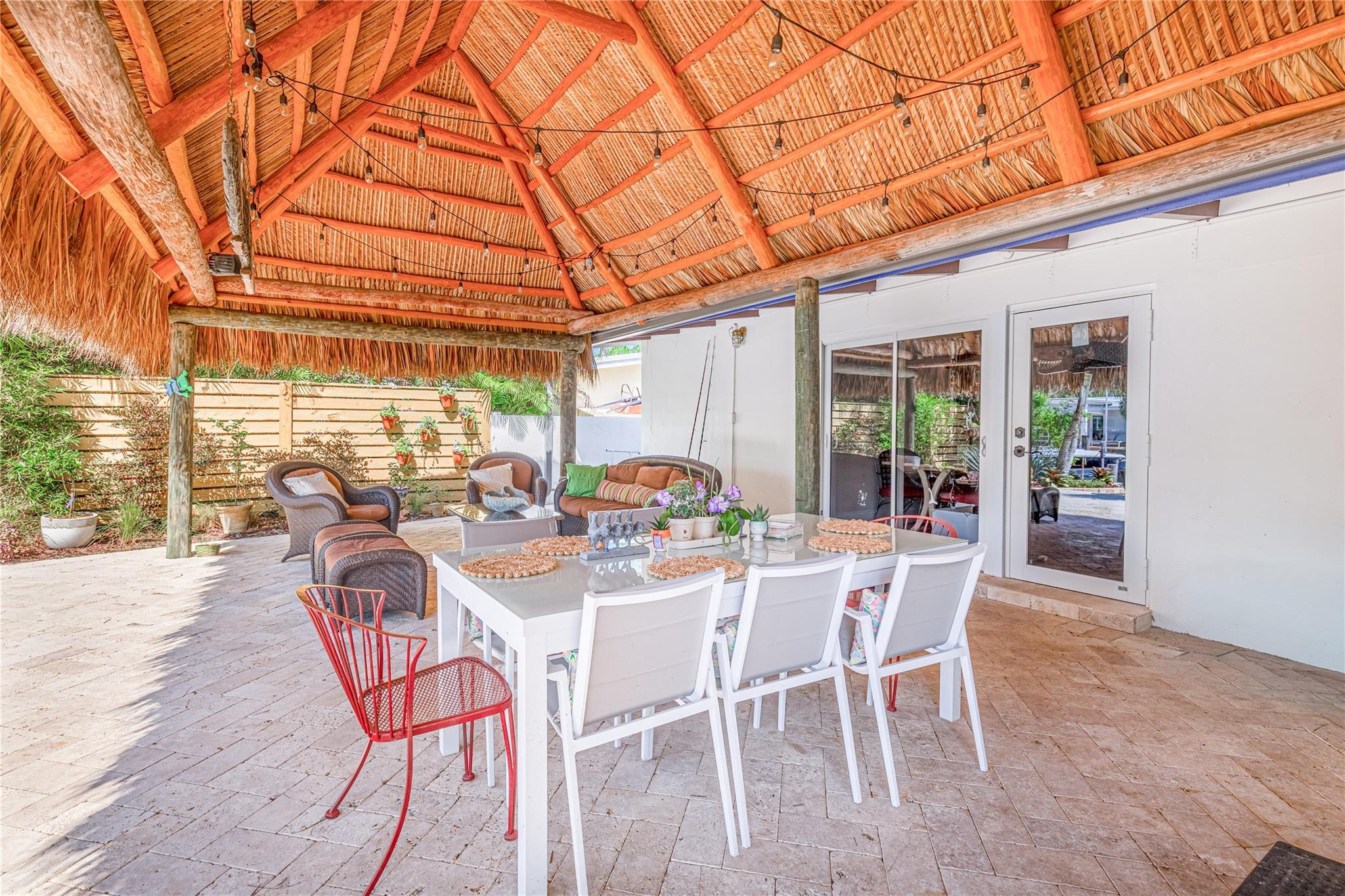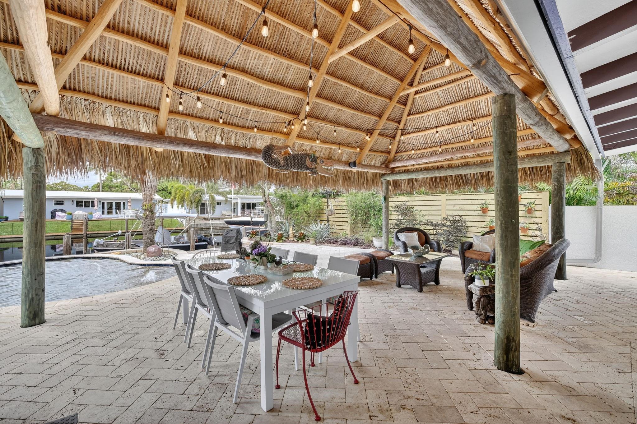 Relax by the sparkling pool, unwind under the large tiki hut, entertain on the waterfront travertine patio-True South Florida living at its best. Inside enjoy a bright, open layout w/ vaulted ceilings & a Chef’s Kitchen w/ a Custom Island. 3 bedrooms & 2 new designer baths, Guest bath w/ zero entry wet-room. Primary bath finished in limestone w/ a new soaking tub. Recent 240 sq ft addition expands the back bedroom & captures wide water views —Outside- horticulturist-designed, tropical landscaping provides beauty, privacy & zero-scape yard Located in highly desirable Shady Banks, walk to 2 neighborhood parks. Minutes to downtown, Las Olas, beaches, waterfront dining & the airport, Turnkey, move-in ready, this deepwater pool home delivers a rare combination of lifestyle, location,& luxury.