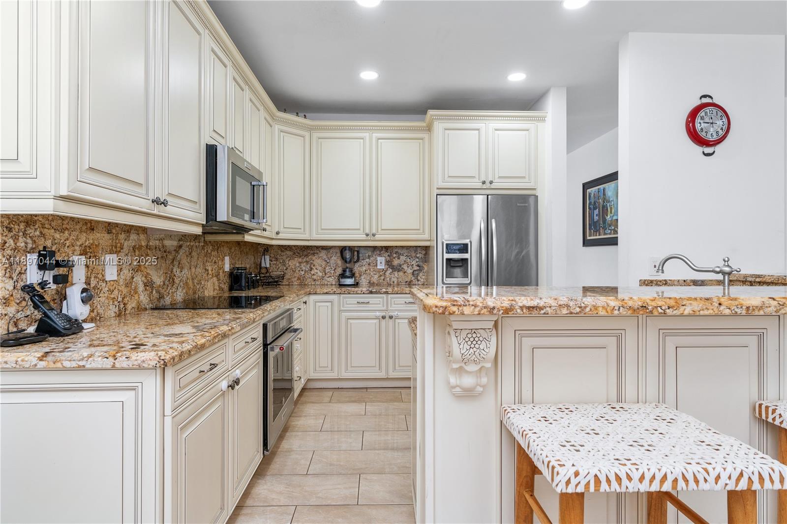 Discover the best value in Weston! Situated on a spacious pie-shaped lot, this partially updated home offers a generous backyard space, perfect for outdoor living and entertaining. The home features elegant porcelain tile throughout, providing a sleek and modern feel. Enjoy a remodeled bathroom (2022) with stylish porcelain tiles, and a kitchen that boasts granite countertops, 42” wood cabinets, and ample storage. All windows are adorned with beautiful plantation shutters, adding a touch of sophistication. The serene pool area offers a private oasis for relaxation. Located in the highly sought-after community of The Ridges, this home blends comfort, style, and convenience, with easy access to major highways and top-rated schools. All at the most affordable price in the area.