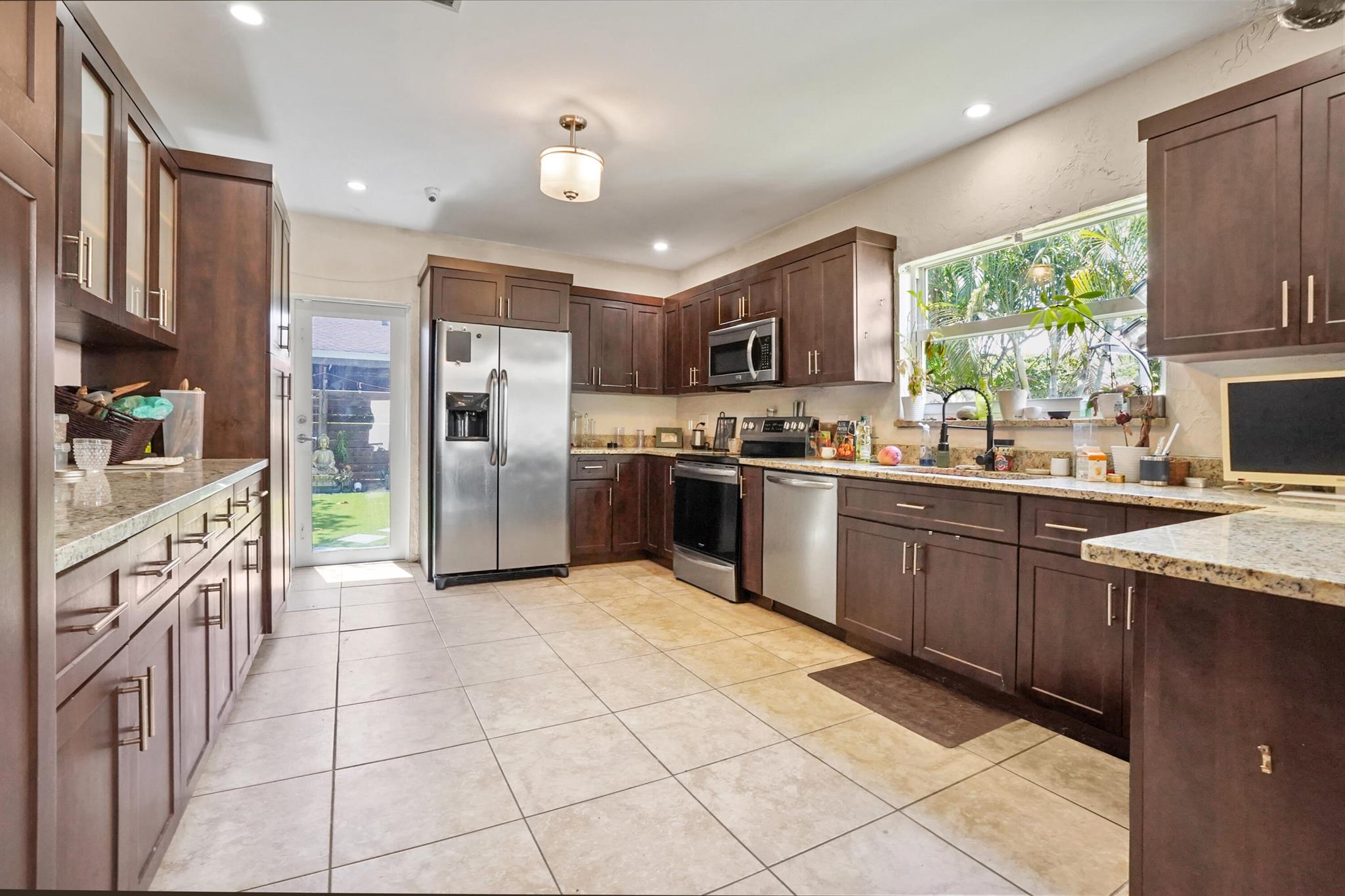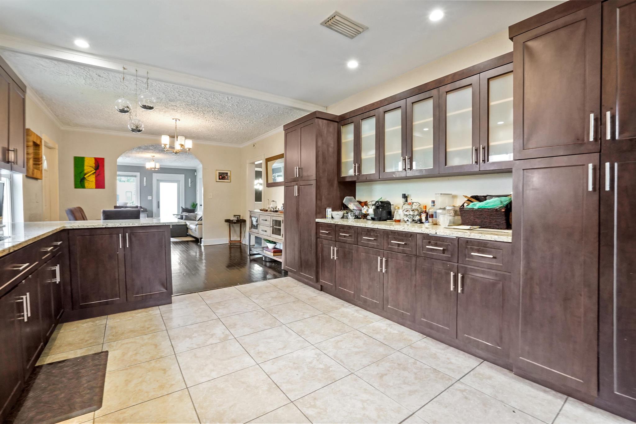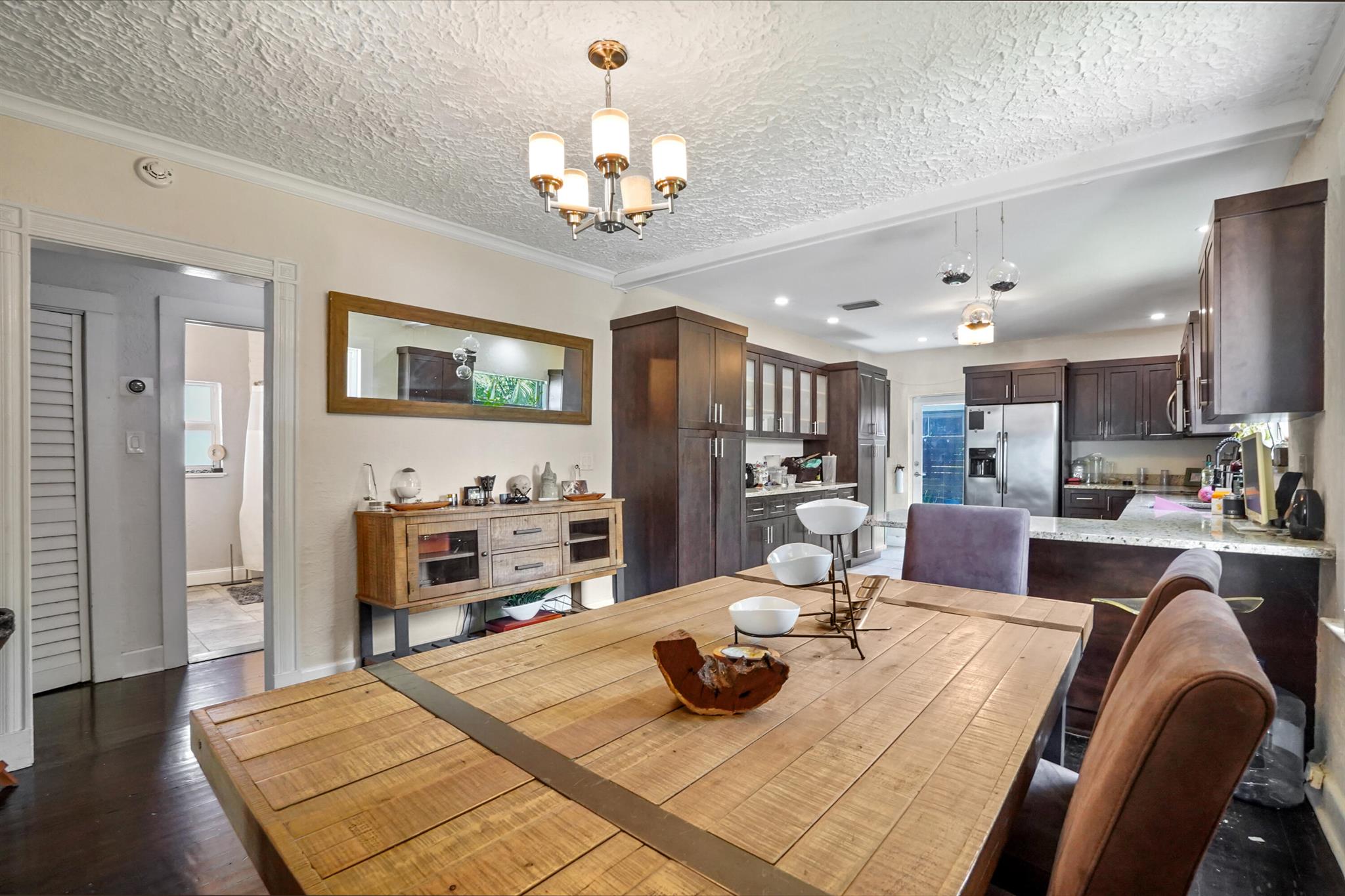 Step into this enchanting home, where beachy chic seamlessly blends with historic elegance. Located on Garden Avenue, this residence offers a spacious open kitchen featuring granite countertops and stainless steel appliances. The airy flow from the living to the dining and kitchen areas creates an inviting atmosphere perfect for both entertaining and everyday living. New AC - 2023. Impact windows and doors throughout. The home boasts restored dark hardwood floors, graceful arches, and a stately mantle, capturing the essence of Spanish style. The bright and cheerful interior adds a modern touch to the classic design. Each bedroom is equipped with lights and fans with remote controls for added convenience.
