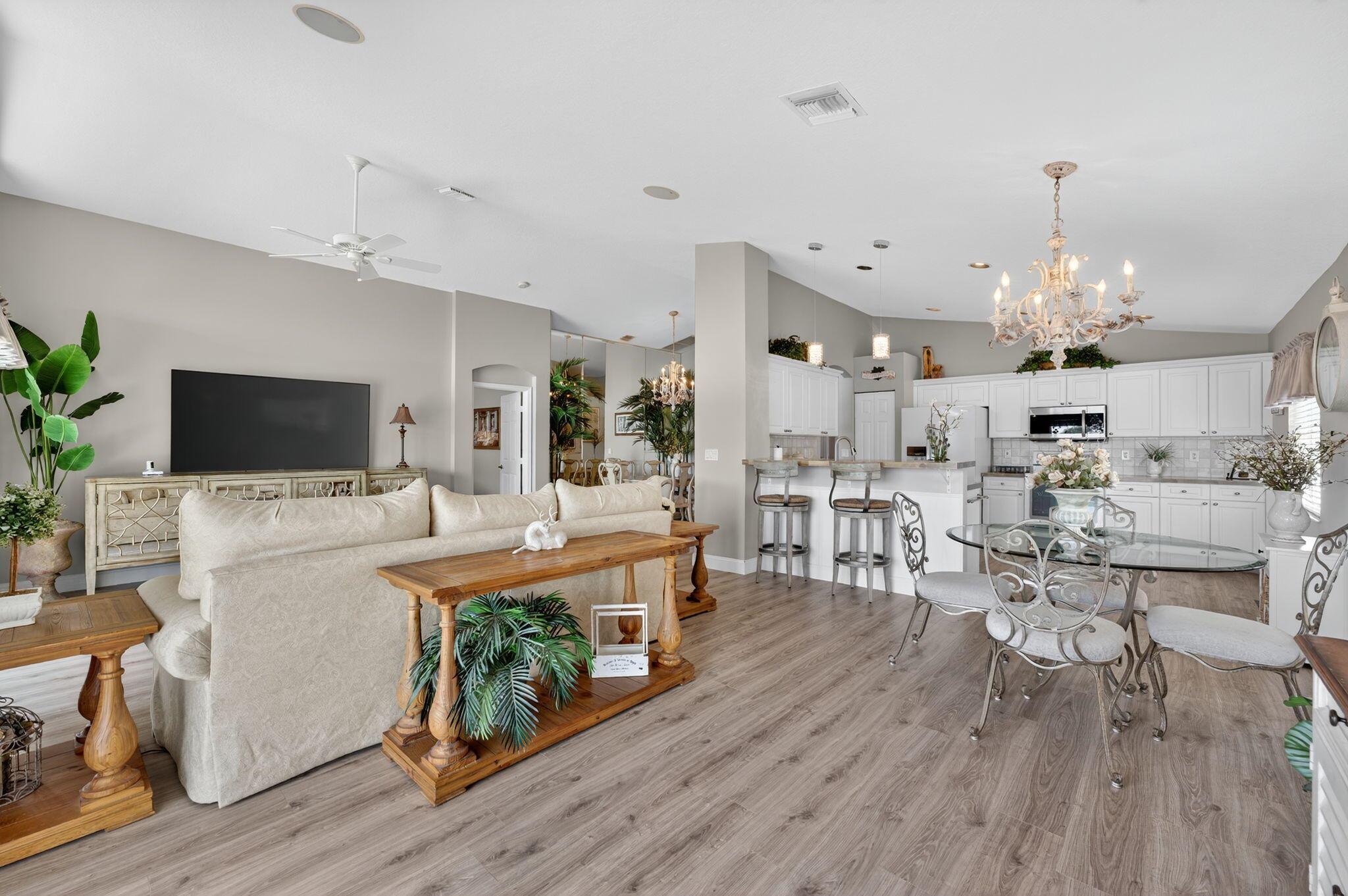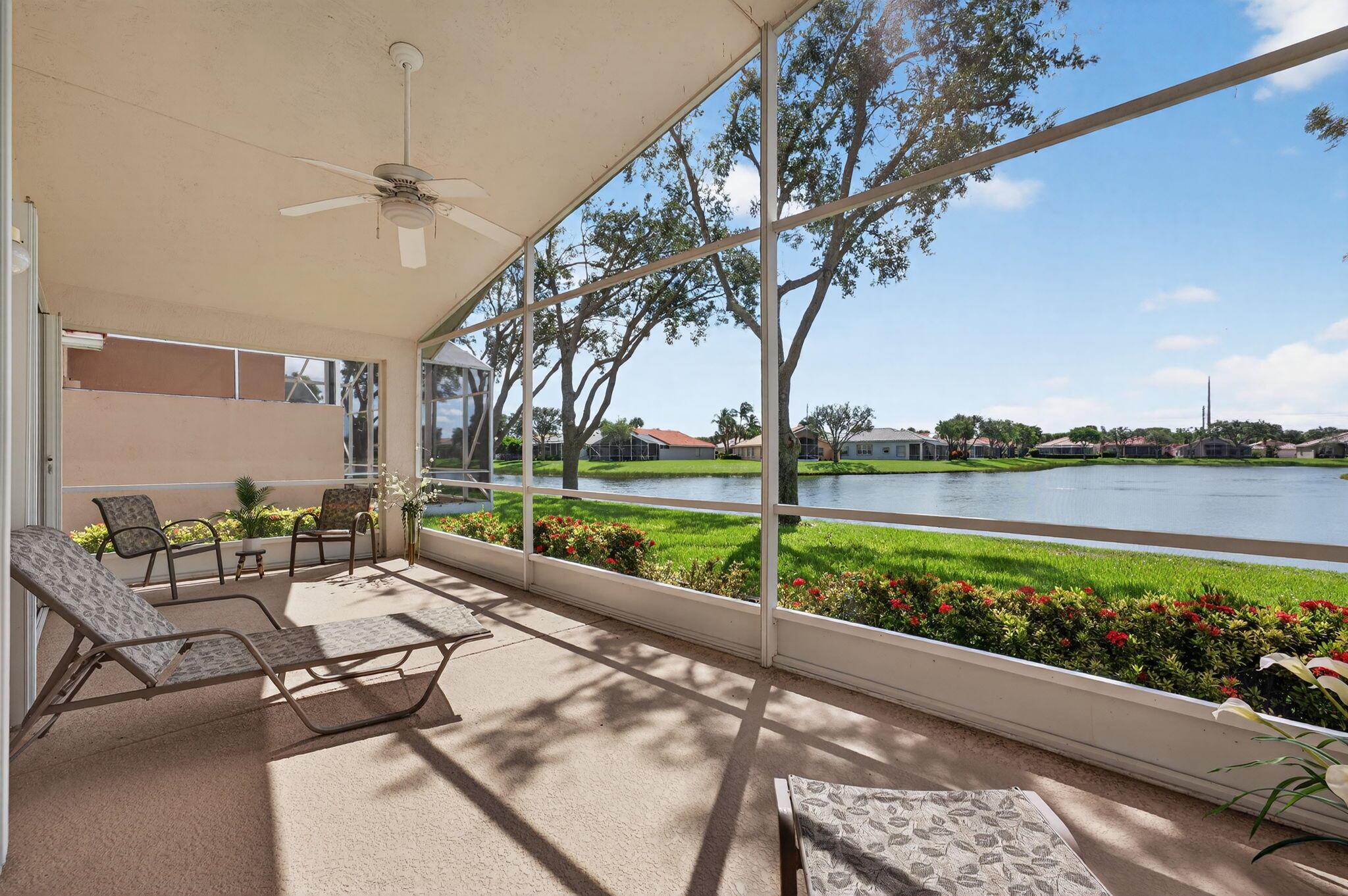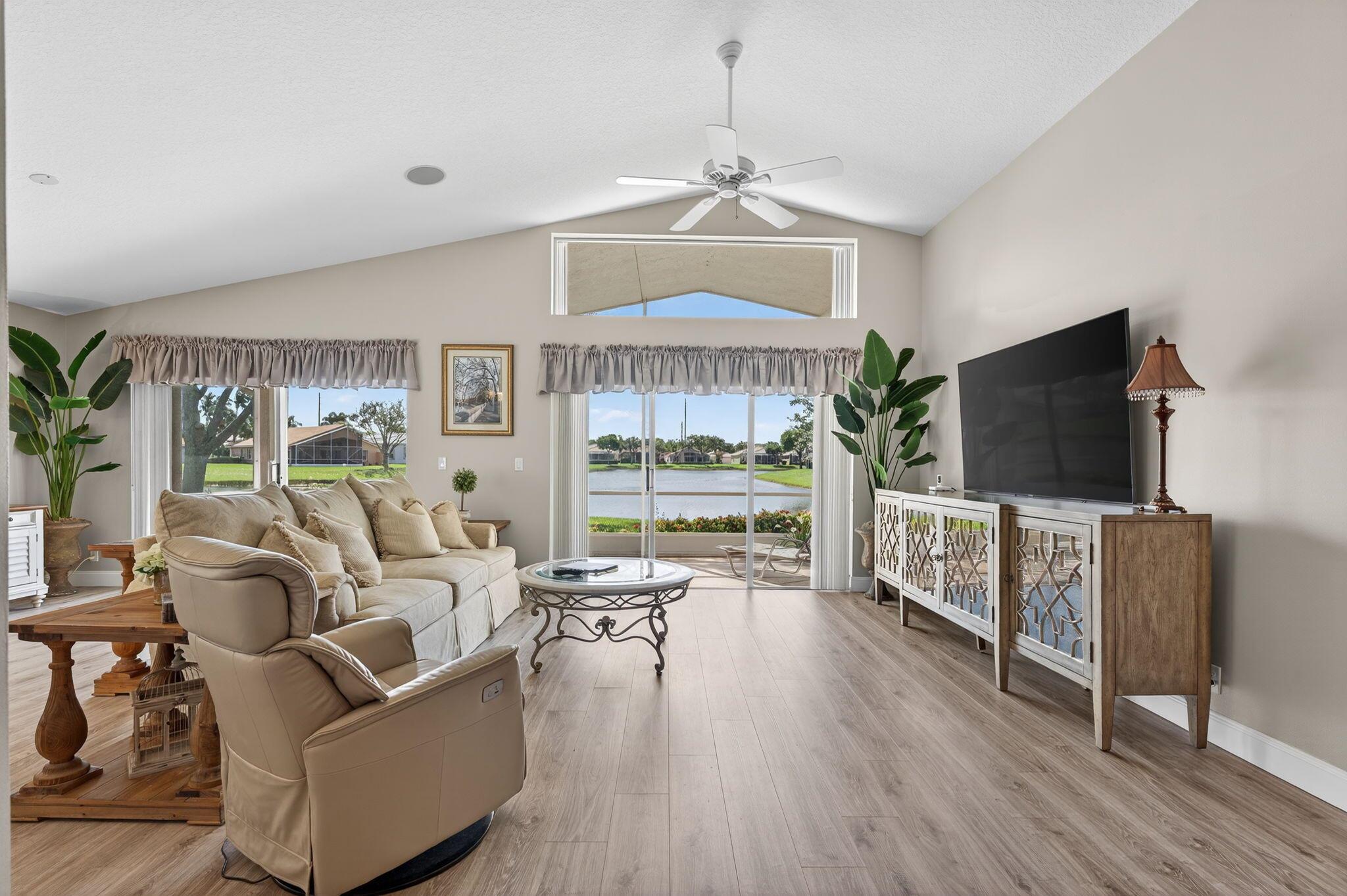 Welcome to Ponte Vecchio - A Highly Sought-After 55+ Active Adult Community of 647 homes, in Boynton Beach! Come enjoy the lifestyle. WATCH THE VIDEO attached, to get a true sense of living the dream. What are you waiting for? Step into this beautifully maintained LONG Lake Este model home, featuring a desirable open-concept great room floor plan and a true third bedroom. This ''WOW'' home is move-in ready and furnishings are negotiable. Enjoy LONG Lake views from the open kitchen, relaxing in the spacious great room or in primary suite.The screened-in patio offers ample space for entertaining and highlights the bright Southern exposure with stunning water views. This home features a split-bedroom layout with 2 full baths. Luxury vinyl wood like floors are throughout