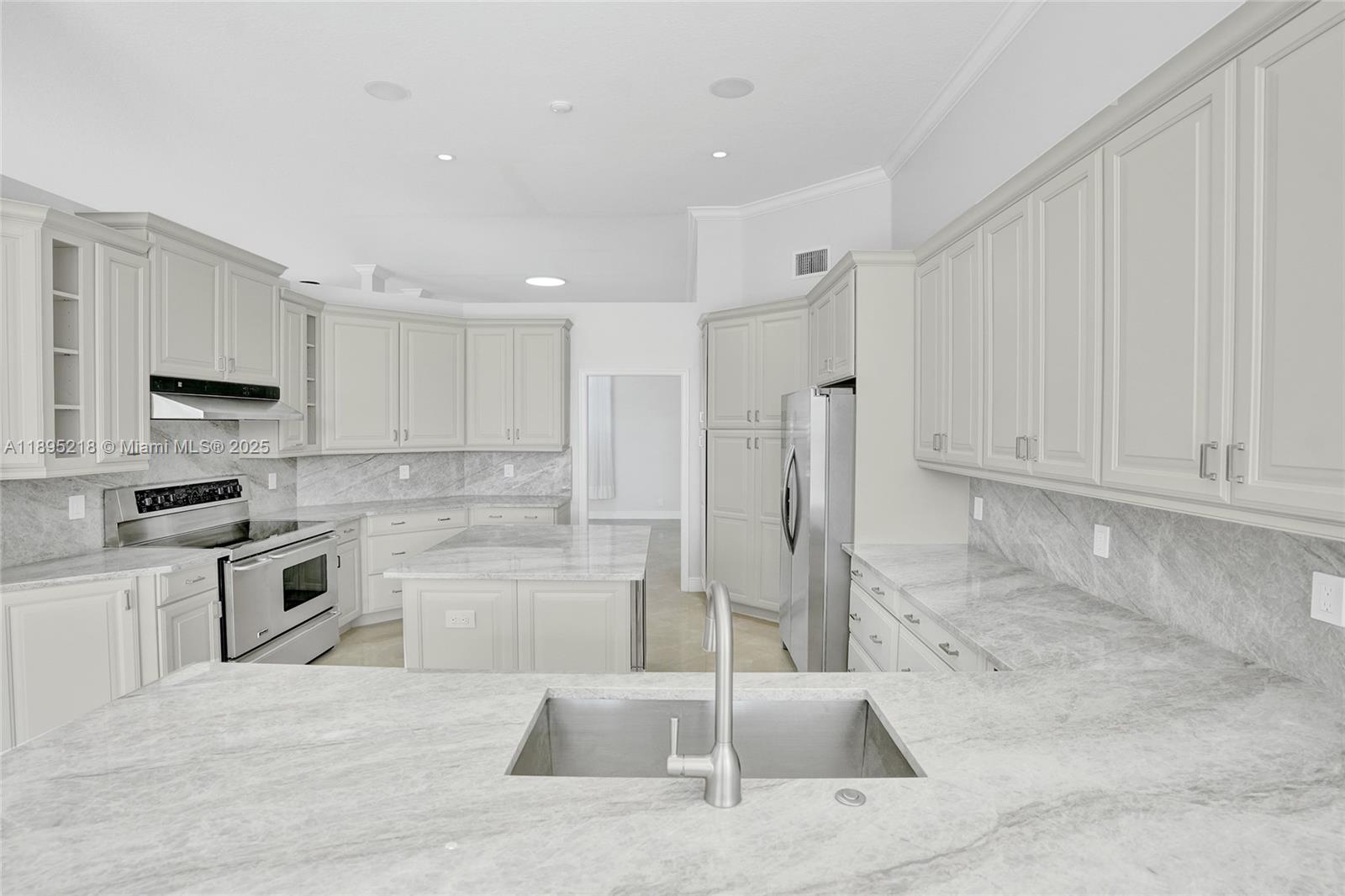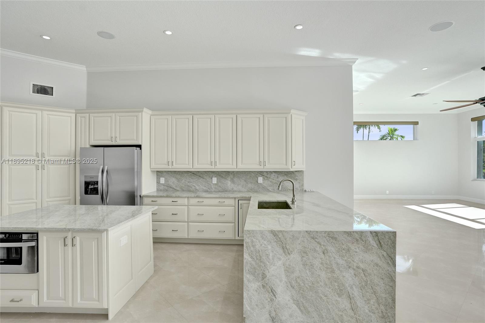Spectacular one story completely remodeled home in the rarely available exclusive community of Edgewater at Weston Hills Country Club. This gorgeous home is situated on a peaceful cul-de-sac lot with a nearby community park. Breathtaking Panoramic Lakeview! Features include 4 Bedrooms plus office/den & 3.5 bathrooms. Beautifully remodeled kitchen with Taj Mahal quartzite. Spacious split bedroom floor plan with volume ceilings, luxury flooring throughout, redone and spacious family room, multi room high end audio system. New Screened POOL with water feature and Patio overlooking tranquil lake views! Newer Roof Impact Window and Doors, 3 car garage with built-in cabinetry, storage, epoxy flooring and 2 EV charging stations & A+ Schools. This is the home you have been waiting for!