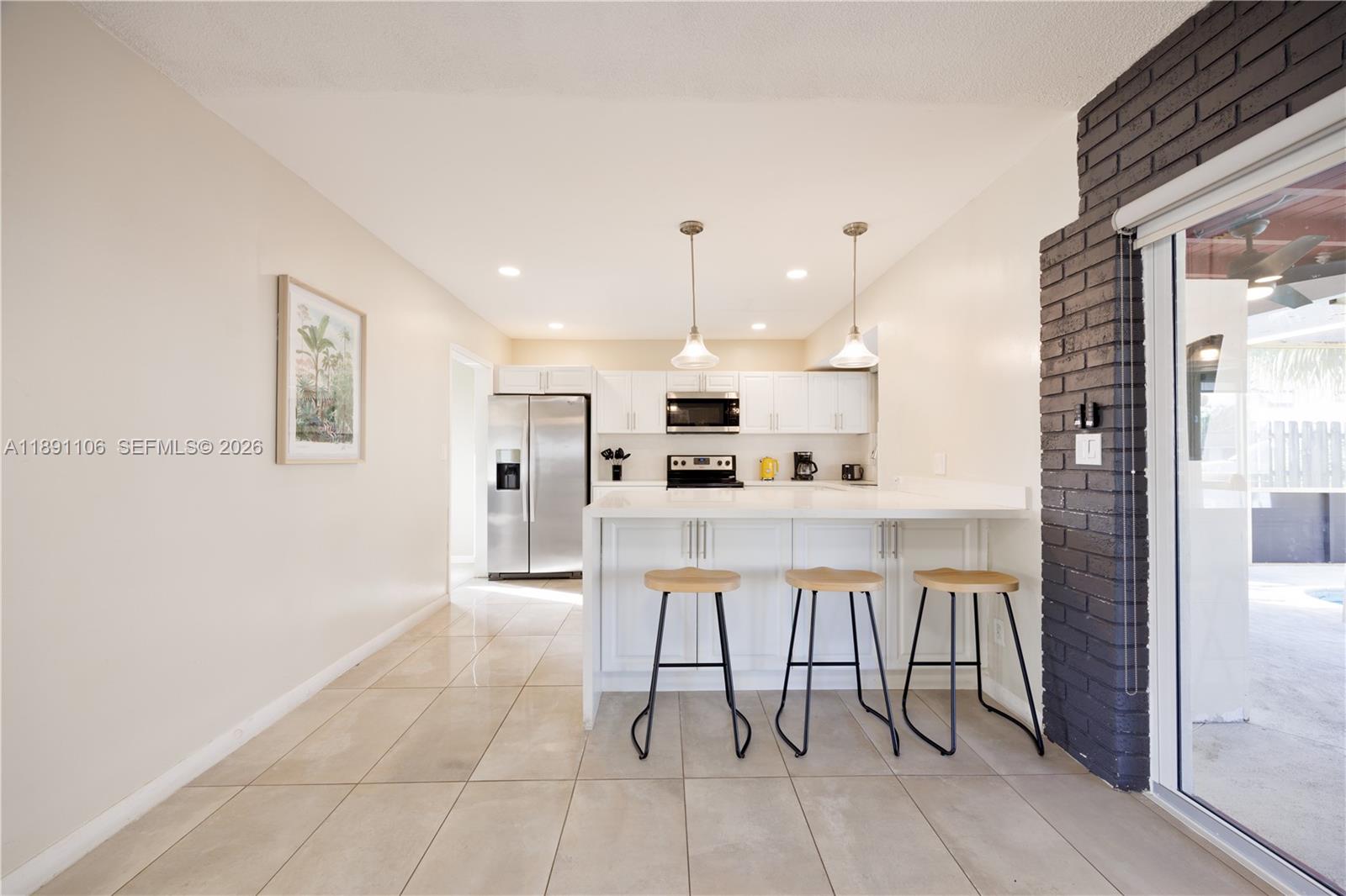 Welcome home! This beautiful 3 bedroom 3 bath pool home is filled with natural light and modern touches throughout. The open layout features porcelain tile floors, impact windows and doors, and a bright kitchen with stainless steel appliances, quartz counter tops, and a cozy breakfast bar-great for family meals or morning coffee. You'll love the flexibility of the in-law quarter or guest room, complete with it's own bathroom and private entrance- perfect for visitors or extended family. Step outside and enjoy the sparkling pool and relaxing backyard, ideal for entertaining or unwinding after a long day. located close to shopping , restaurants, the hospital , and the airport! This home offers both comfort and convenience in one great package.