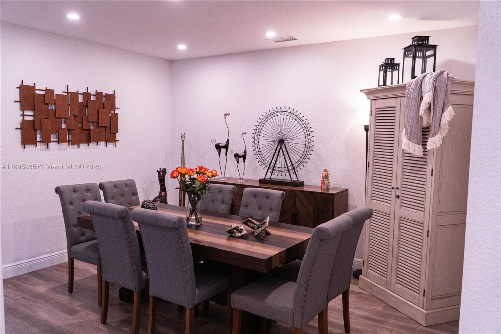 Welcome to this charming 3-bedroom, 2.5-bathroom home, featuring a converted garage currently used as a private office—ideal for remote work or a creative studio. The property offers a modern, low-maintenance backyard with artificial grass, perfect for outdoor relaxing and entertaining. The front entry showcases an impact glass door, adding both style and security. You’ll find two dedicated parking spaces right in front of the property, plus additional guest parking available for visitors. Located in a prime area near major highways, this home provides easy commuting access and is just minutes away from top-rated A-class schools, great restaurants, and lifestyle amenities. Move-in ready and perfectly positioned for comfort and convenience.
