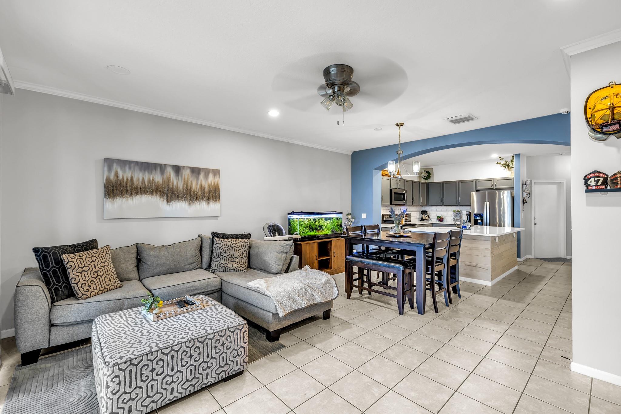 OPEN & BRIGHT, BEAUTIFUL TH WITH GARAGE IS PERFECT FOR A NEW COUPLE OR FAMILY. KITCHEN HAS BEEN UPDATED, OPEN CONCEPT WITH LARGE ISLAND, VAULTED CEILINGS & CROWN MOLDING. GREAT FOR ENTERTAINING. SCREENED REAR PORCH, WITH PAVERS AND PRIVACY FENCE. ALL TILE DOWNSTAIRS. STAIRS AND UPSTAIRS ARE WOOD LOOKING VINYL LAMINATE, GREAT DURABILITY AND CLEAN LOOK. LAUNDRY UPSTAIRS. OVERSIZED MASTER SUITE HAS 2 WALK-IN CLOSETS & WALK IN SHOWER IN MASTER BATH. 2ND BEDROOM IS SPACIOUS WITH A LARGE WALK-IN CLOSET. NEW A/C 2023, NEW WATER HEATER 2025. ACCORDIAN SHUTTERS THROUGHOUT. PRIME LOCATION & MOVE IN READY!