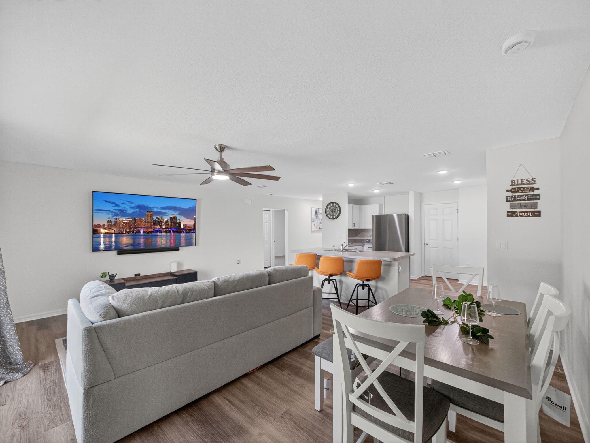 Why build and wait when you can step into this barely lived in new construction home! 2025 built and offers an impressive 4 bedrooms and 4 bathrooms, plus a versatile flex room that can serve as a den, office, formal dining area, or an additional bedroom. With 1,806 square feet of thoughtfully designed living space on a generous .28-acre lot, you'll have all the room you need. As you step inside, you'll immediately appreciate the open layout adorned with neutral colors and smooth walls, letting in an abundance of natural light. The spacious kitchen features stainless steel appliances, an island for additional prep space, and a cozy coffee bar perfect for those morning brews. The pantry provides ample storage, and the microwave has an outdoor vent hood.