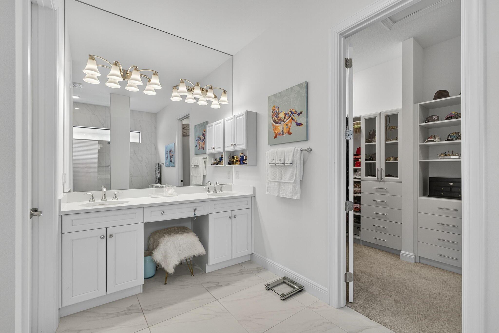 FINISHED IN 2023 - PALM BEACH floor plan with lake view includes 3 bedrooms, 3 full ensuite bathrooms and 1 half powder room. The gourmet kitchen features gas cooktop with hood, quartz counter tops, Plantation shutters throughout, screened-in extended patio, finished closets, upgraded lighting fixture and more throughout the home. Cresswind's amenities & packed activity calendar with pickleball teams, concerts & events.
