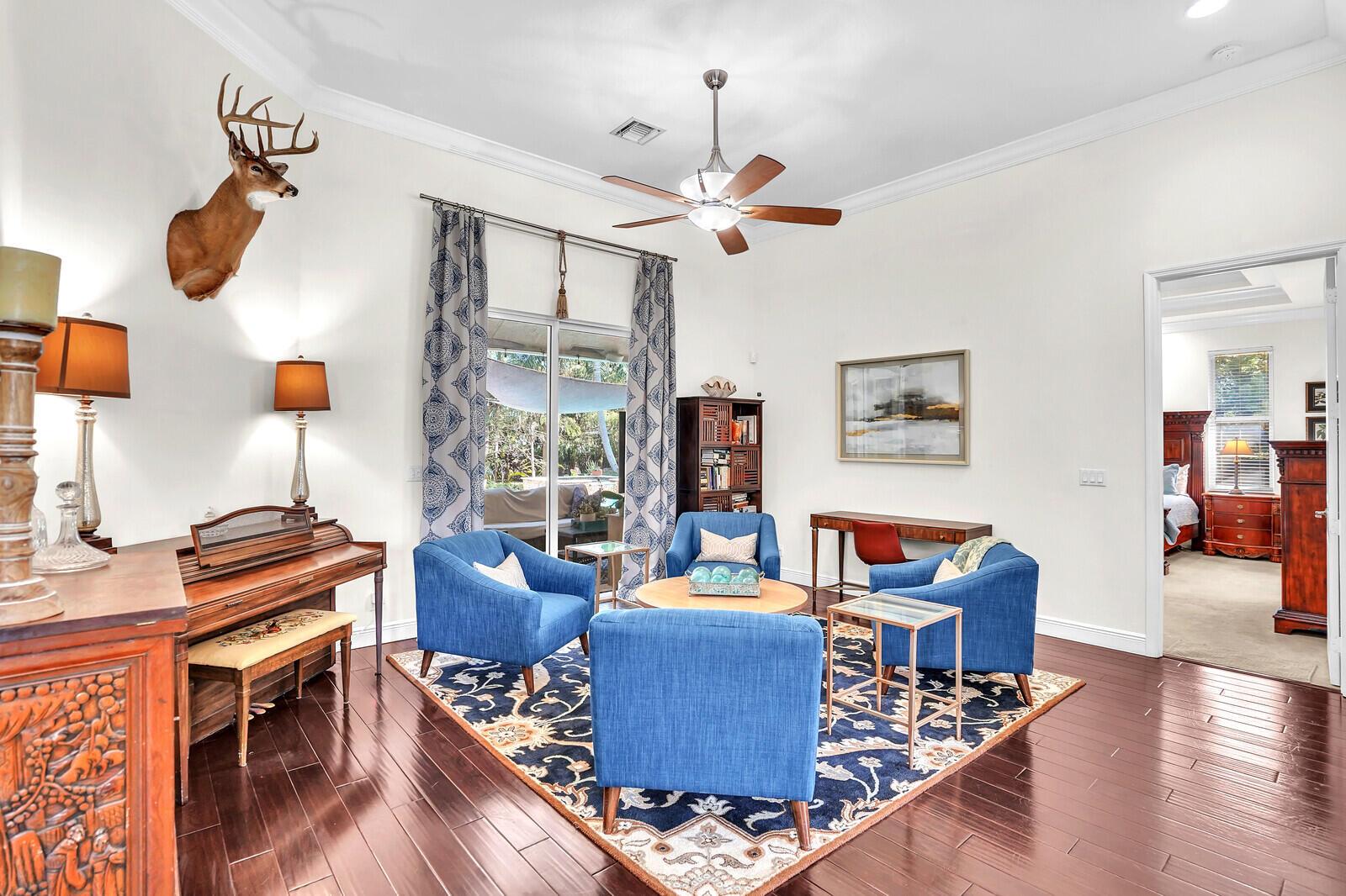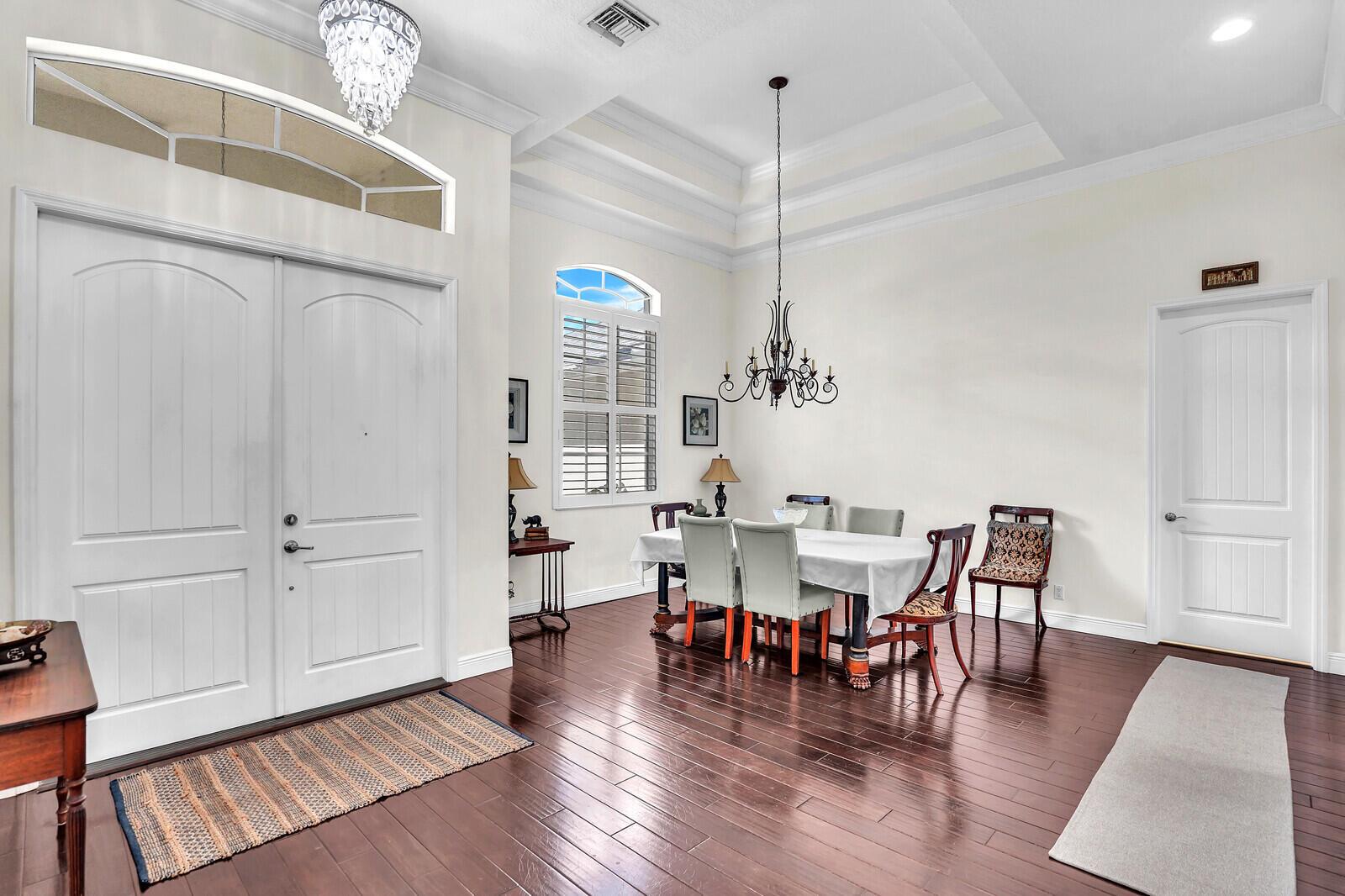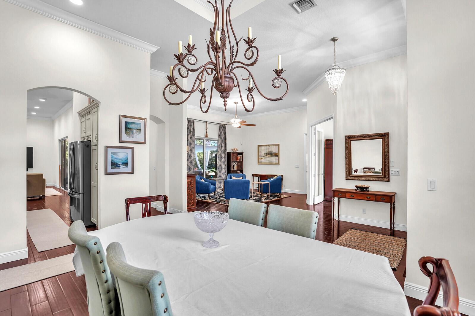 Beautiful family home in Palm Beach Country Estates with 3,132 square feet under air. 4 bedroom, 3 bath plus den. Impact glass throughout except primary bathroom. Main AC 2024. Gorgeous park like backyard with salt water pool, fire pit and plenty of space for a boat, RV or swing set. 3 car garage with parking for 8 extra cars. City water. Enjoy the serene life just minutes away from 95. All room sizes are approximate.