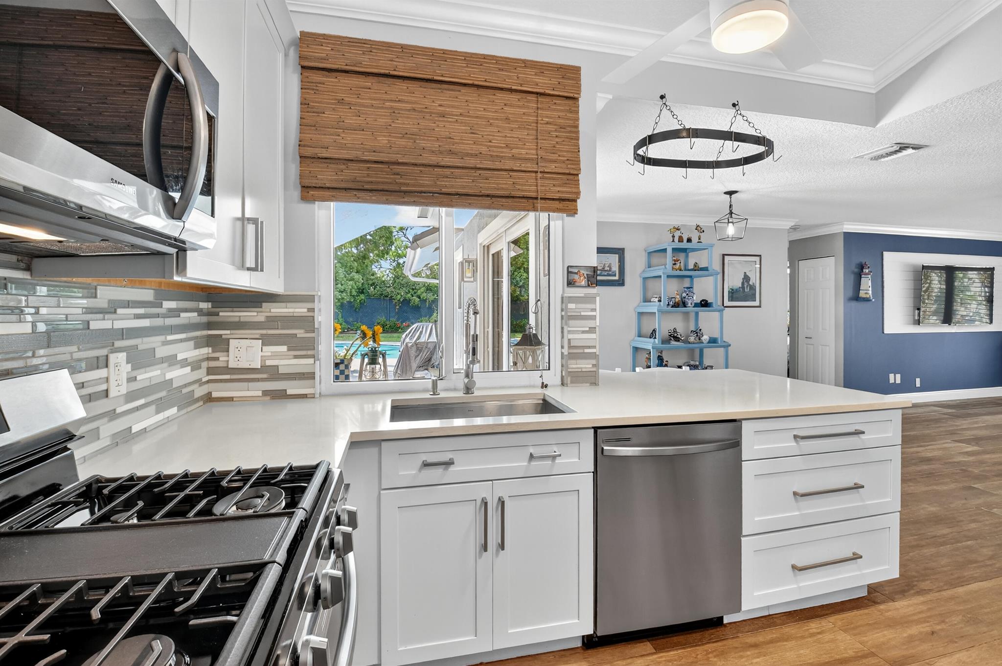 Experience luxury living in this beautifully upgraded Pool Home. Featuring a new 2025 Roof, Chef's Kitchen with KraftMaid cabinets, New Gas Stove, and New Appliances. Enjoy a 2023 Lennox Smart AC system with all-new ducts, Impact Windows, and Spa inspired Bathrooms with modern finishes and a Tower Shower in the primary suite. Elegant touches include Plantation Shutters, Accent Walls, Tankless Water Heater, and Epoxy Garage floor. The palm-lined backyard oasis boasts a freeform pool, Travertine decking, covered patio with bar seating, and a kitchen passthrough--perfect for entertaining in style. Luxury detailing throughout this home speaks to timeless sophistication. This is more than a home -- it's a lifestyle