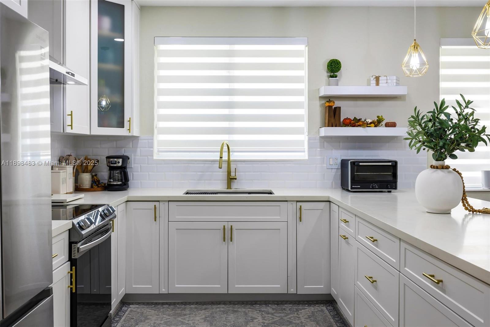Welcome to your next home! This tastefully updated 3bd, 2ba home sits in the desirable gated community of Coconut Cay. The home features modern finishes throughout, including zebra blinds and smart switches. The kitchen was renovated in 2021 with quartz countertops, soft-close cabinets, and Samsung smart stainless-steel appliances. Bedrooms include custom California Closets, and the living area features a custom dry bar for entertaining. Additional highlights include a new Samsung washer and dryer (2025), A/C (2025) and floors (2025). Each room has ethernet, and the backyard offers space for a pool. Low HOA includes landscaping & alarm. Windows have storm shutters.100% Move-in ready!
